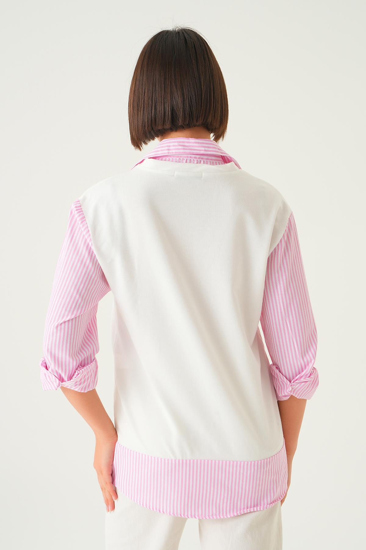 Pembe Gömlek Detay Bluz 21521