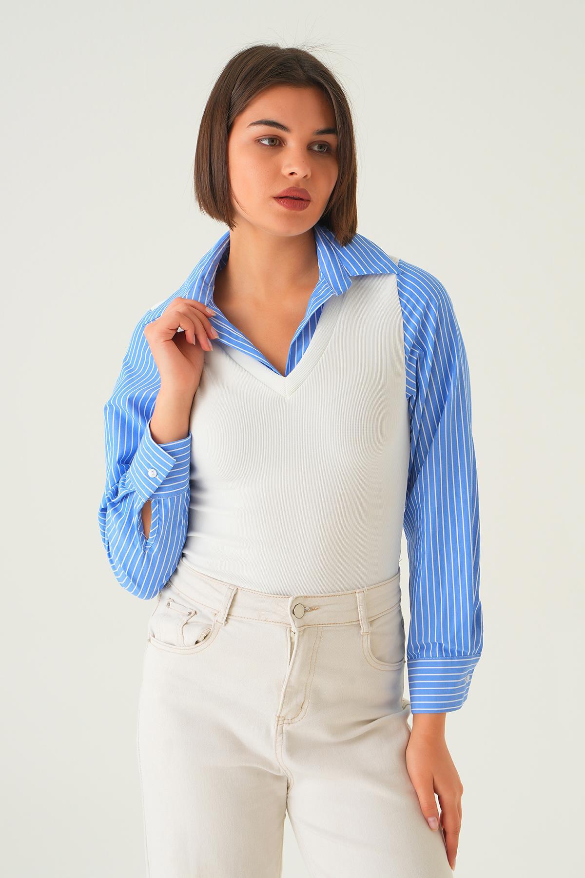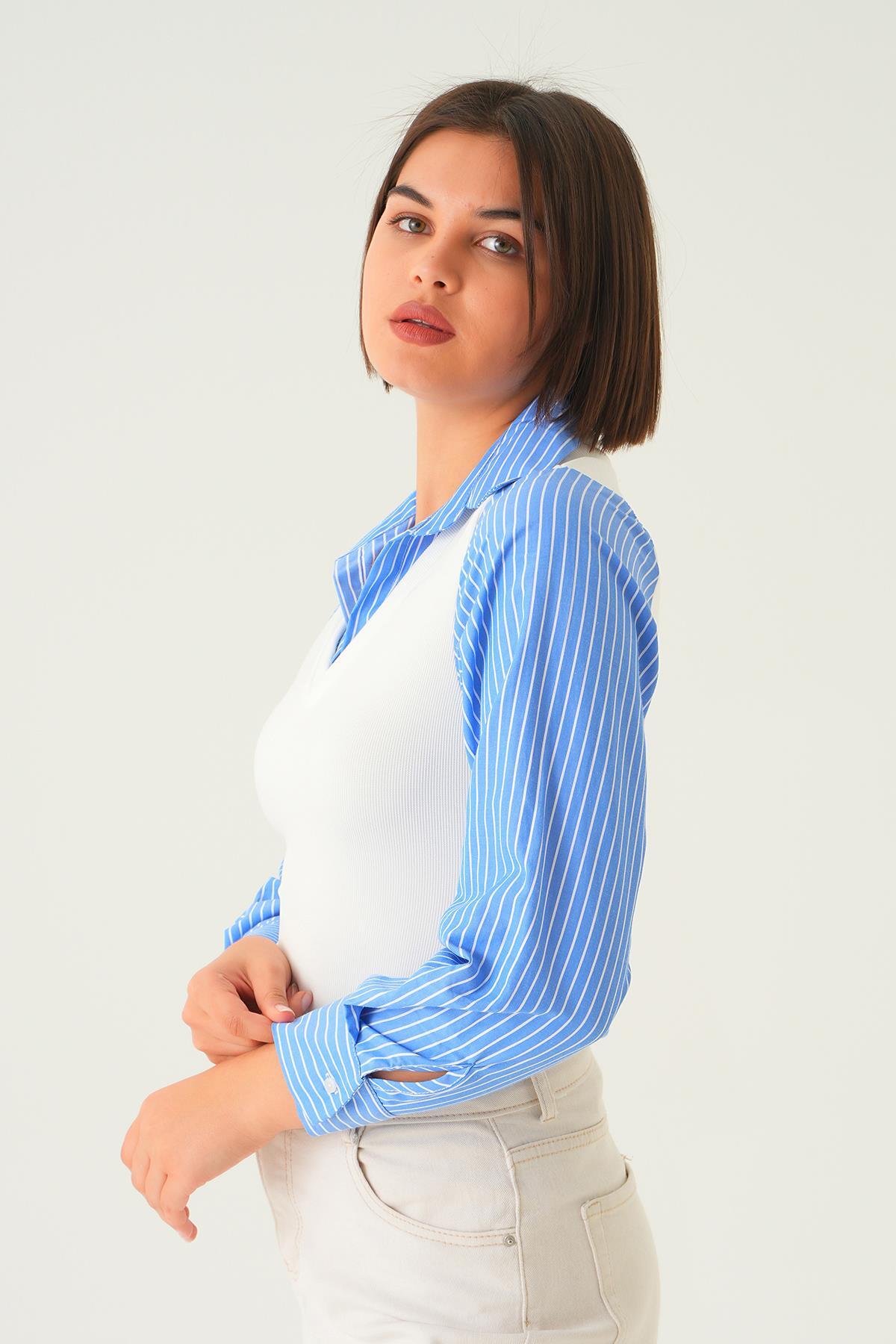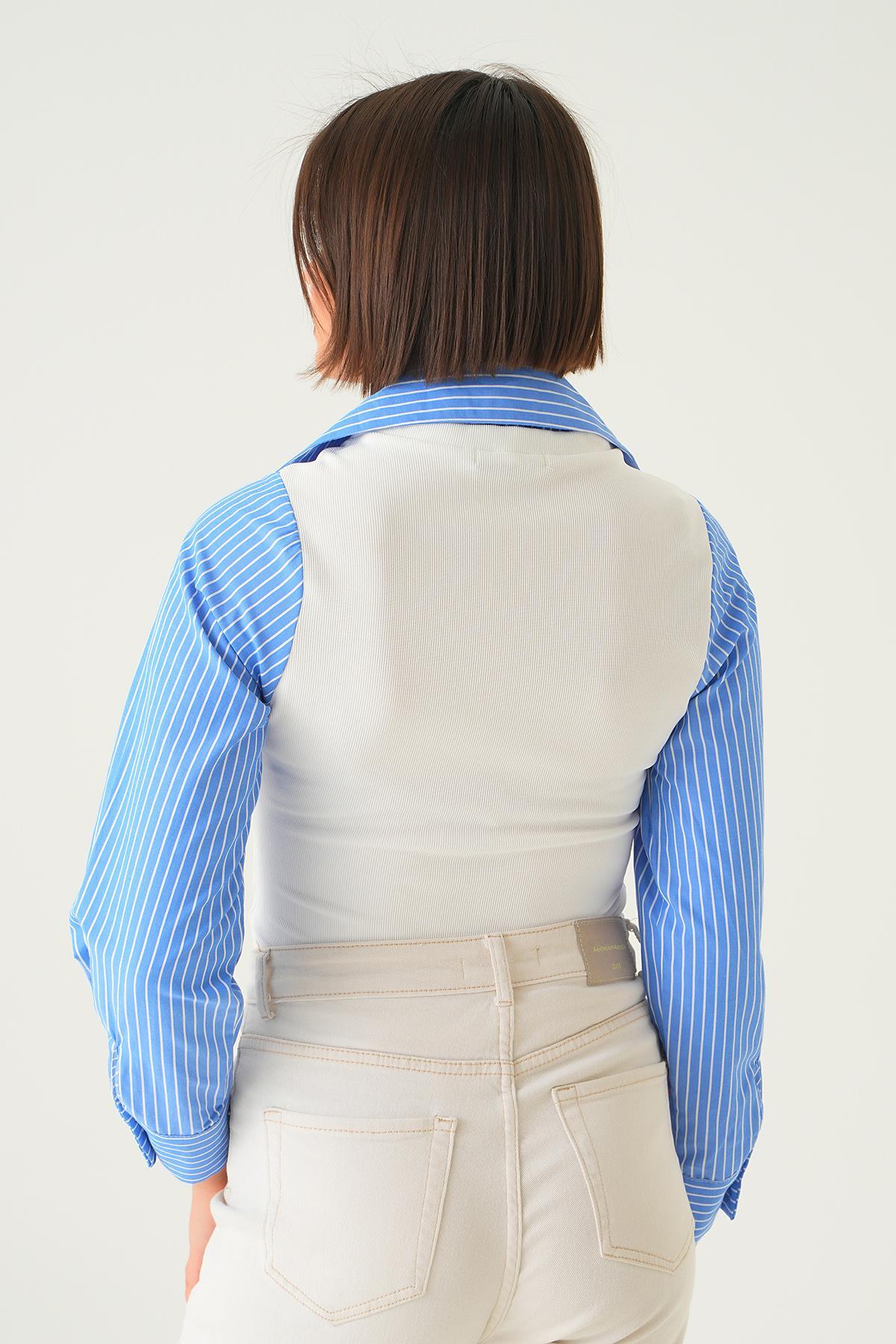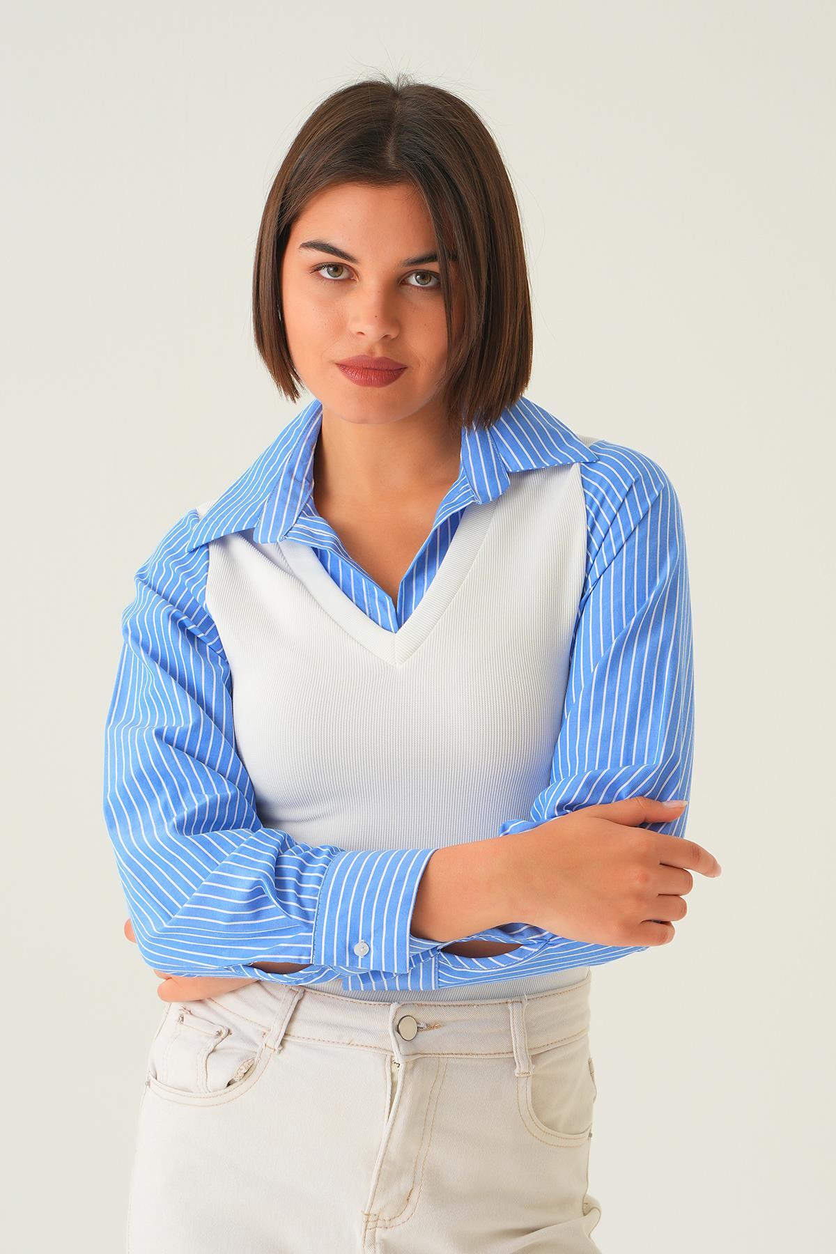 Mavi Çizgili Gömlek Detay Bluz 21522
