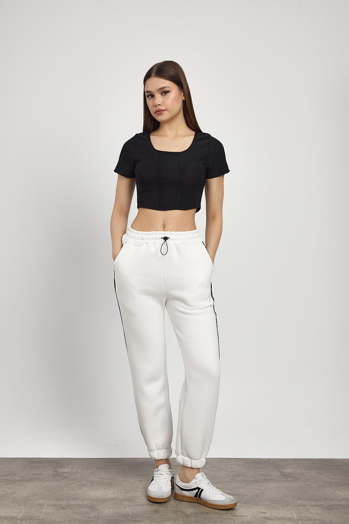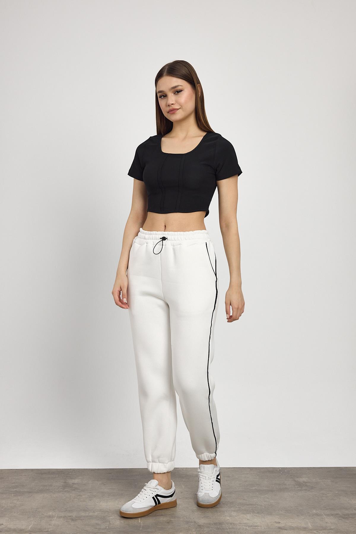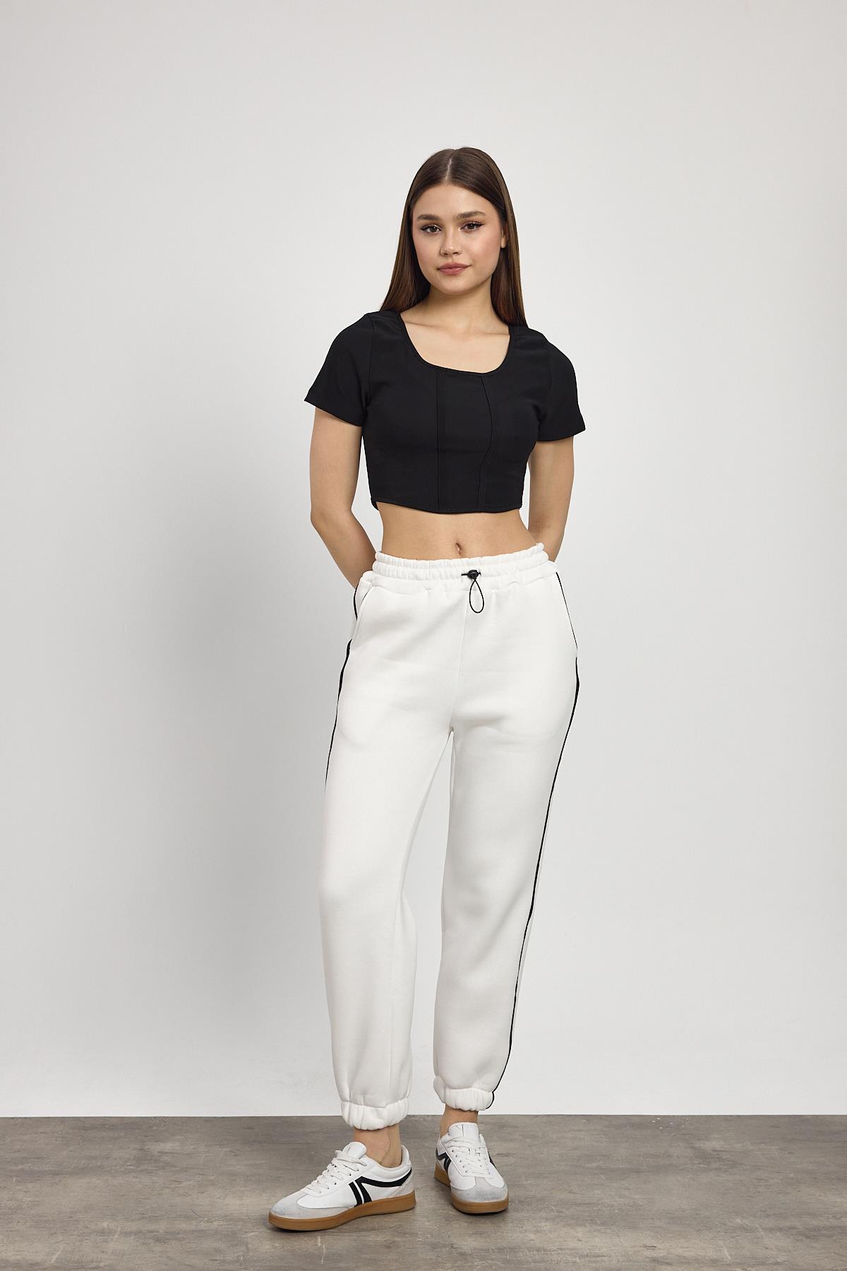 Ekru Yanları Biye Detay Eşofman 2170