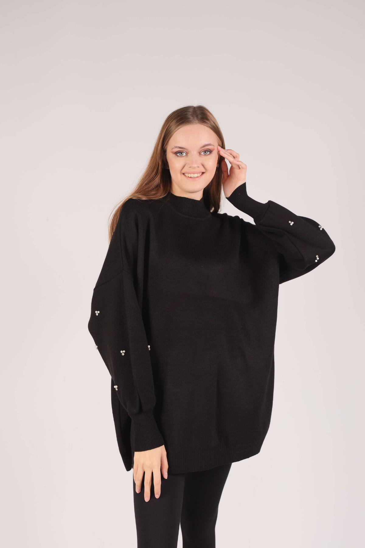 Siyah-Kırmızı Yıldız Baskılı Oversize Kazak 2474 - RAYS Siyah-Kırmızı Yıldız Baskılı Oversize Kazak 2474 - RAYS (1)