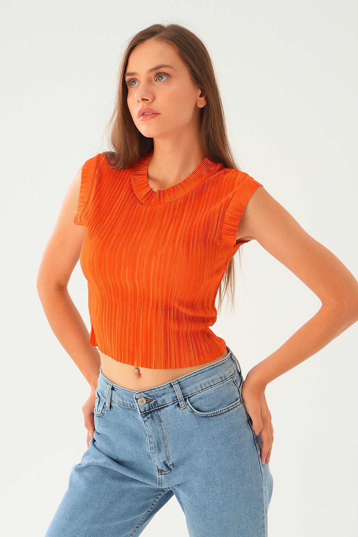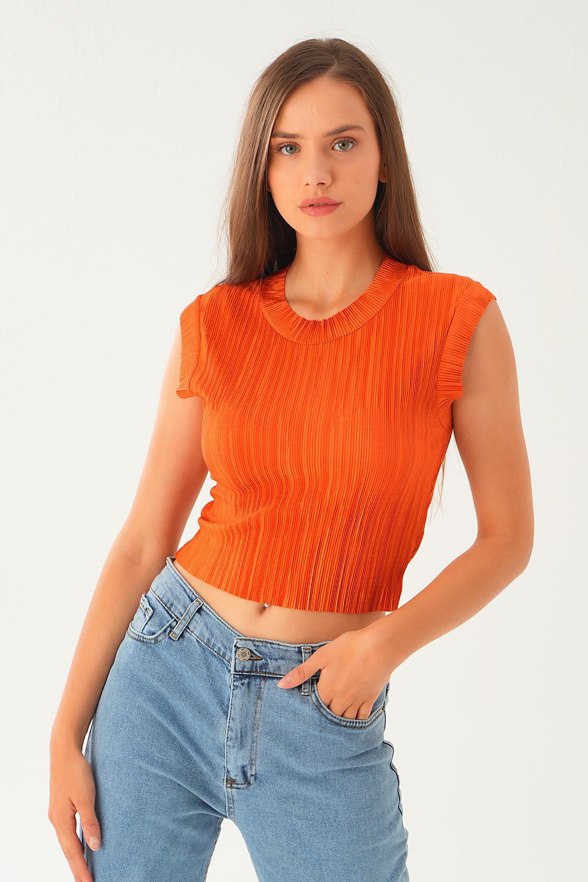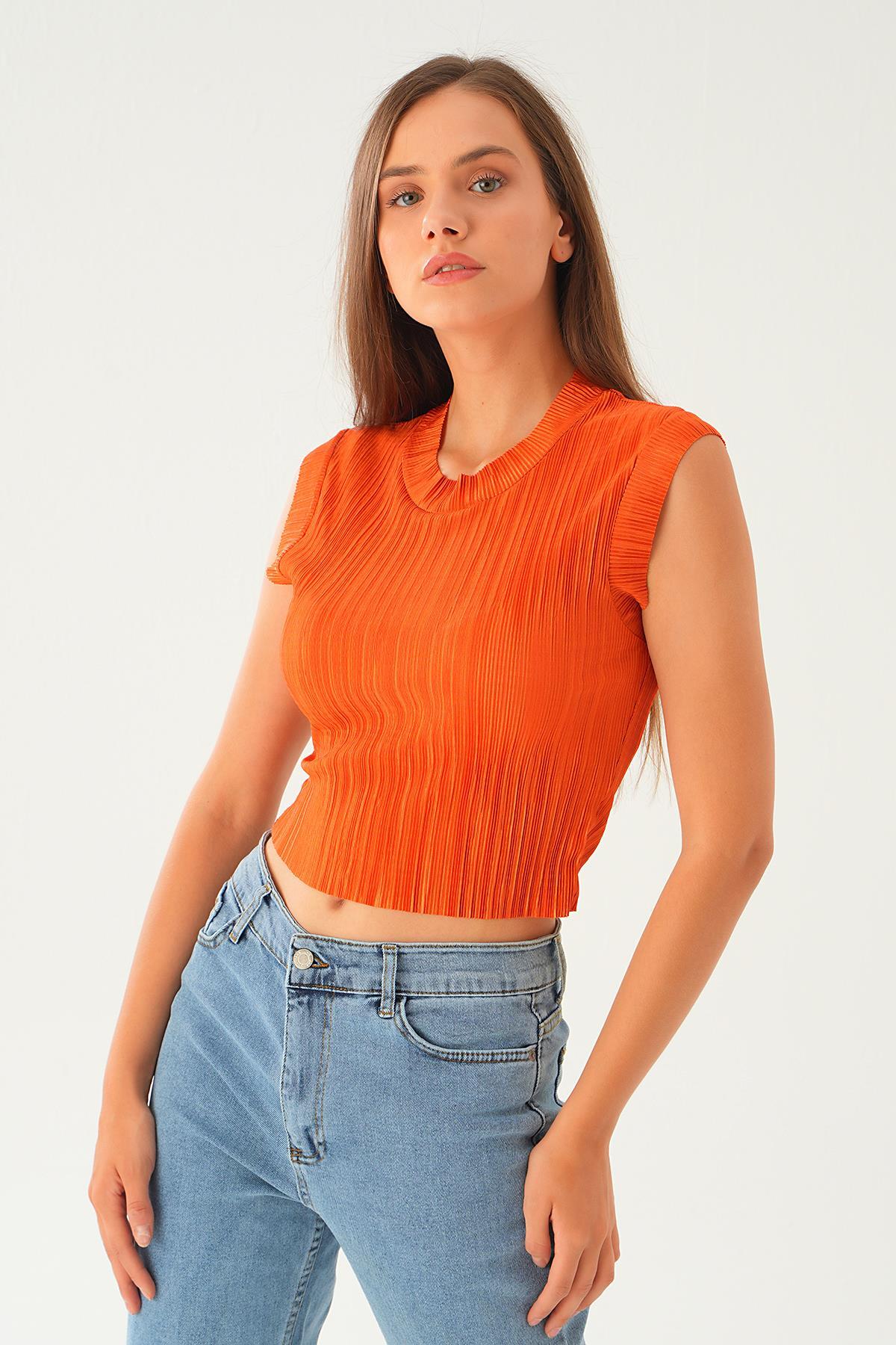Kiremit Sıfır Kol Pliseli Tişört 221