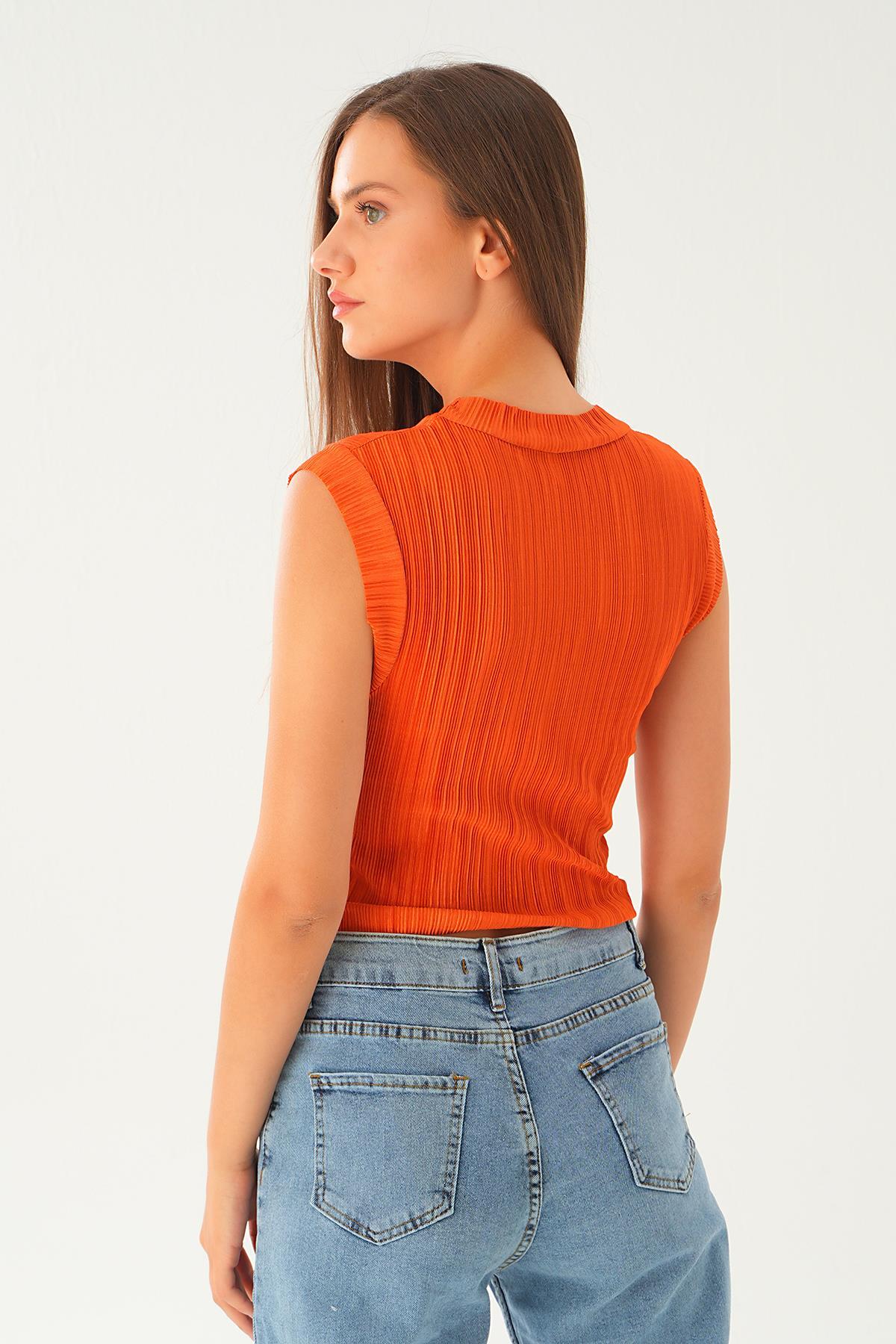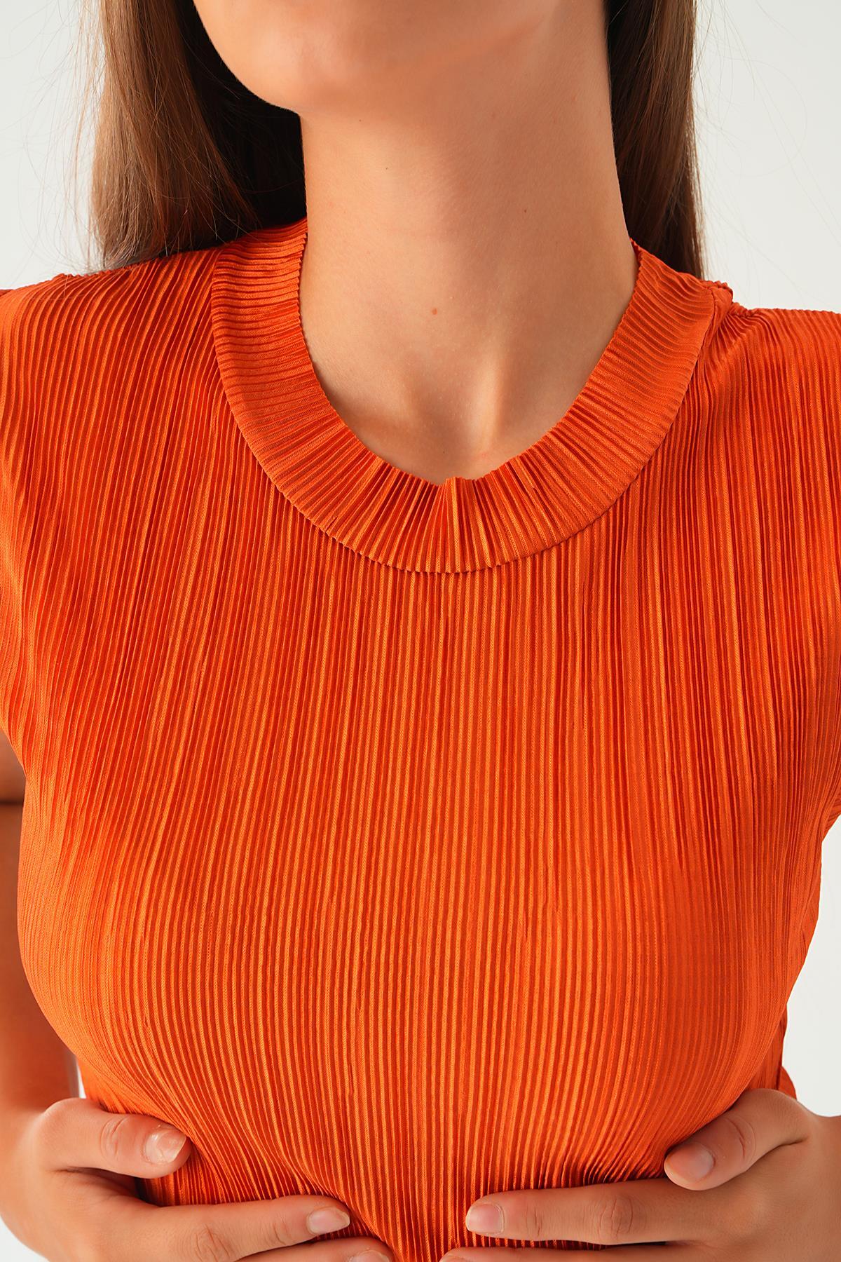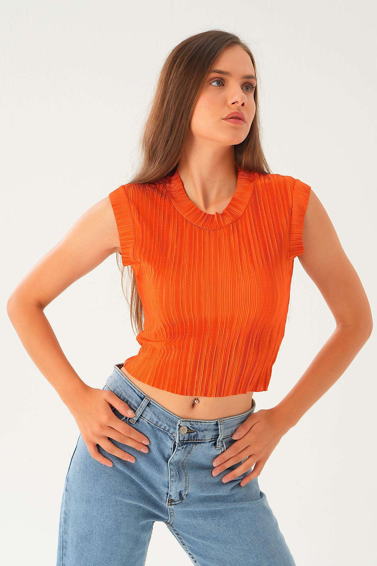 Kiremit Sıfır Kol Pliseli Tişört 221