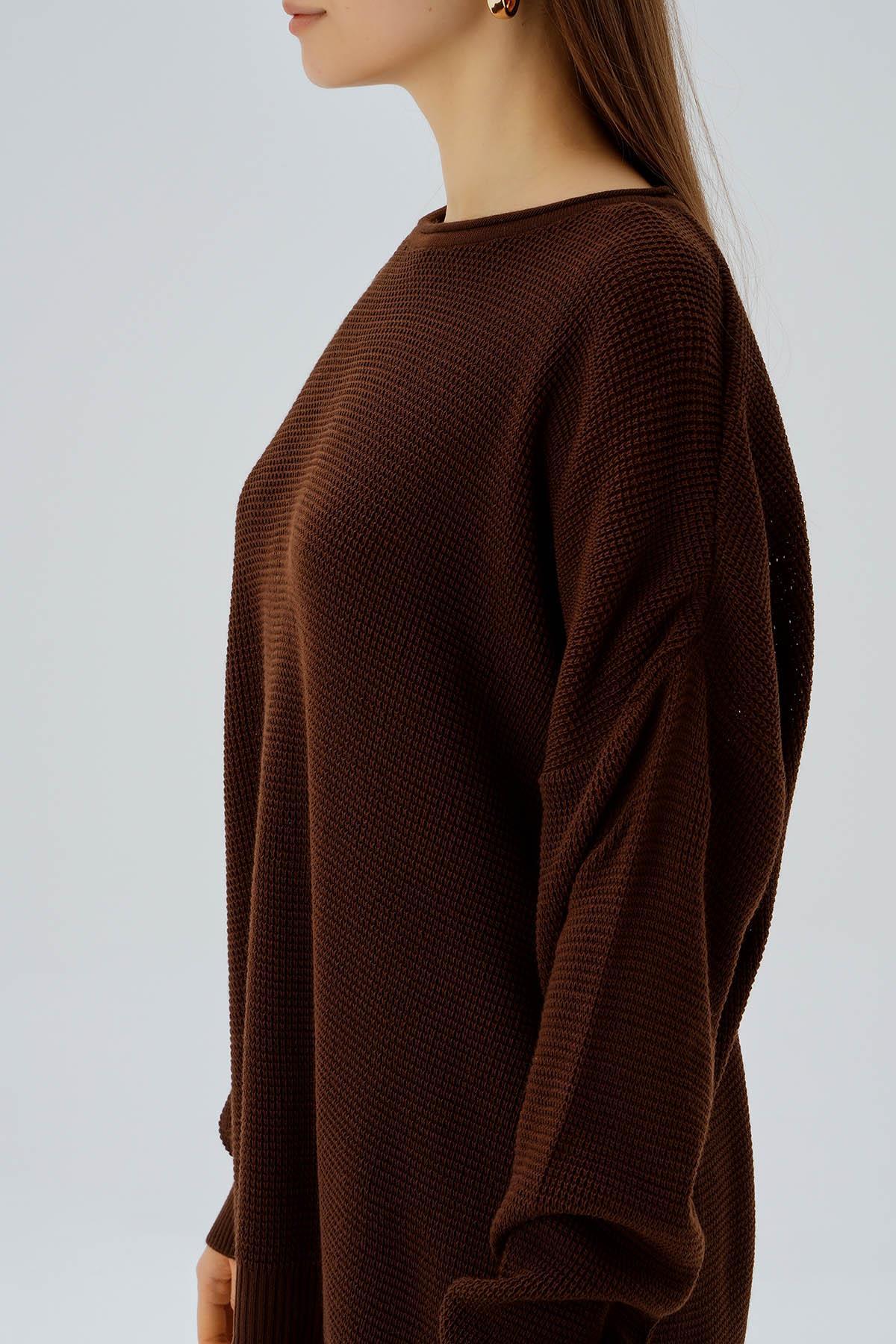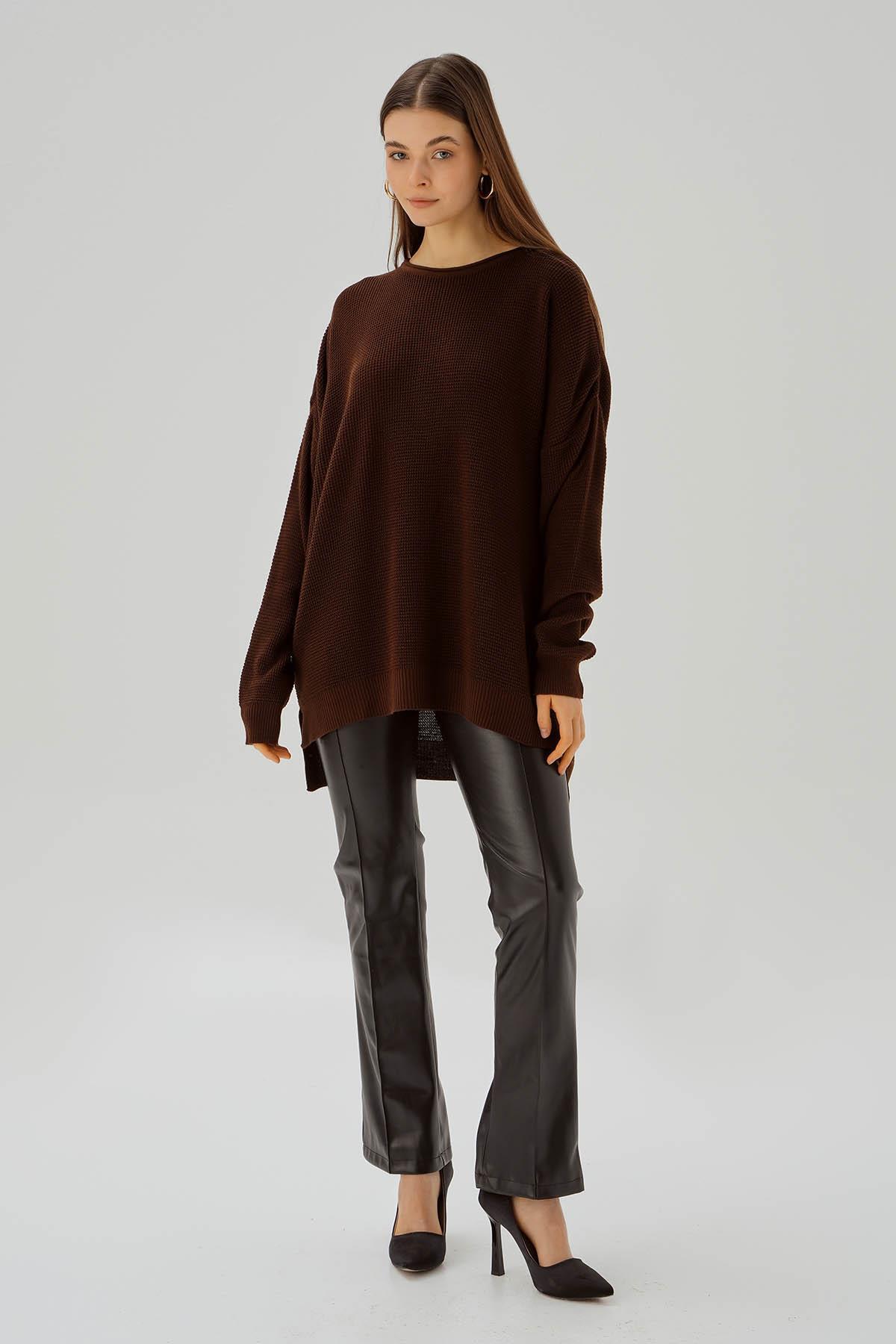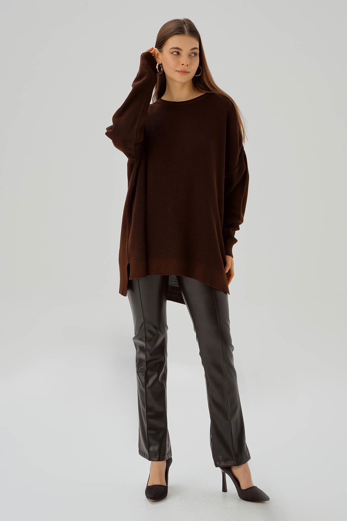 Kahve Bisiklet Yaka Yırtmaçlı Kazak 2210