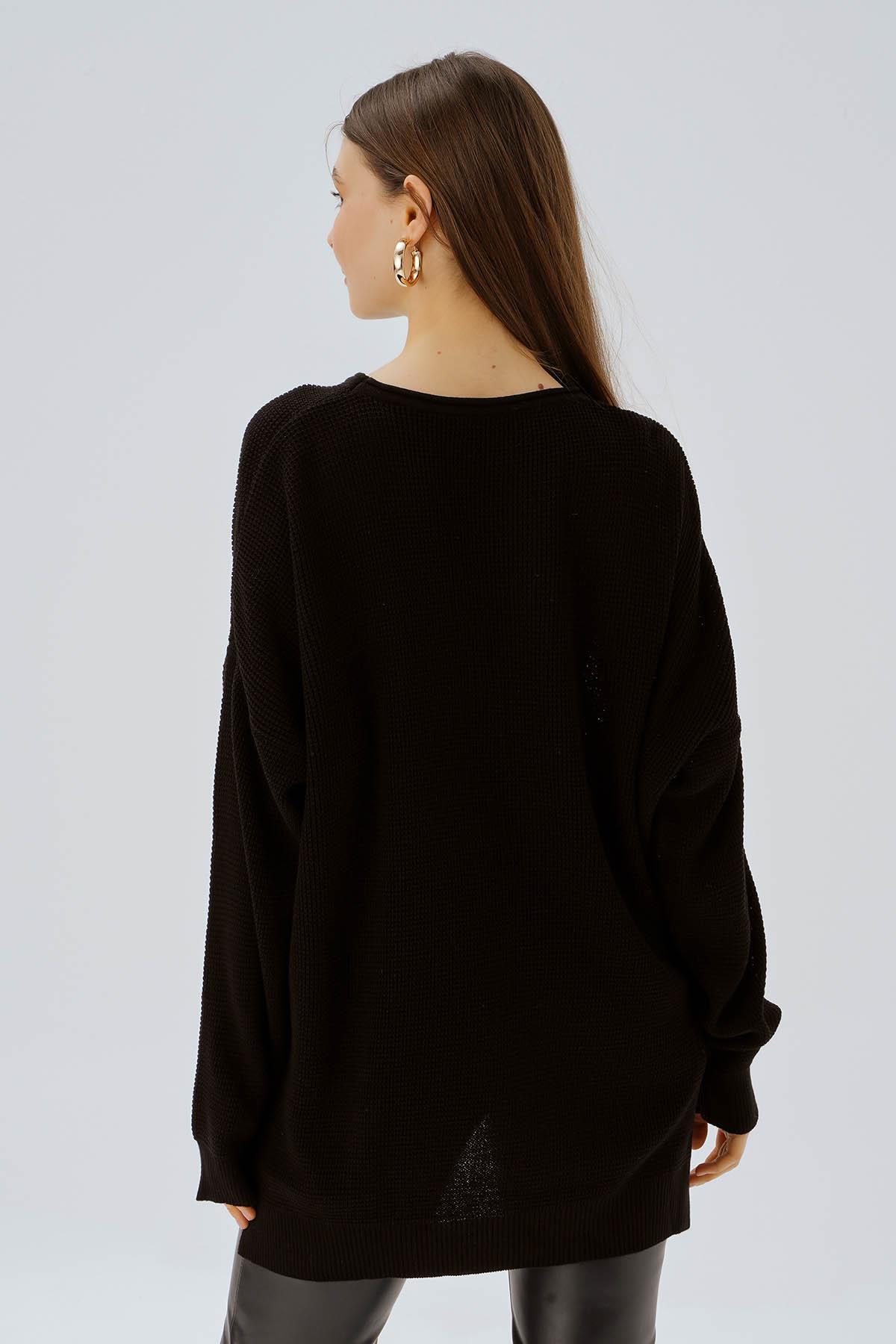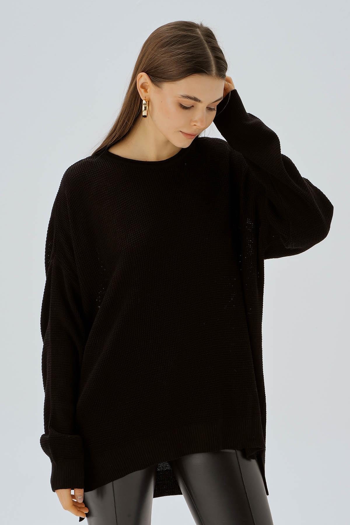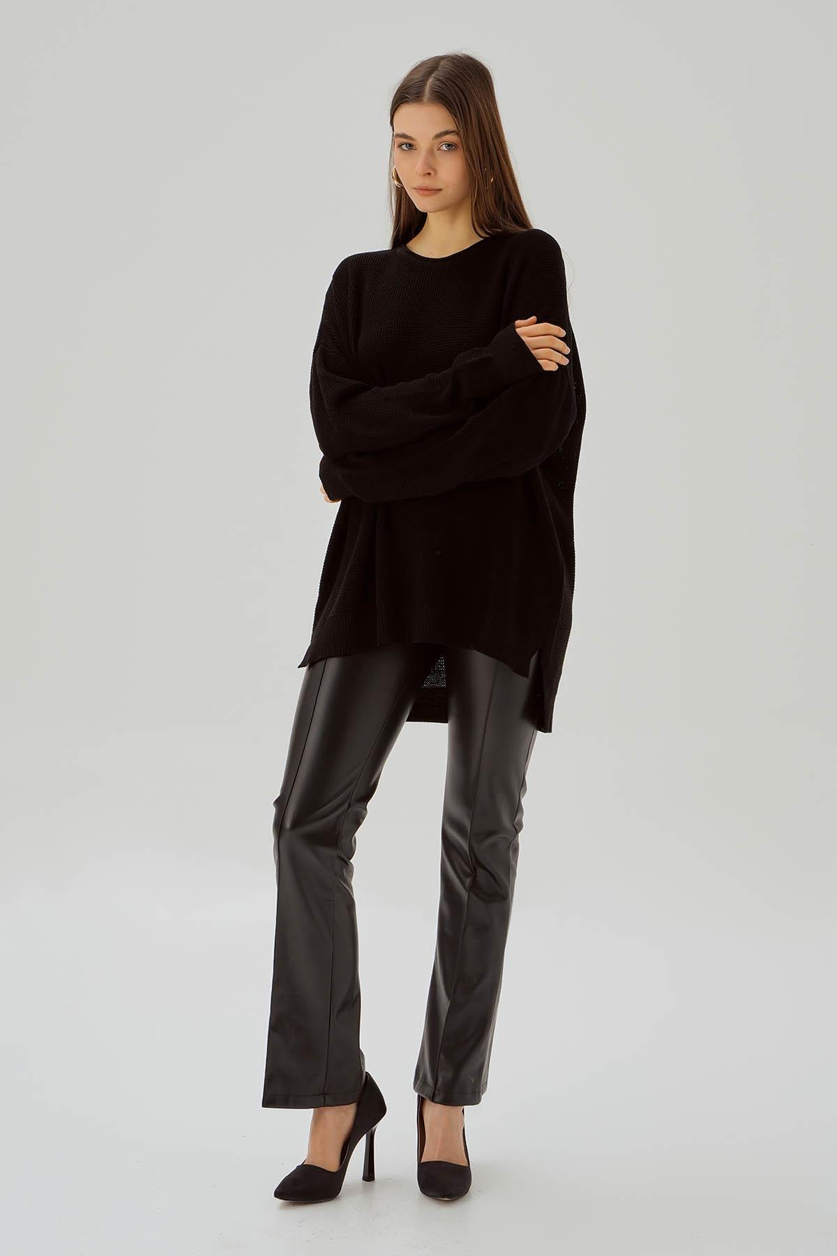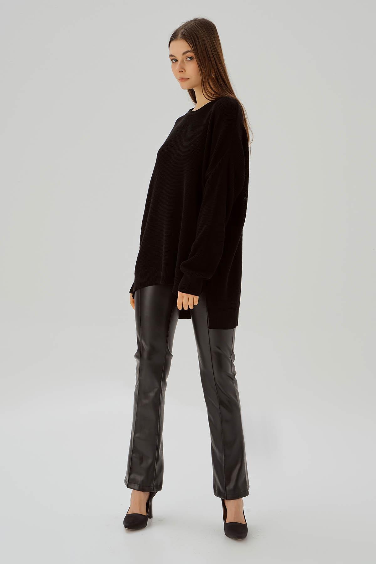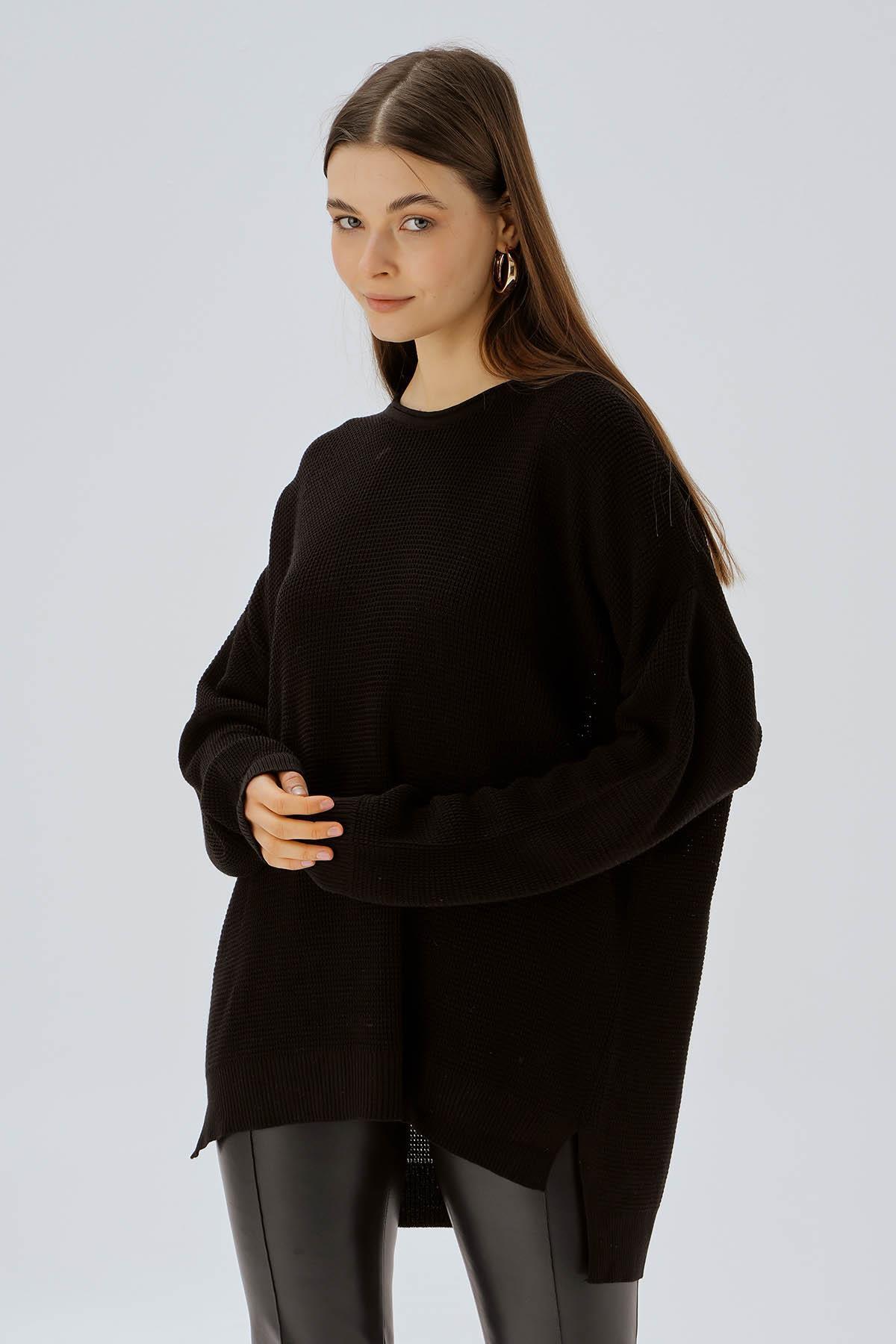 Siyah Bisiklet Yaka Yırtmaçlı Kazak 2210