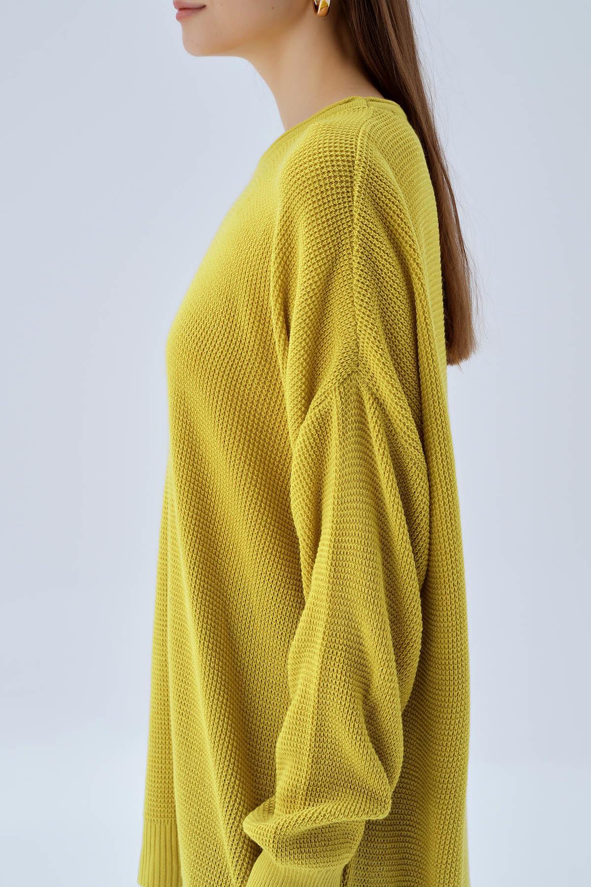 Yağ Yeşili Bisiklet Yaka Oversize Kazak 2450
