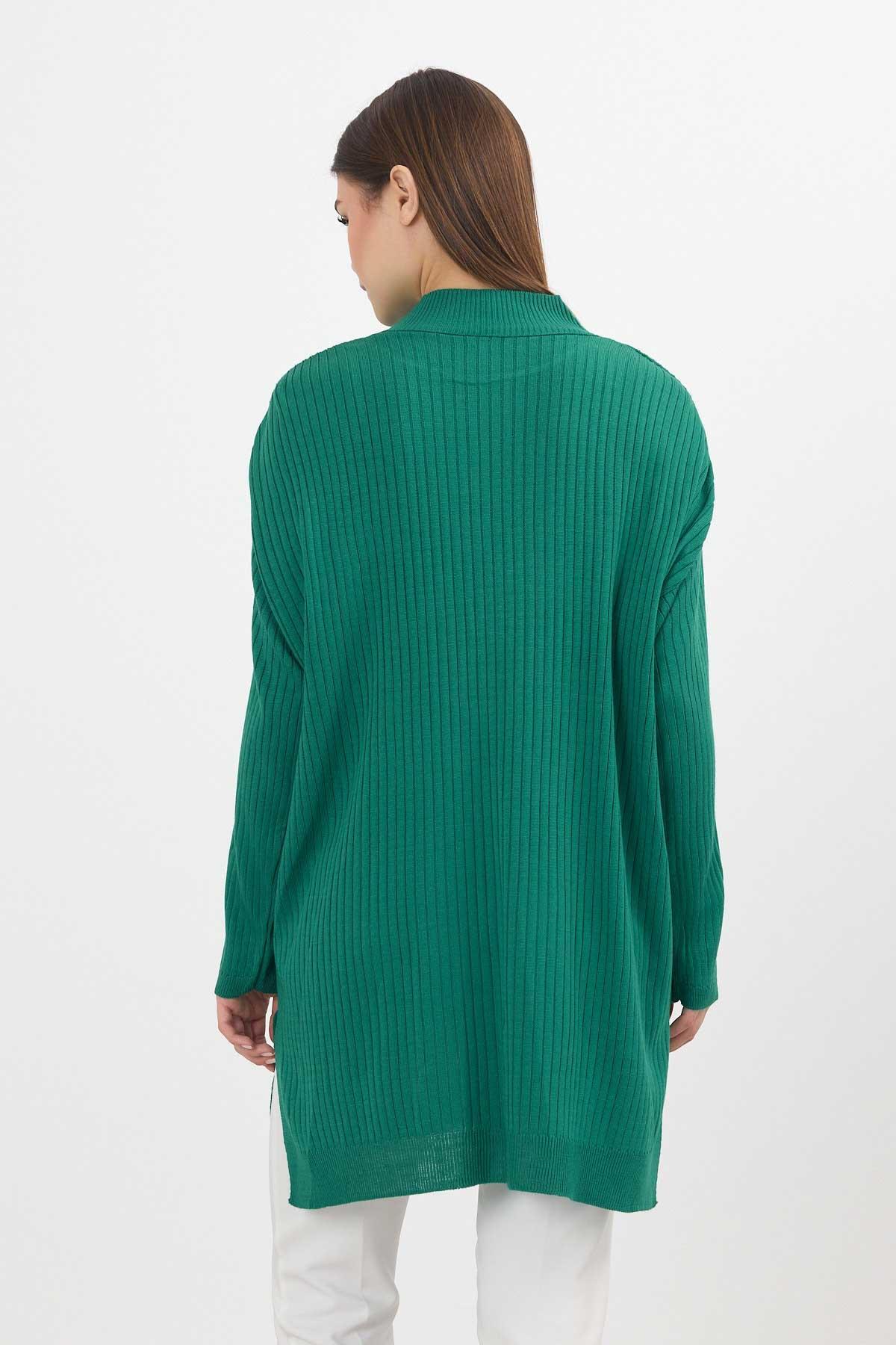 Benetton Yeşili Yırtmaç Detay Fitilli Kazak 22131