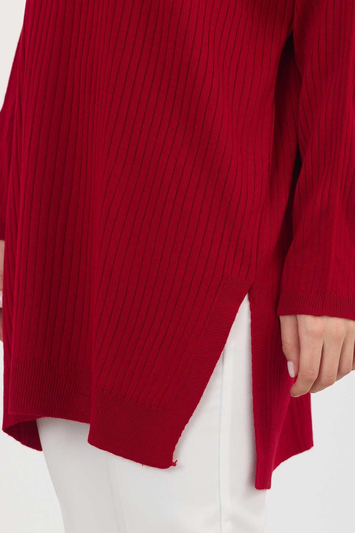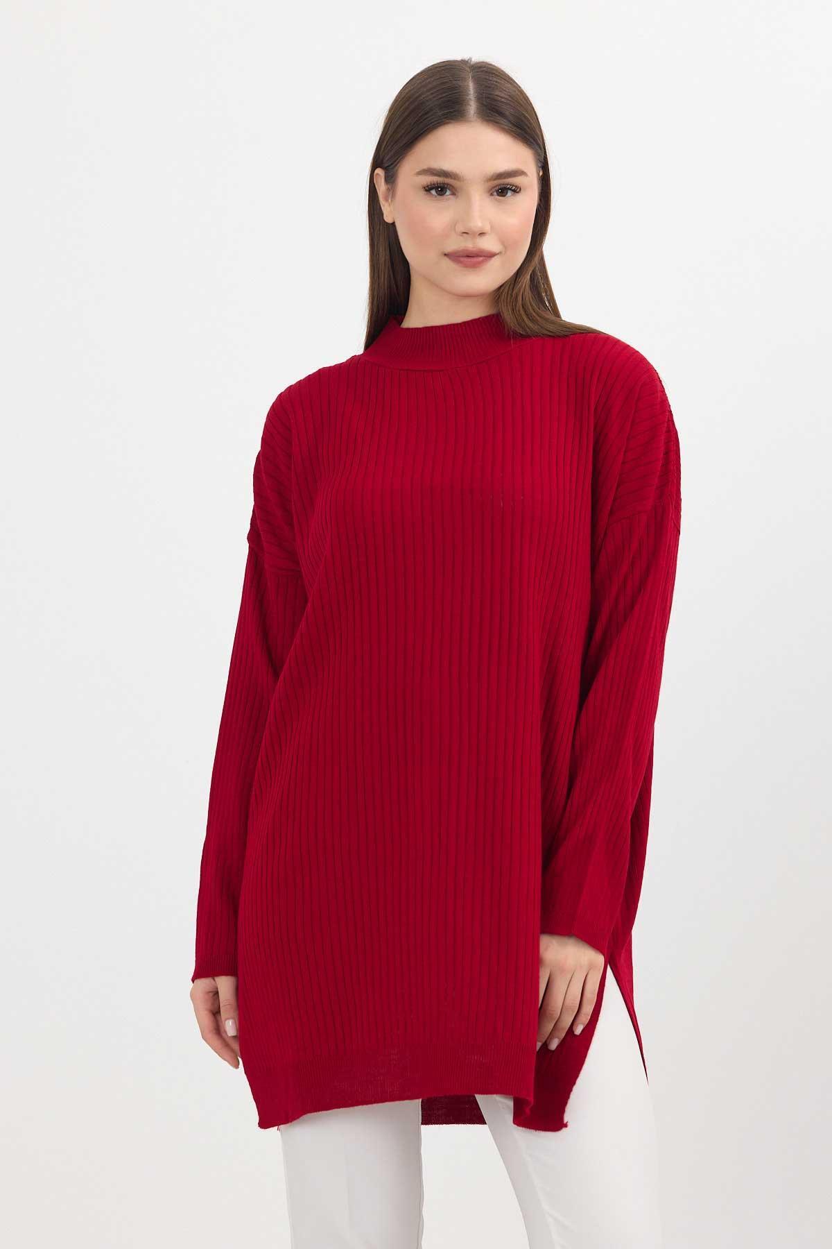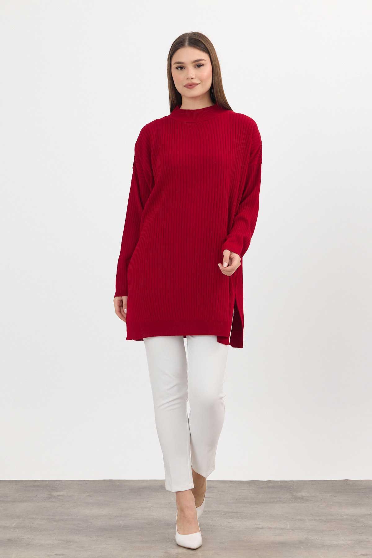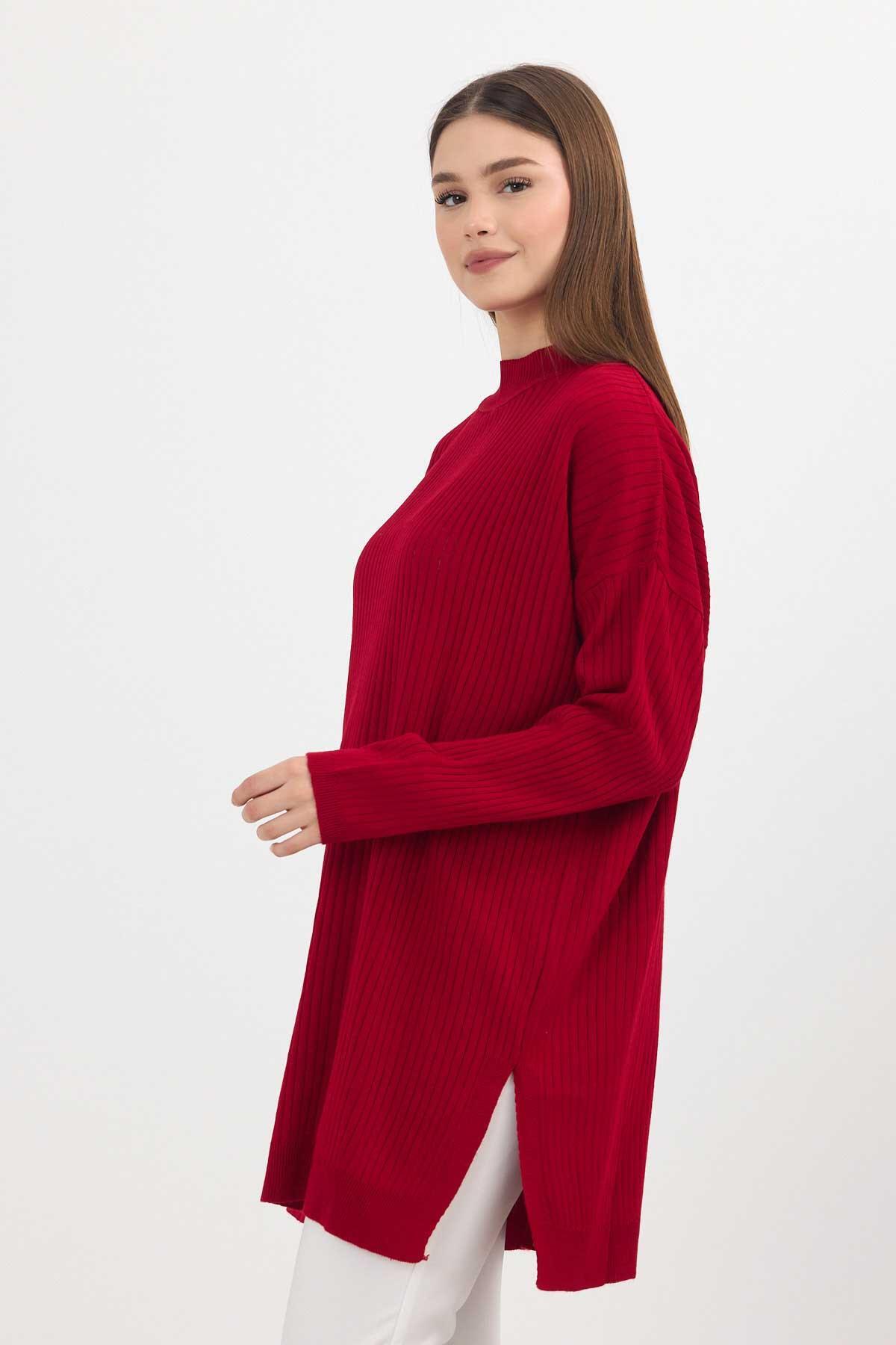 Kırmızı Yırtmaç Detay Fitilli Kazak 22131