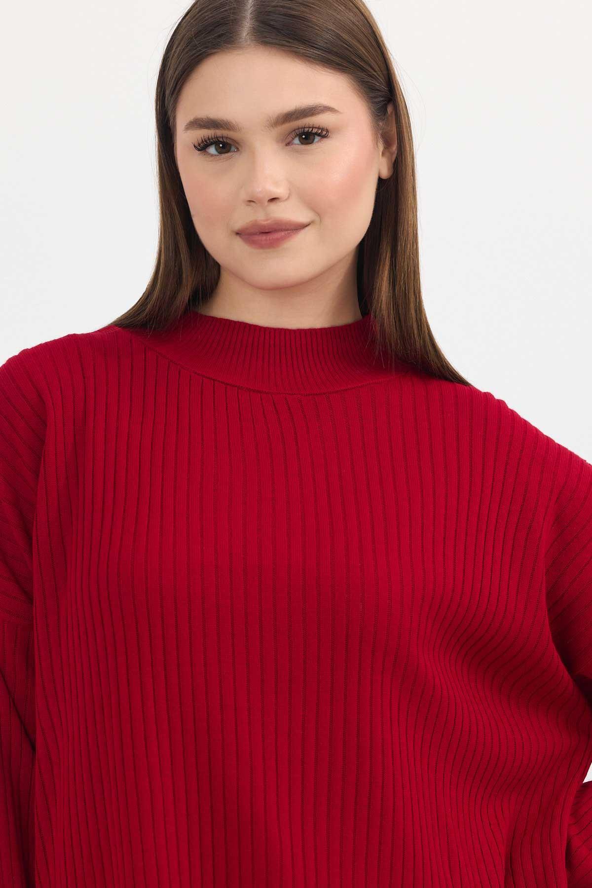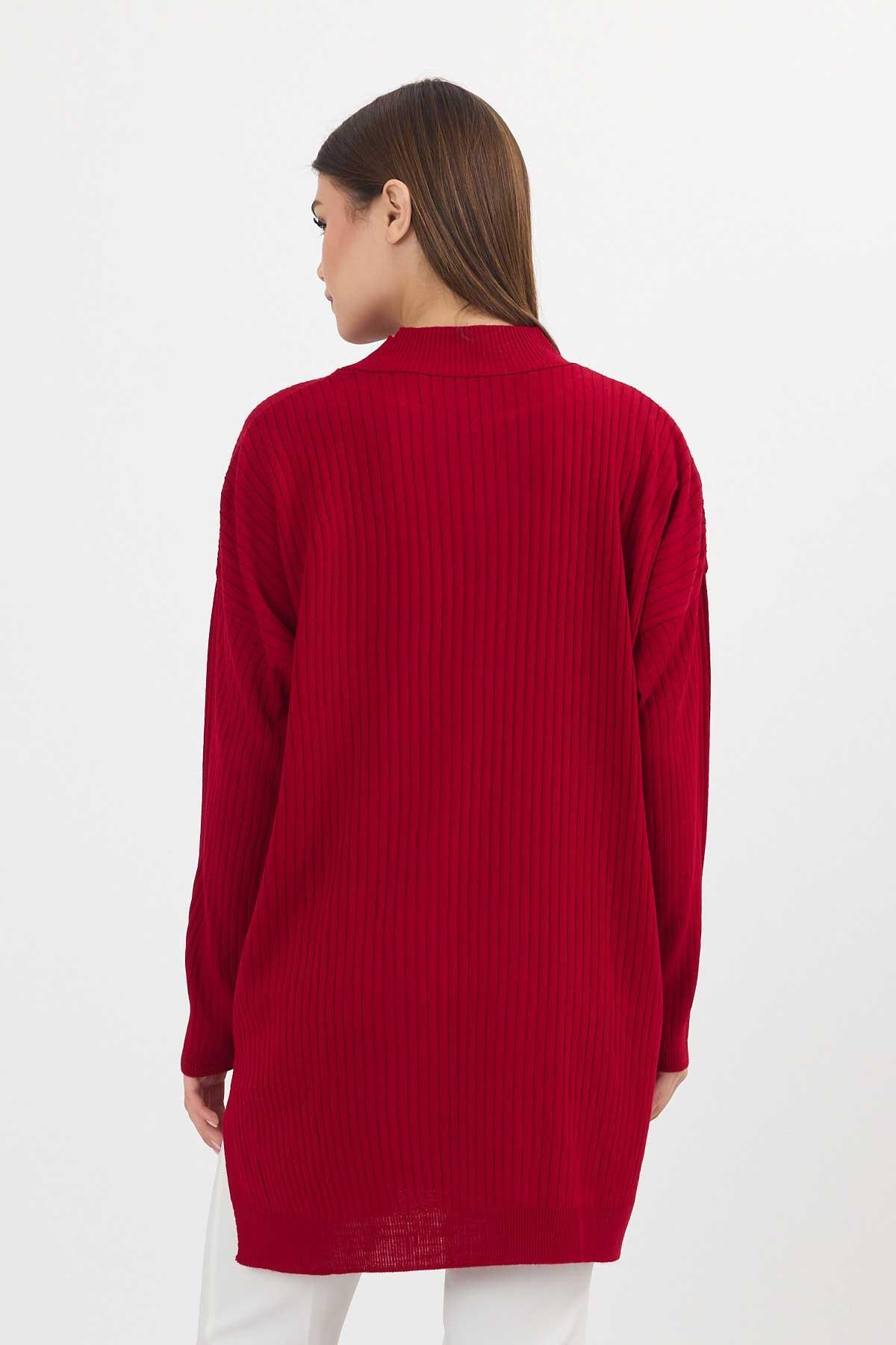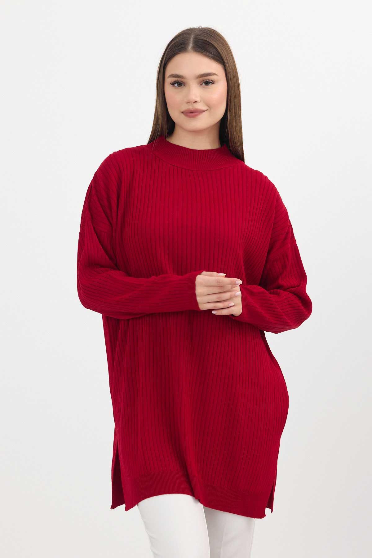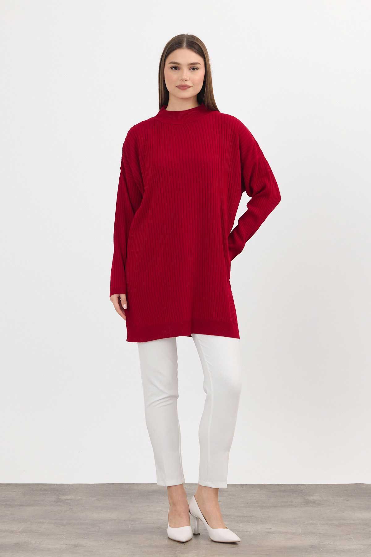 Kırmızı Yırtmaç Detay Fitilli Kazak 22131