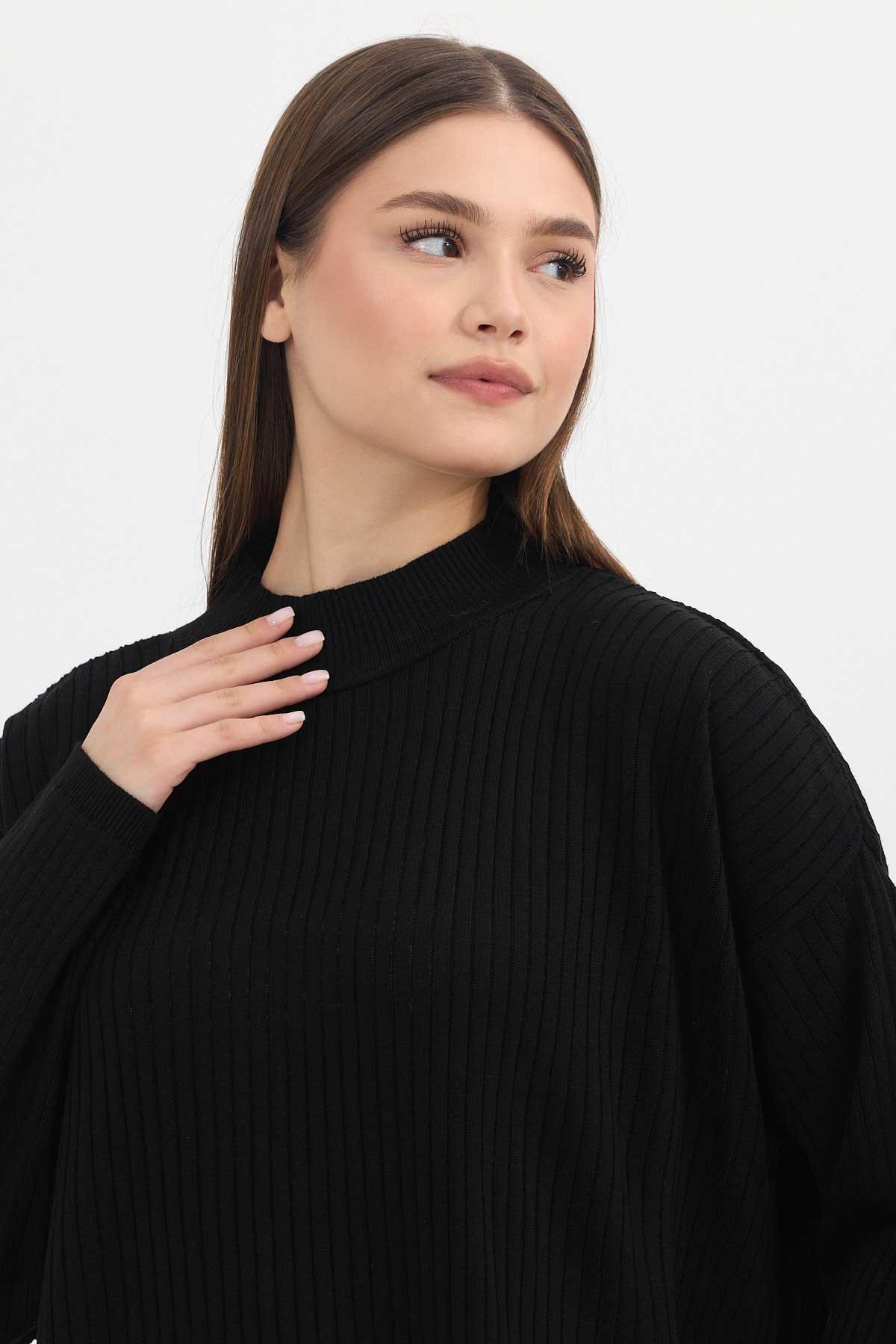 22131 Yırtmaç Detay Fitilli Tunik Siyah