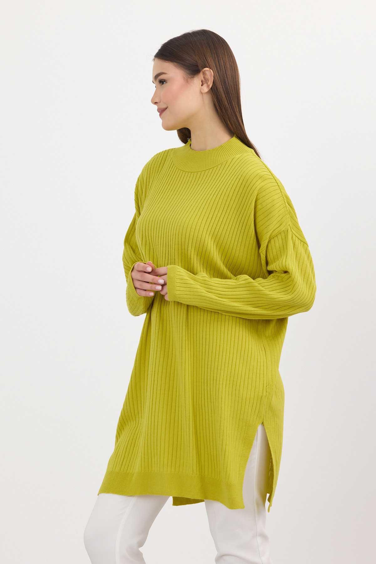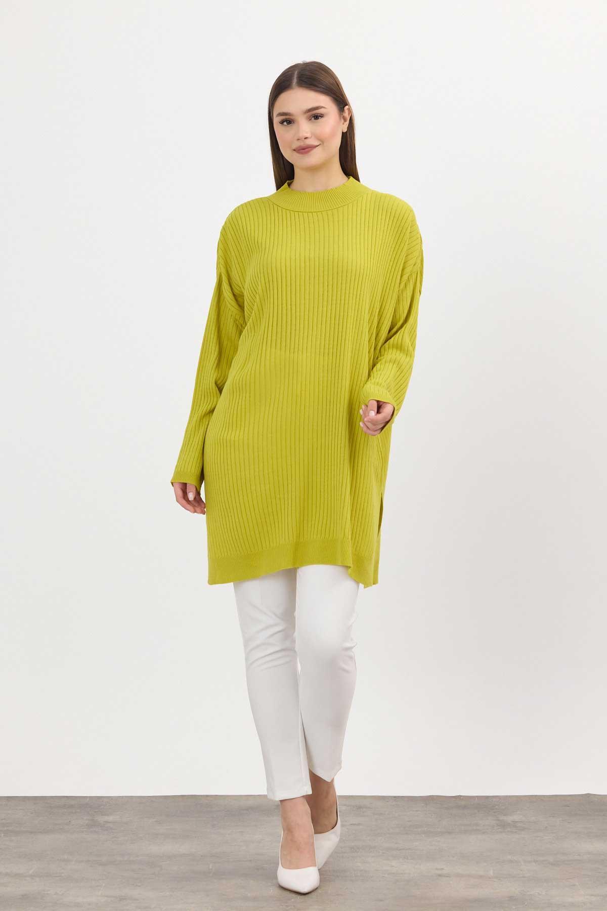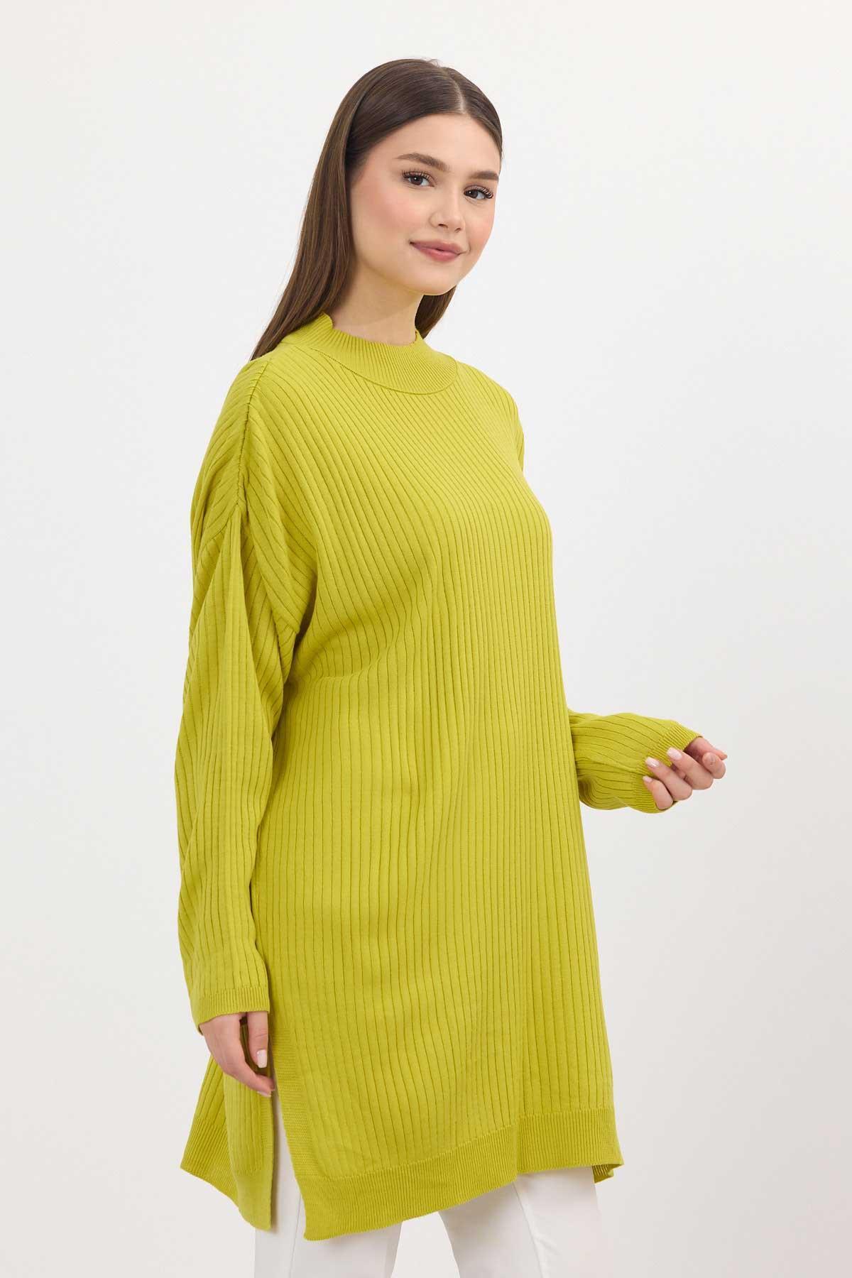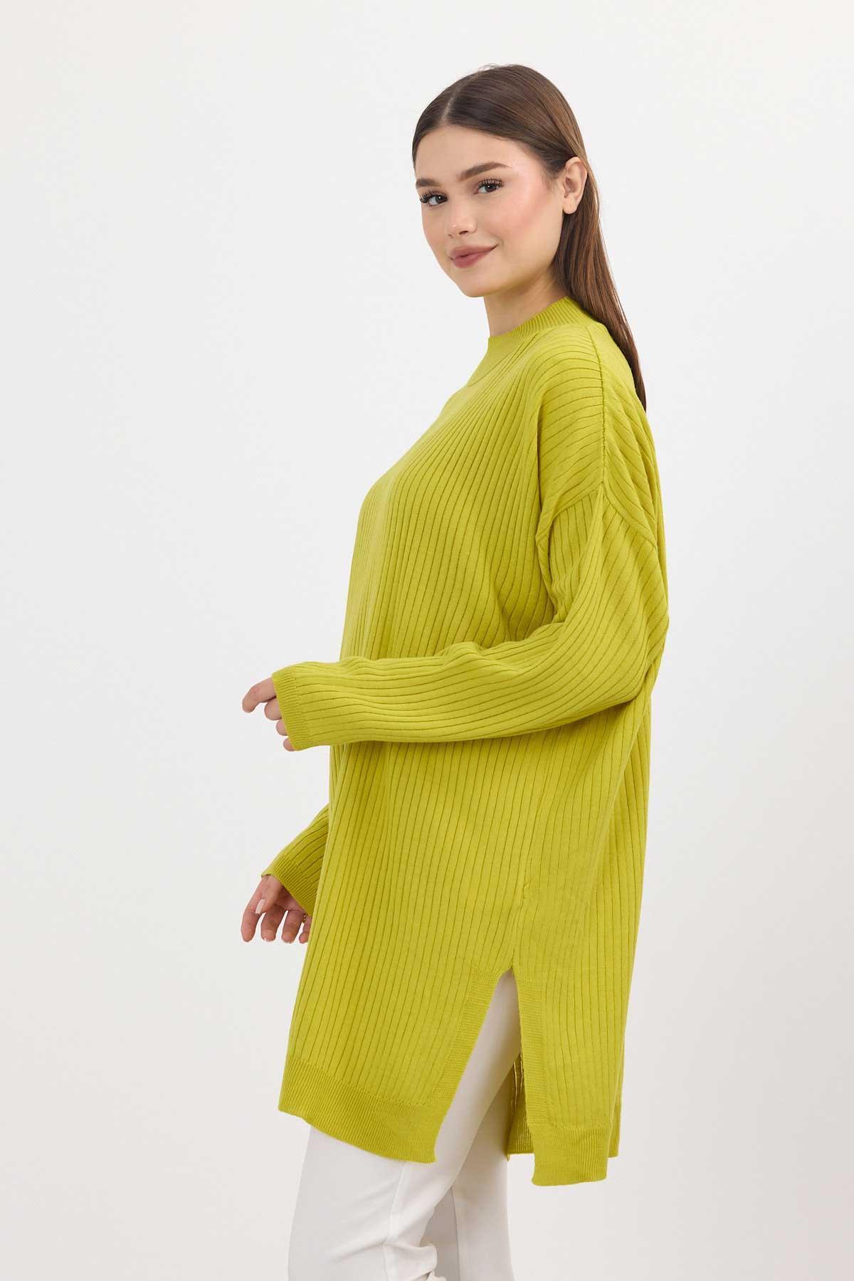 Yağ Yeşili Yırtmaç Detay Fitilli Kazak 22131