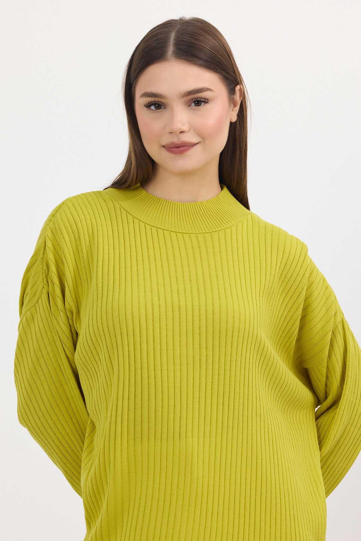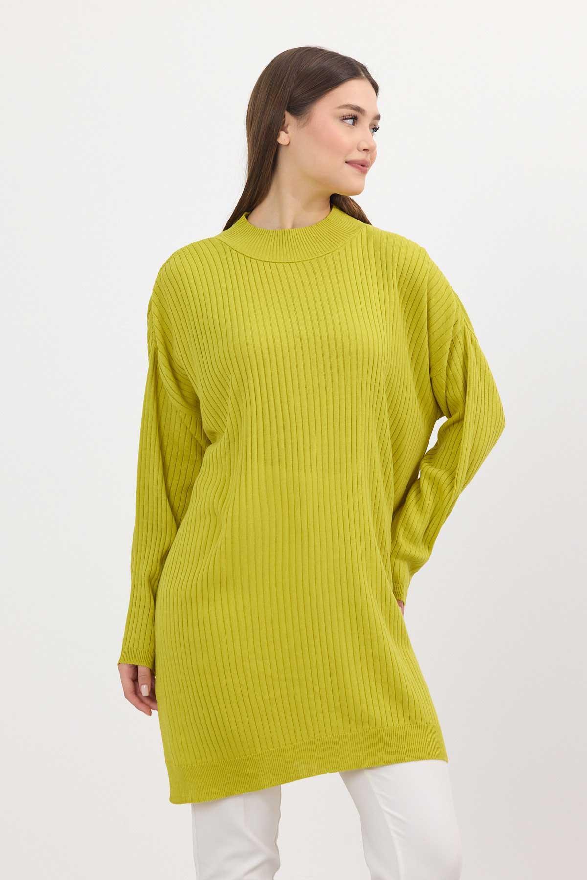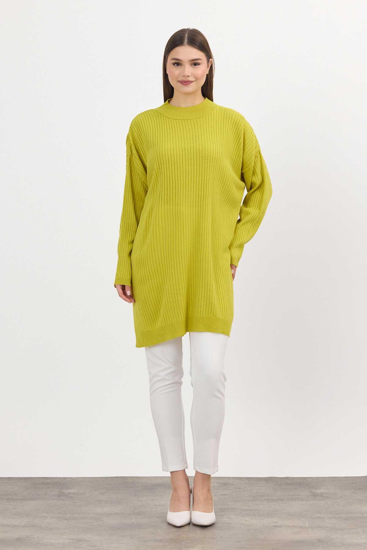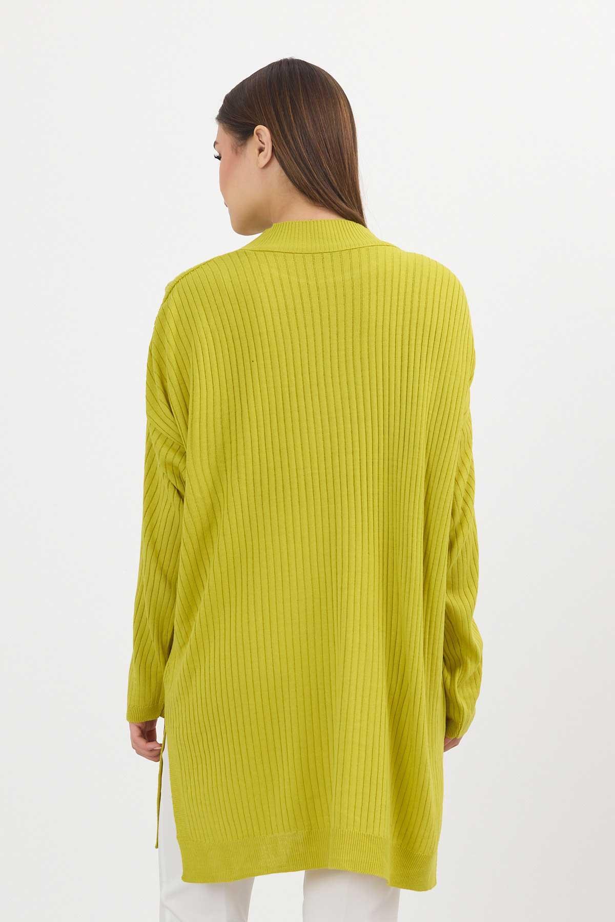 Yağ Yeşili Yırtmaç Detay Fitilli Kazak 22131