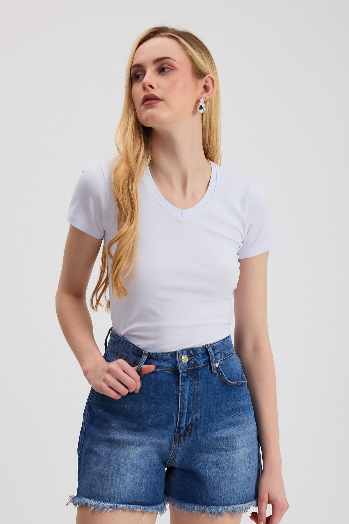 2215 V Yaka Bady Beyaz