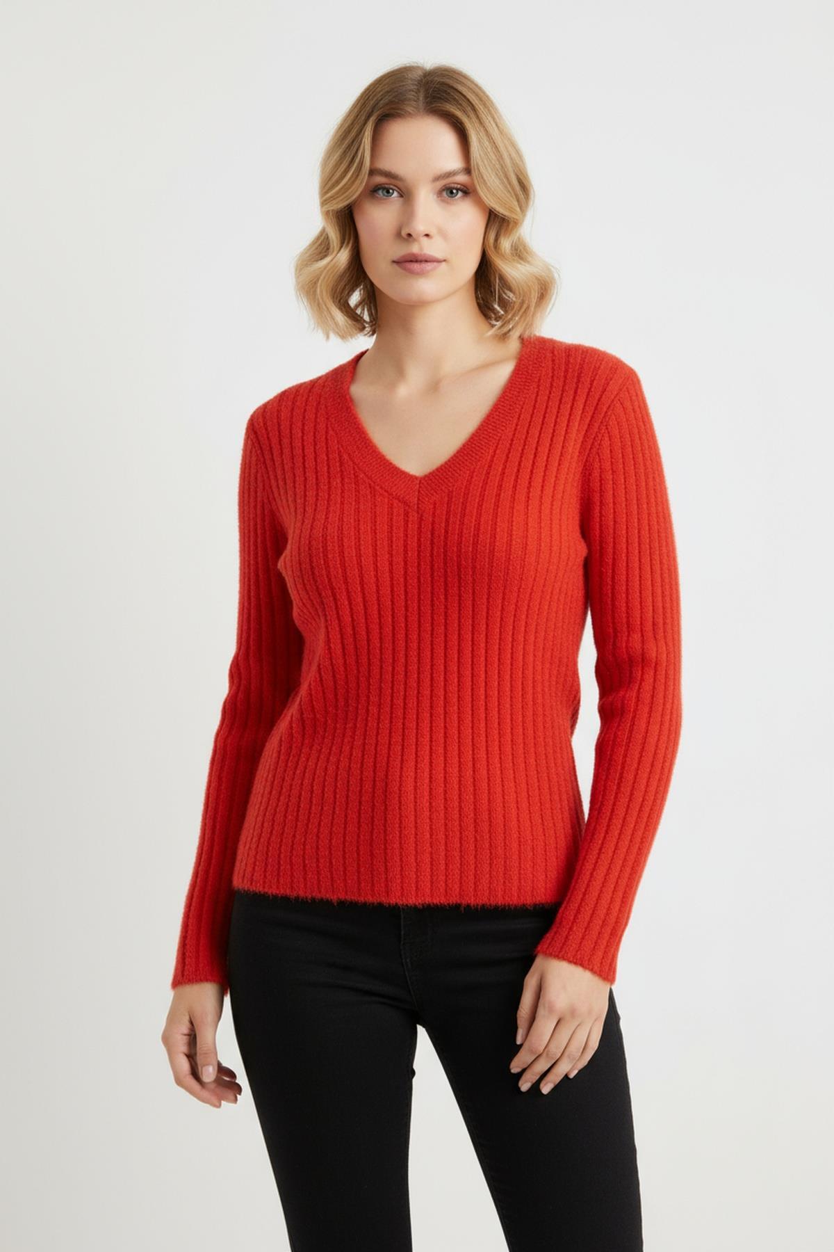 2412 Bisiklet Yaka Uzun Kol Kazak Kırmızı
