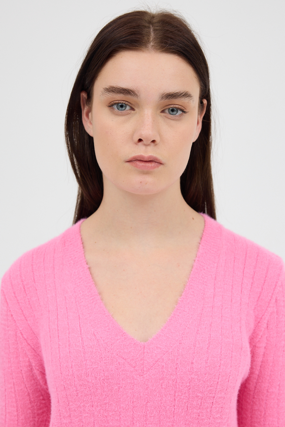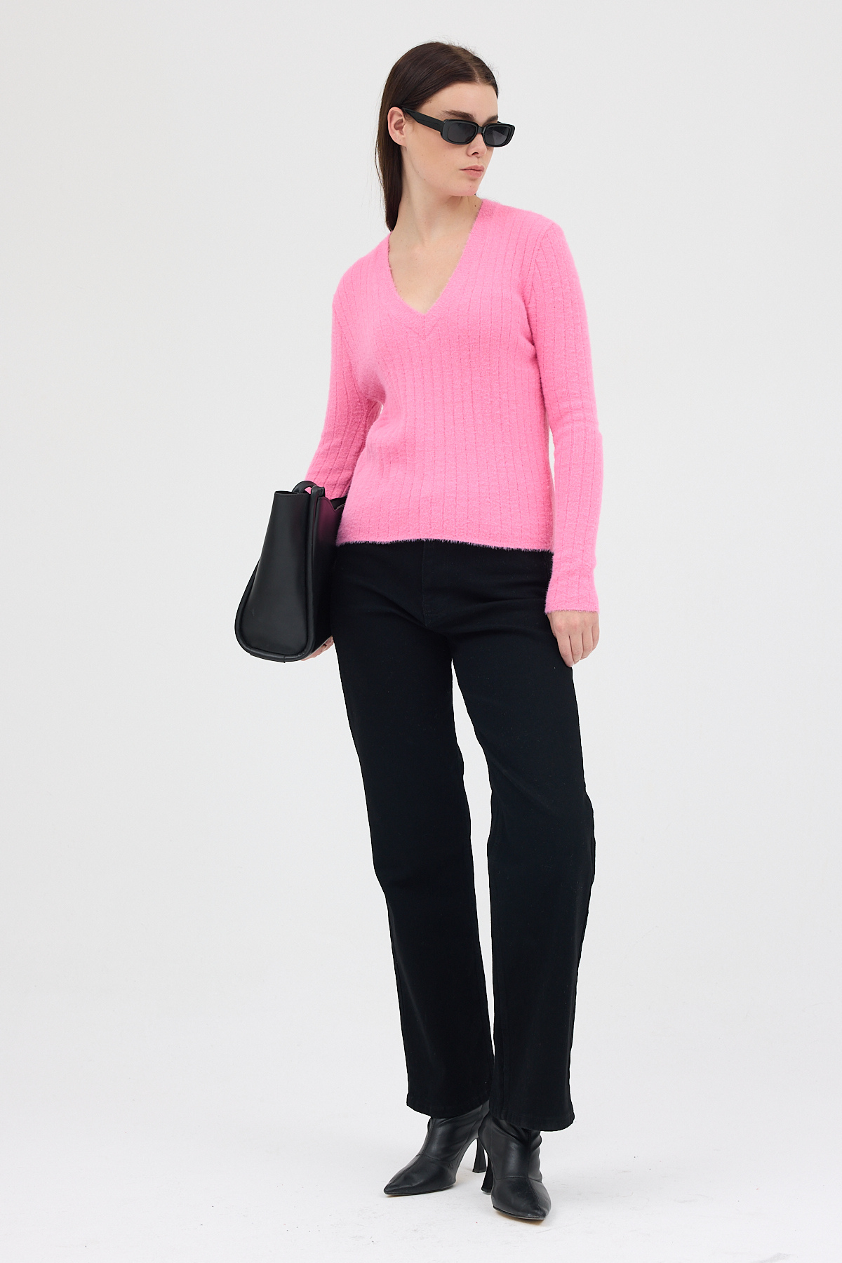 Pembe V Yaka Triko Kadın Kazak 2217