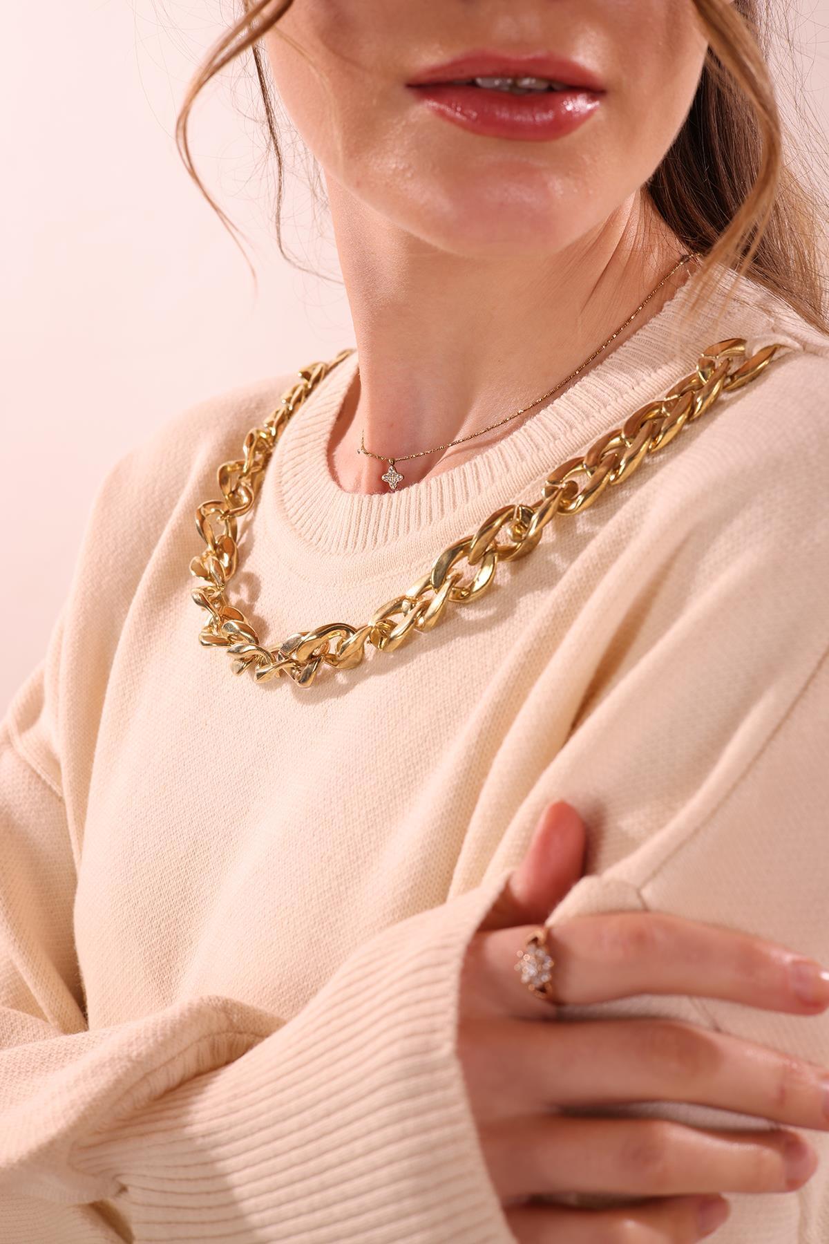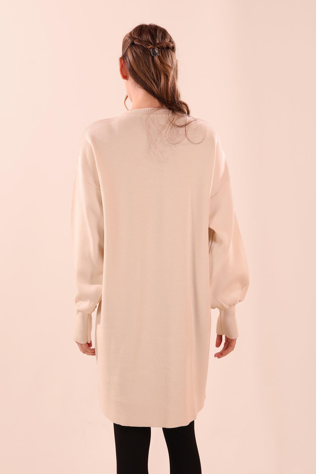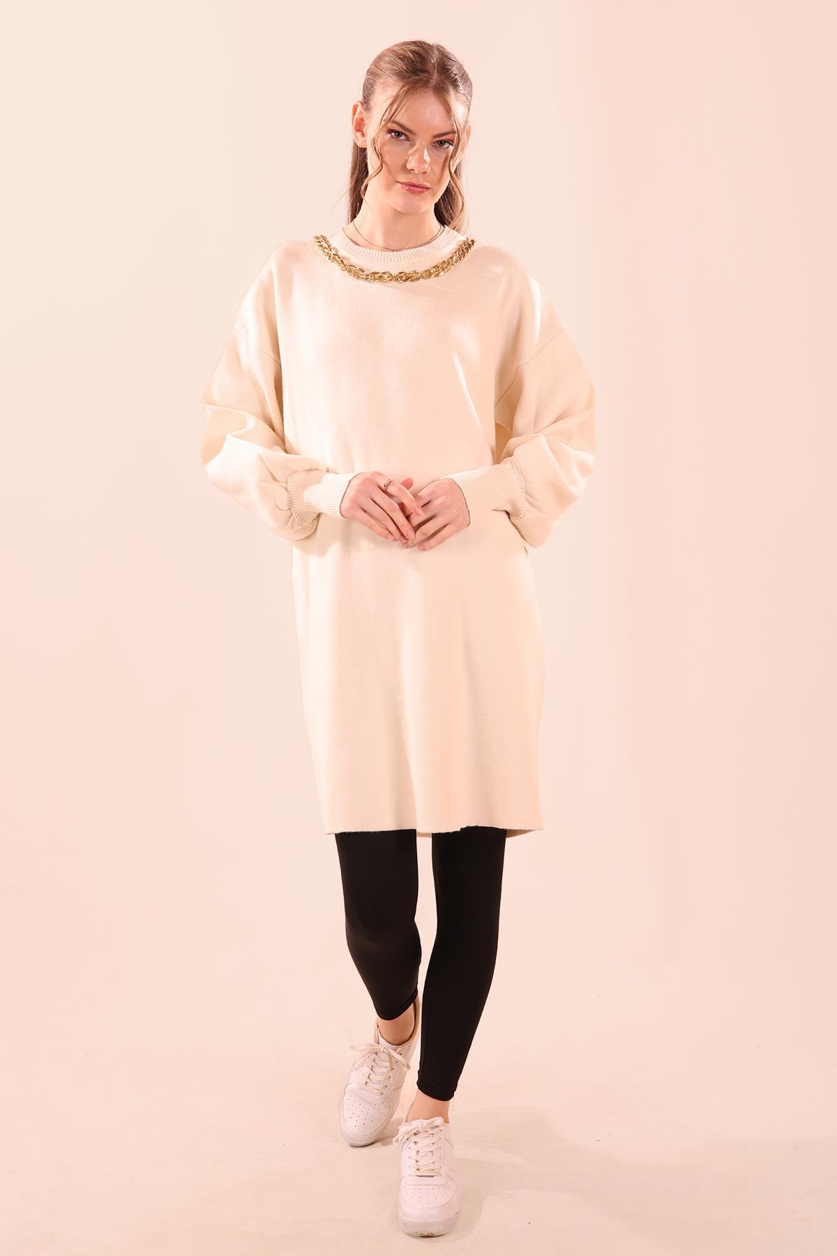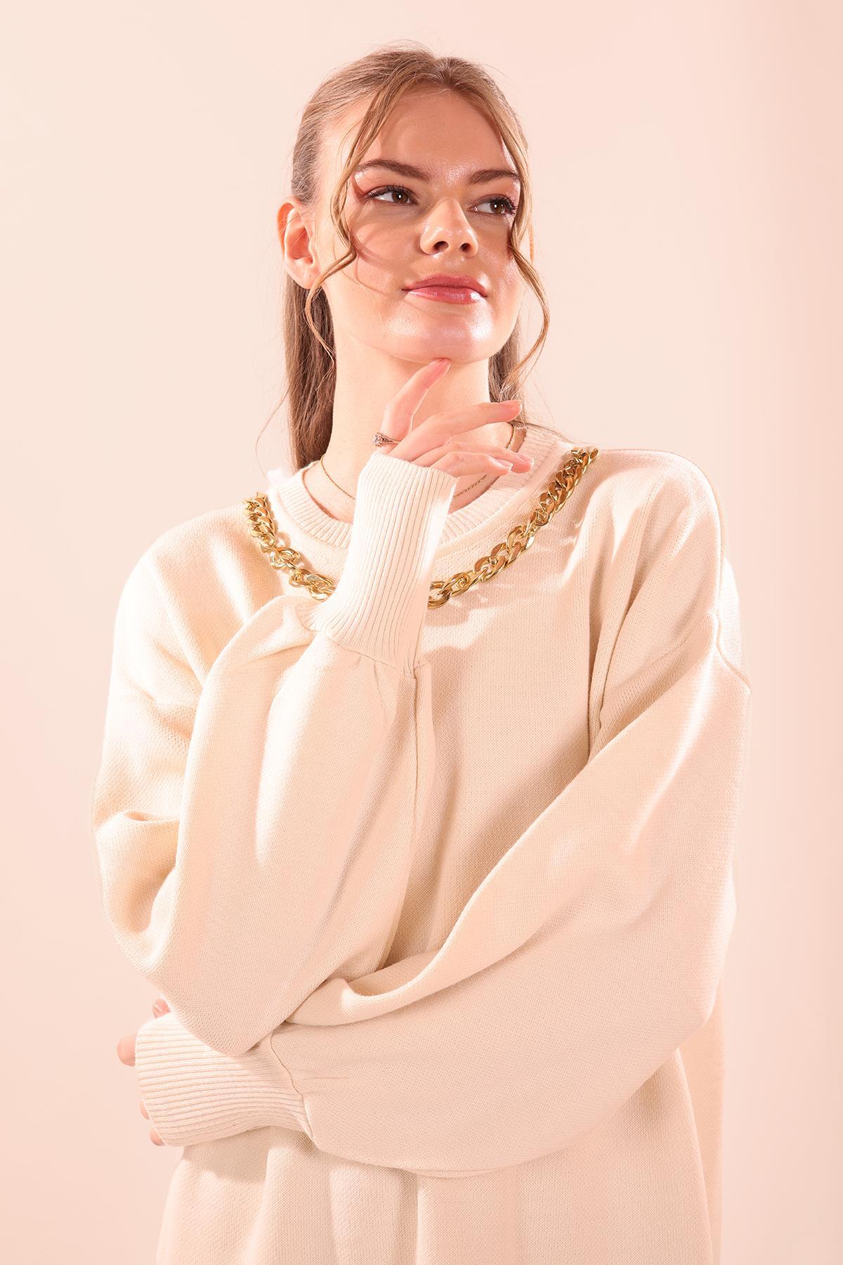 Ekru Zincir Aksesuarlı Balon Kol Kazak 22177