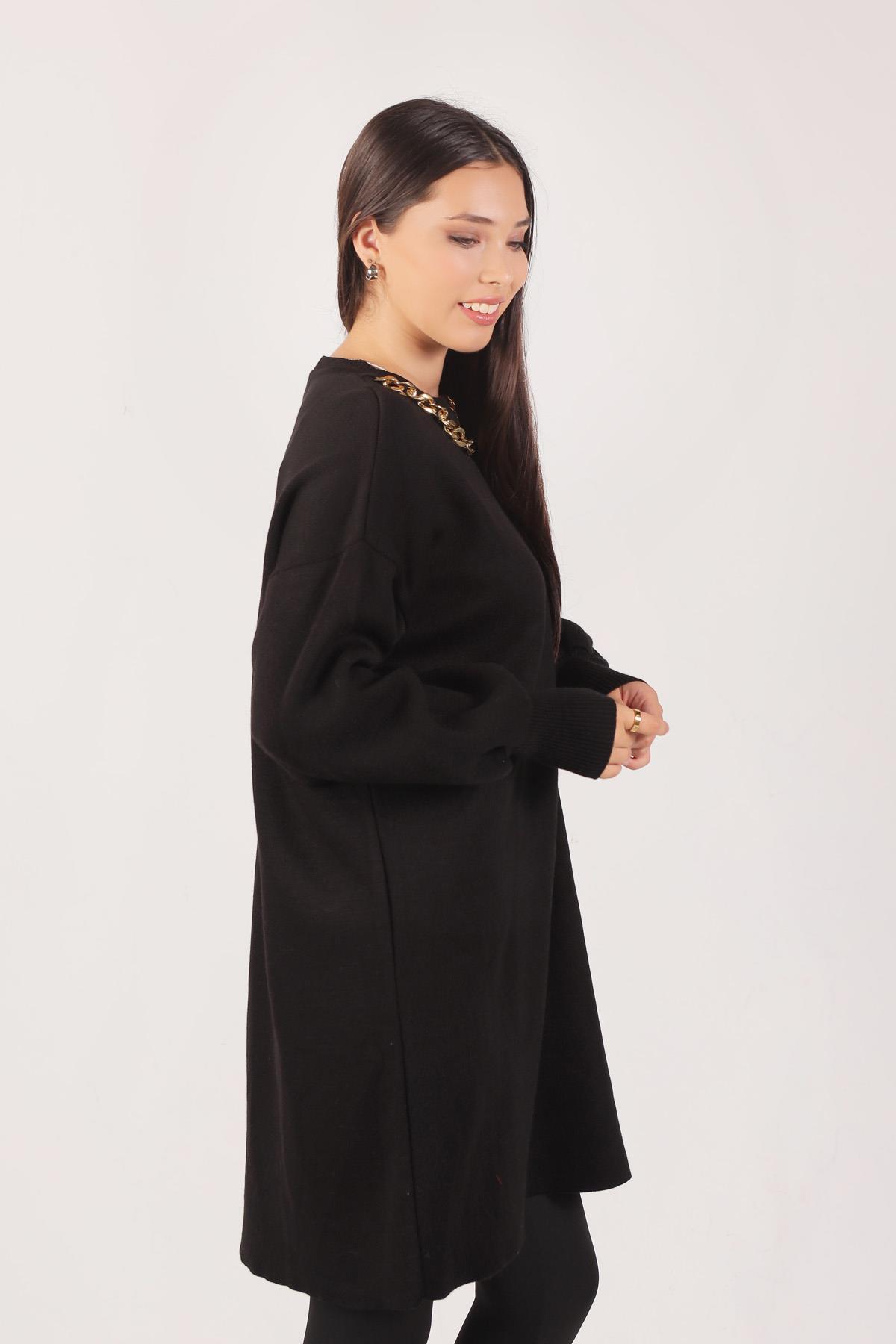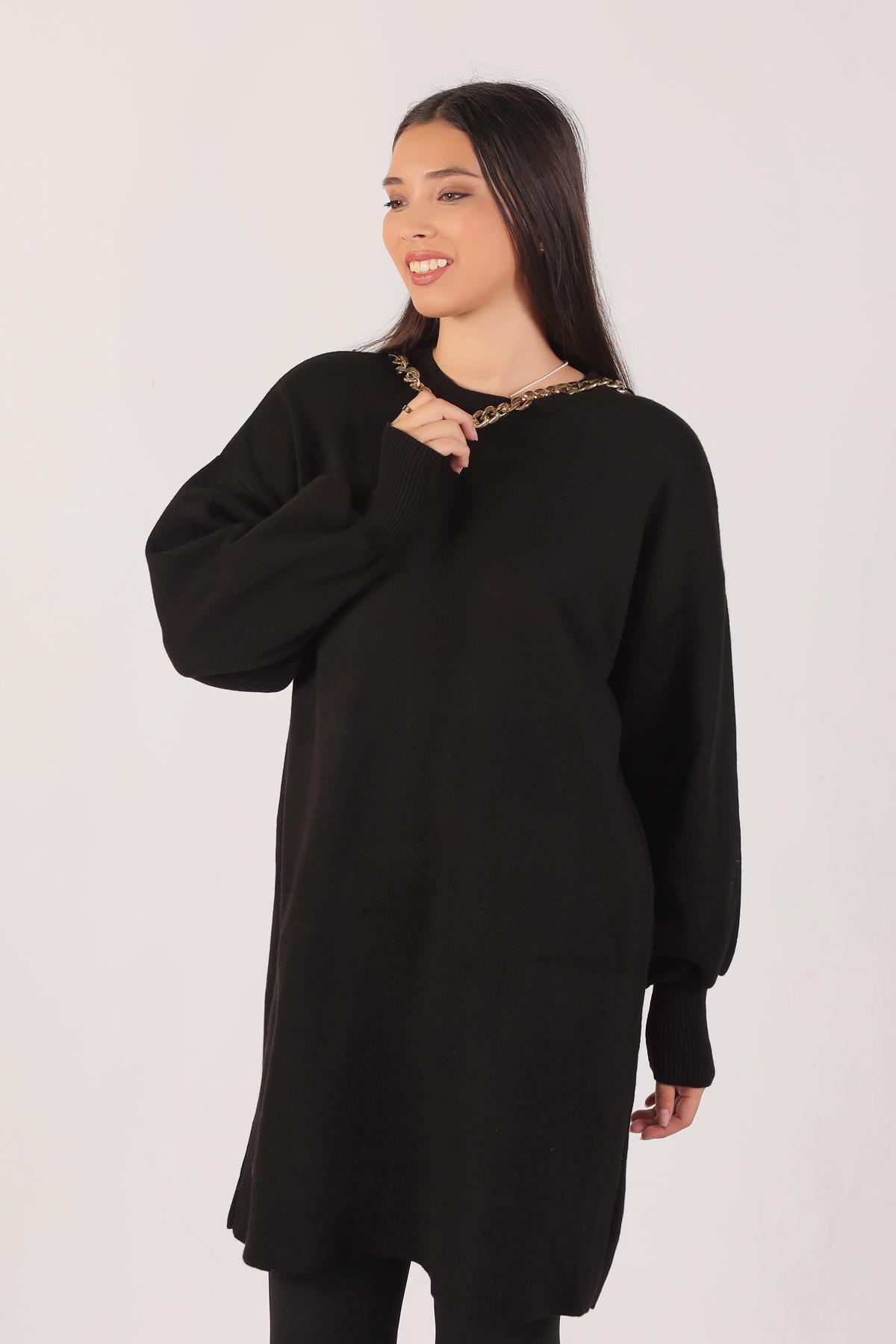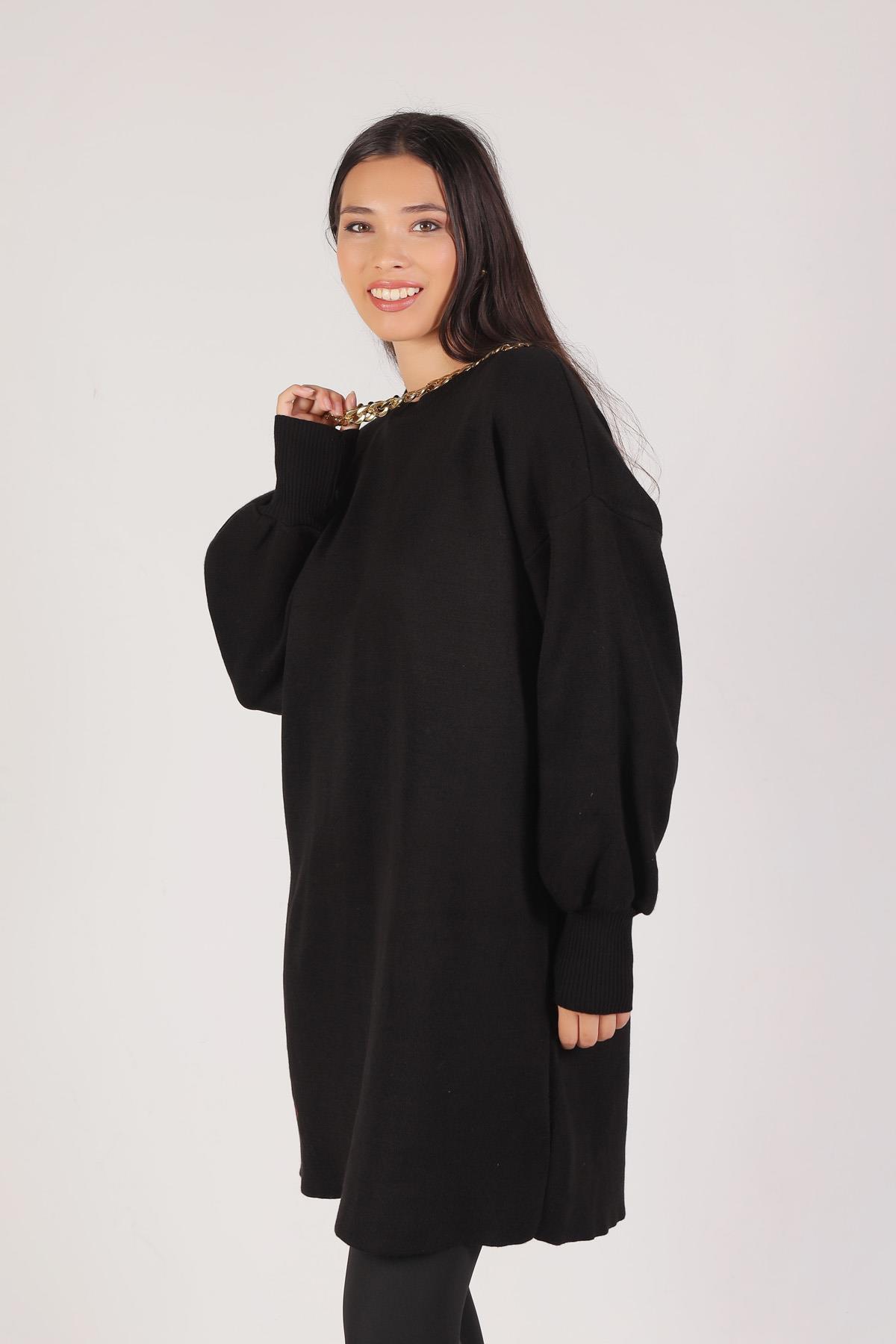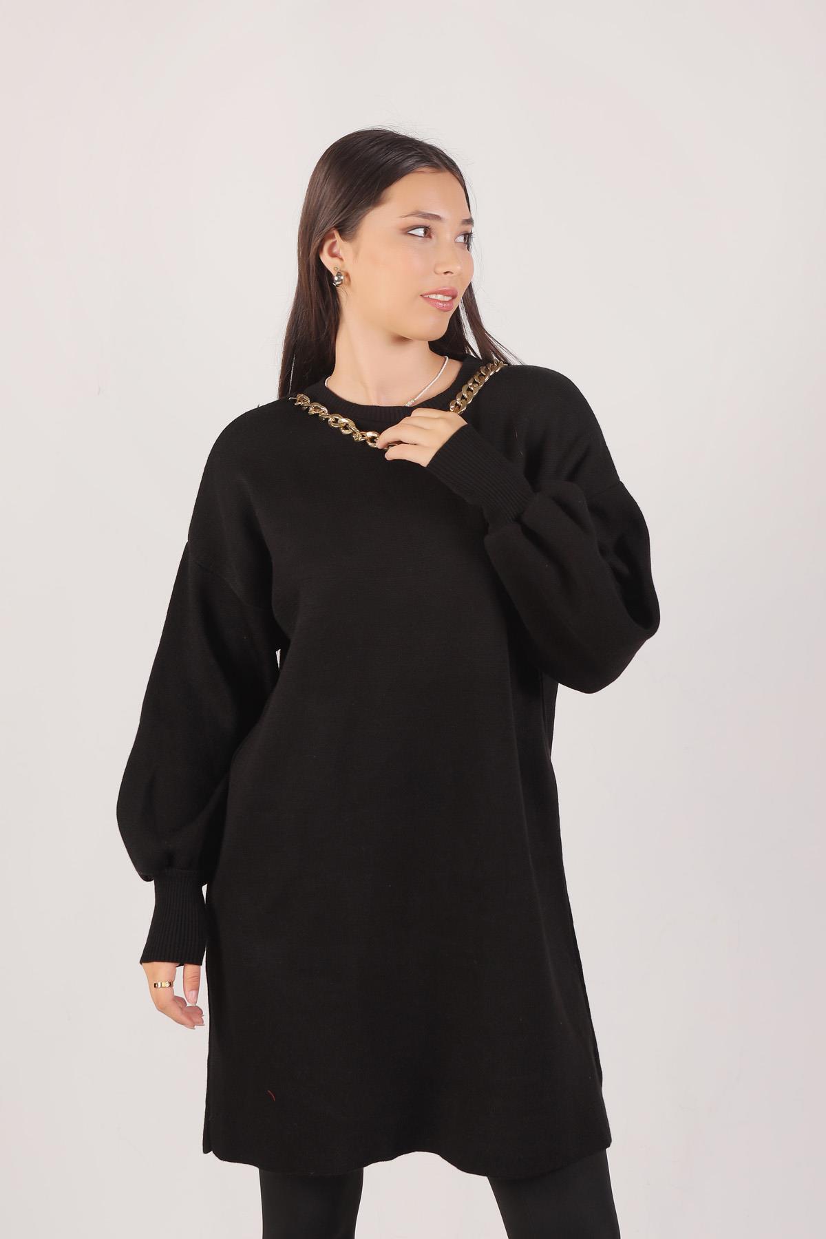 Siyah Zincir Aksesuarlı Balon Kol Kazak 22177