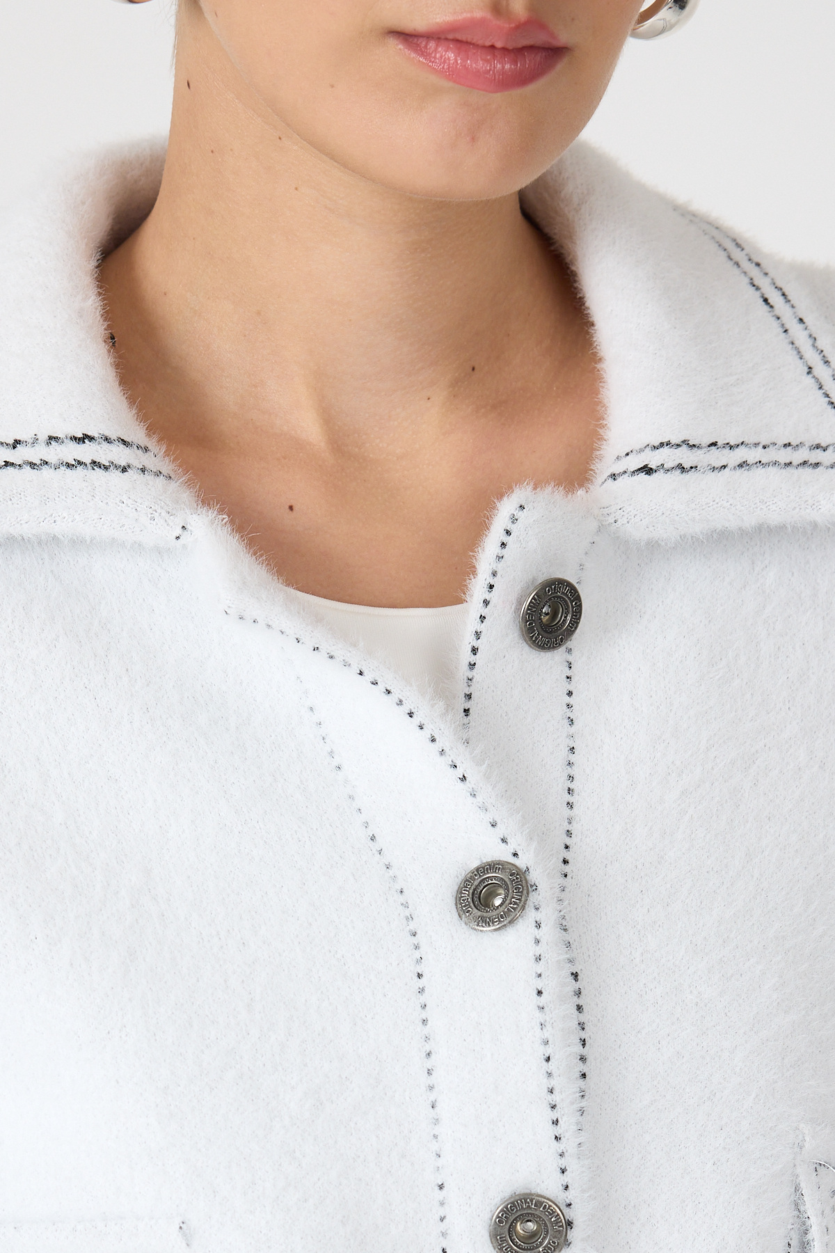 Ekru Peluş Görünümlü Denim Kollu Kadın Ceket 2225
