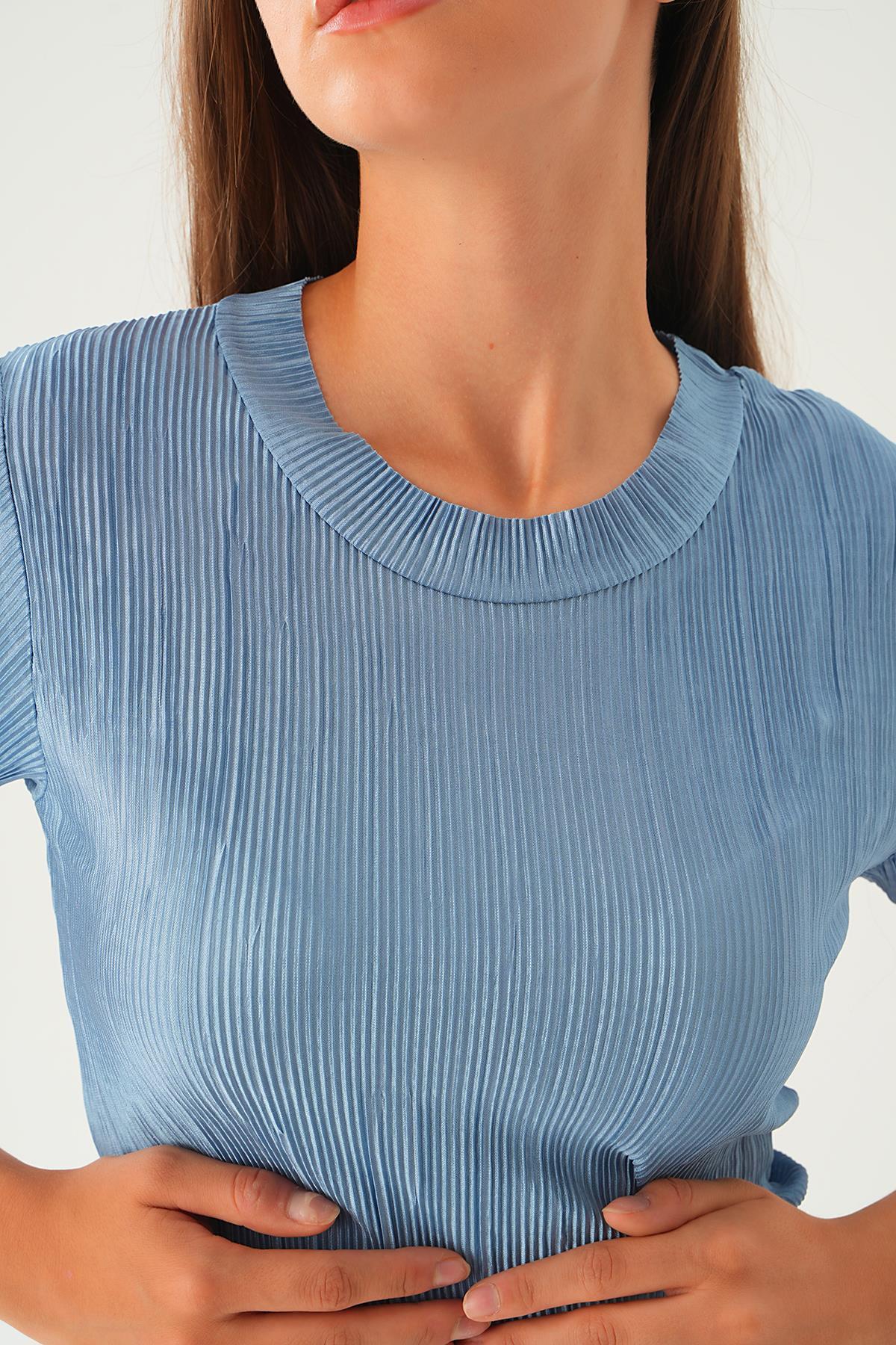 Mavi Kısa Kol Pliseli Tişört 223