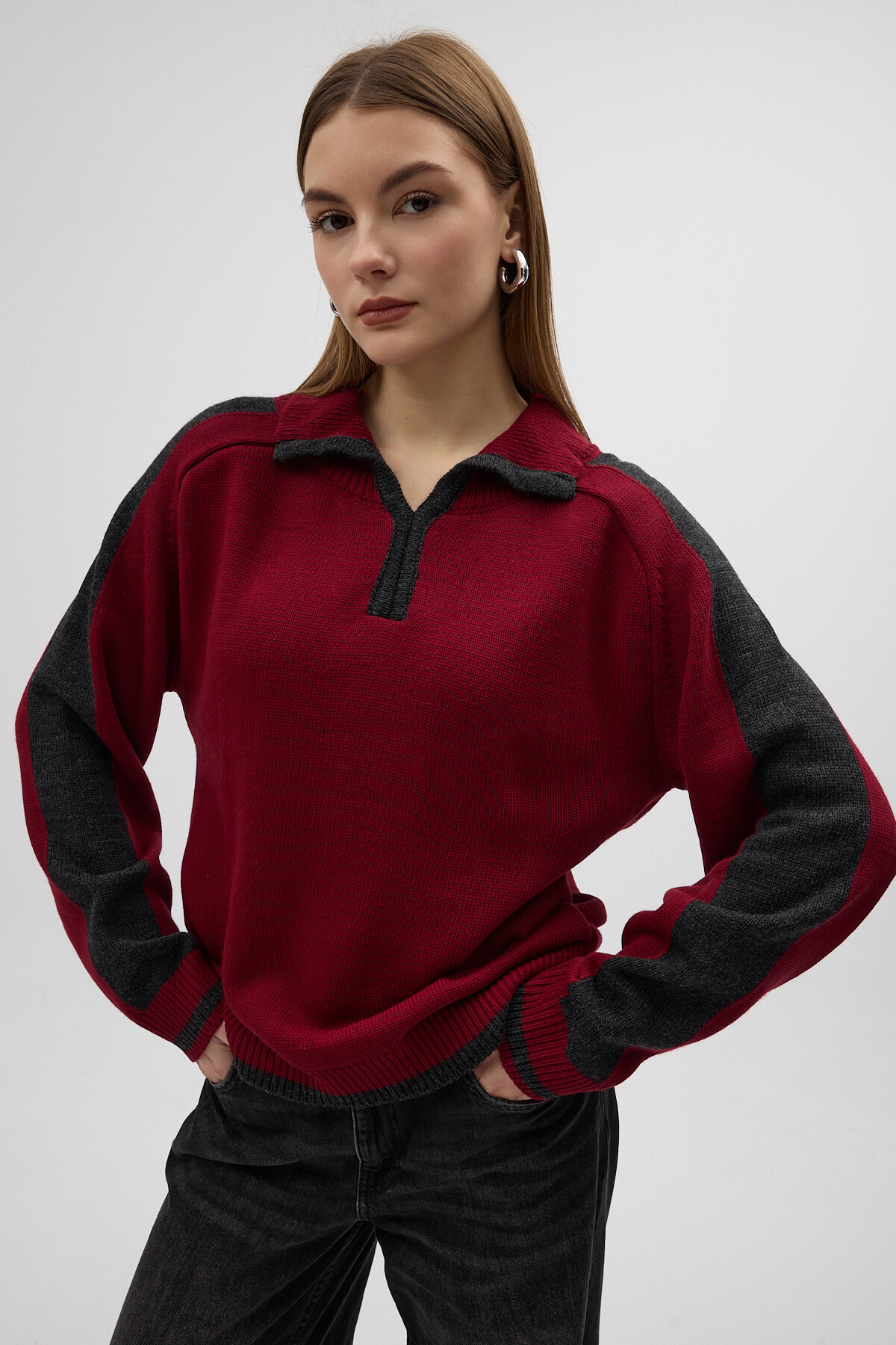 Mürdüm Gömlek Yaka Kazak 3082A