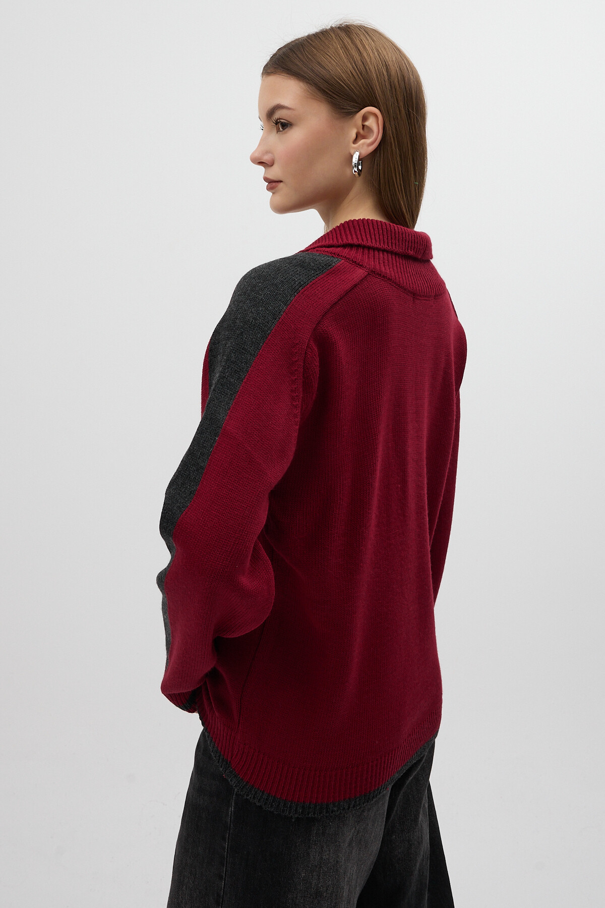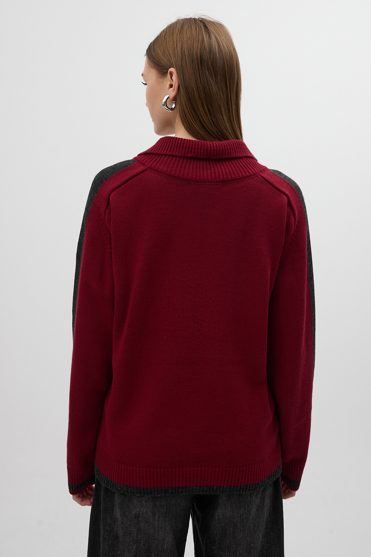 Bordo Omuz Detaylı Fermuar Yaka Kadın Kazak 2233