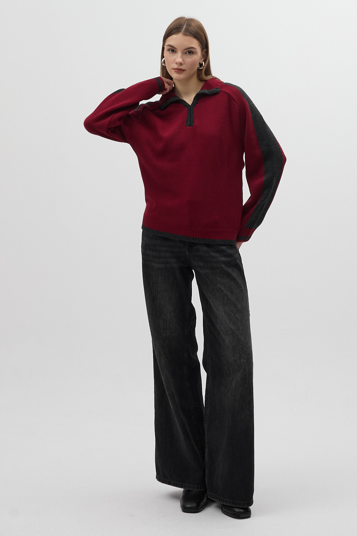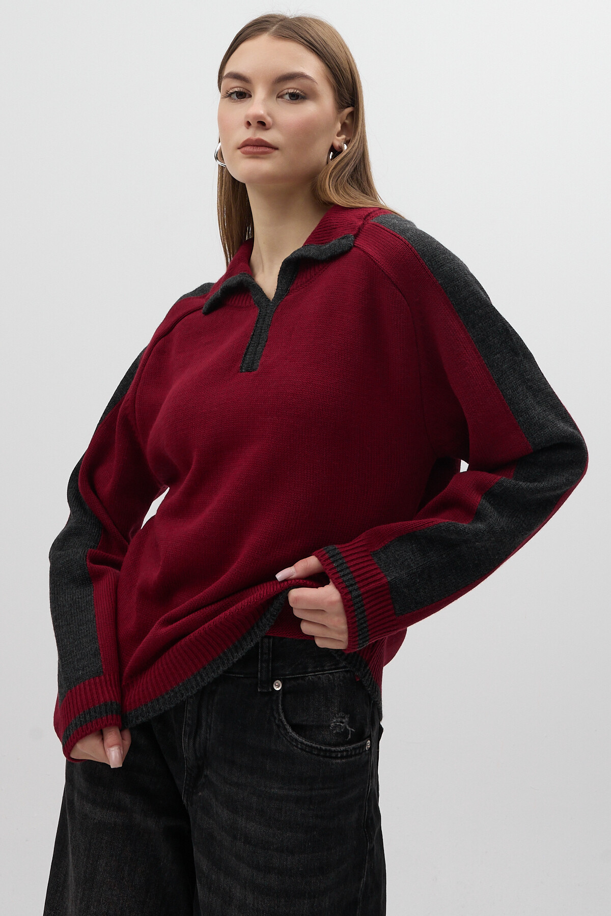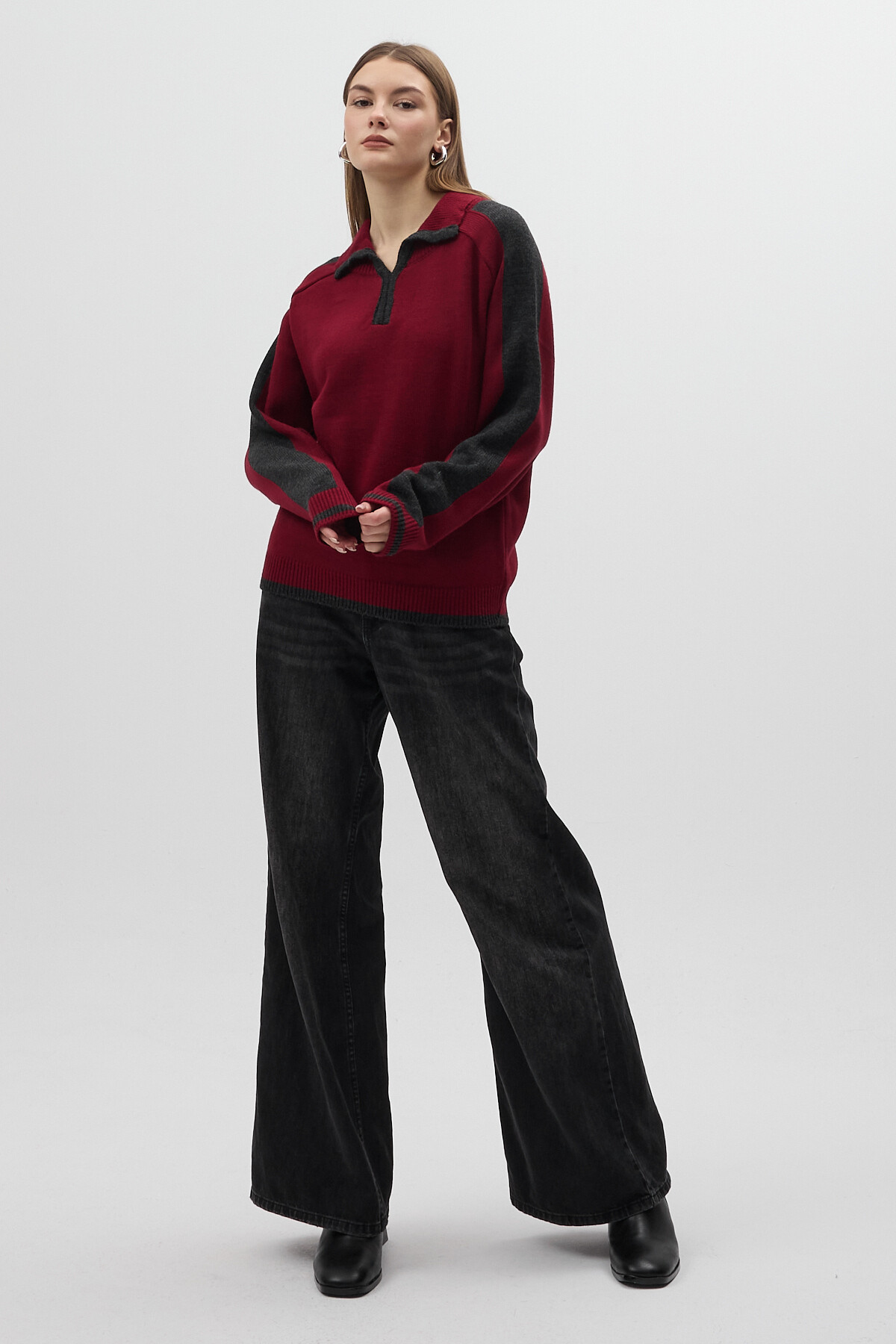 Mürdüm Gömlek Yaka Kazak 3082A - RAYS Mürdüm Gömlek Yaka Kazak 3082A - RAYS (1)