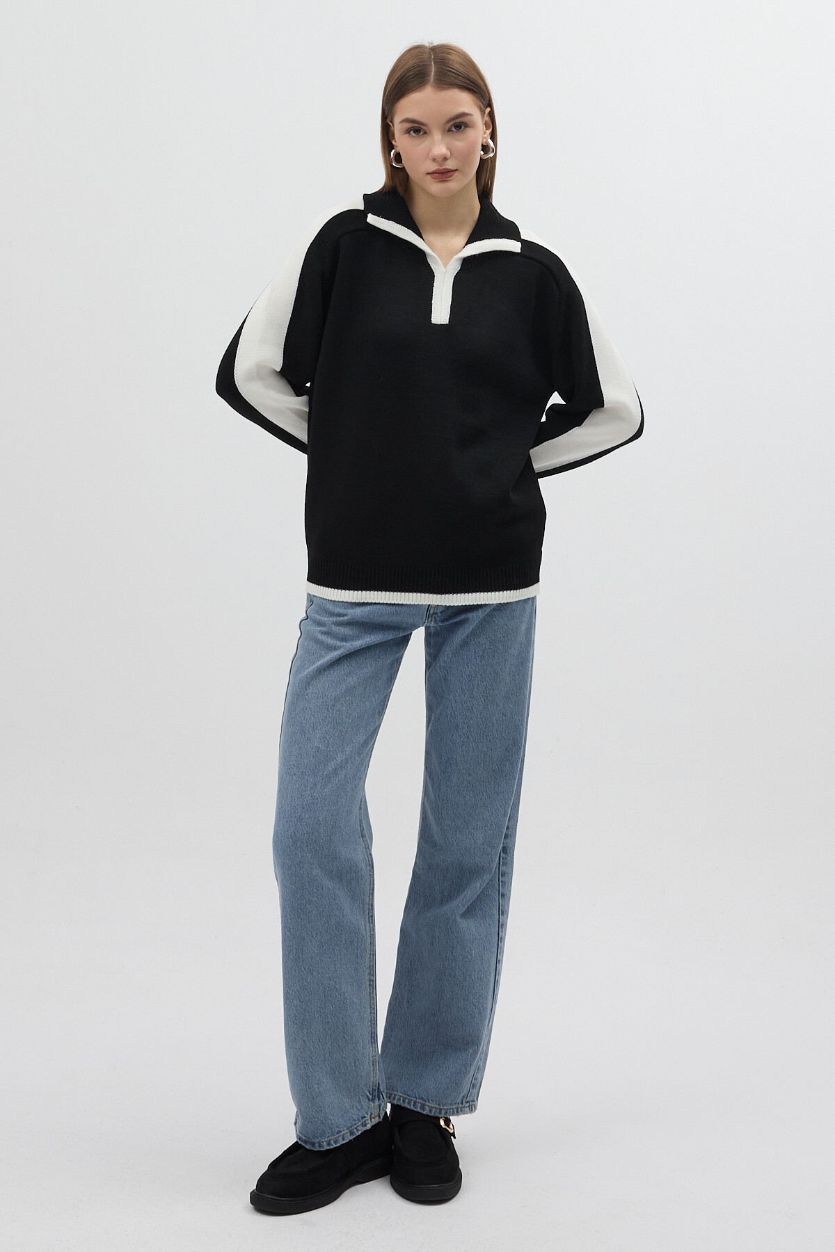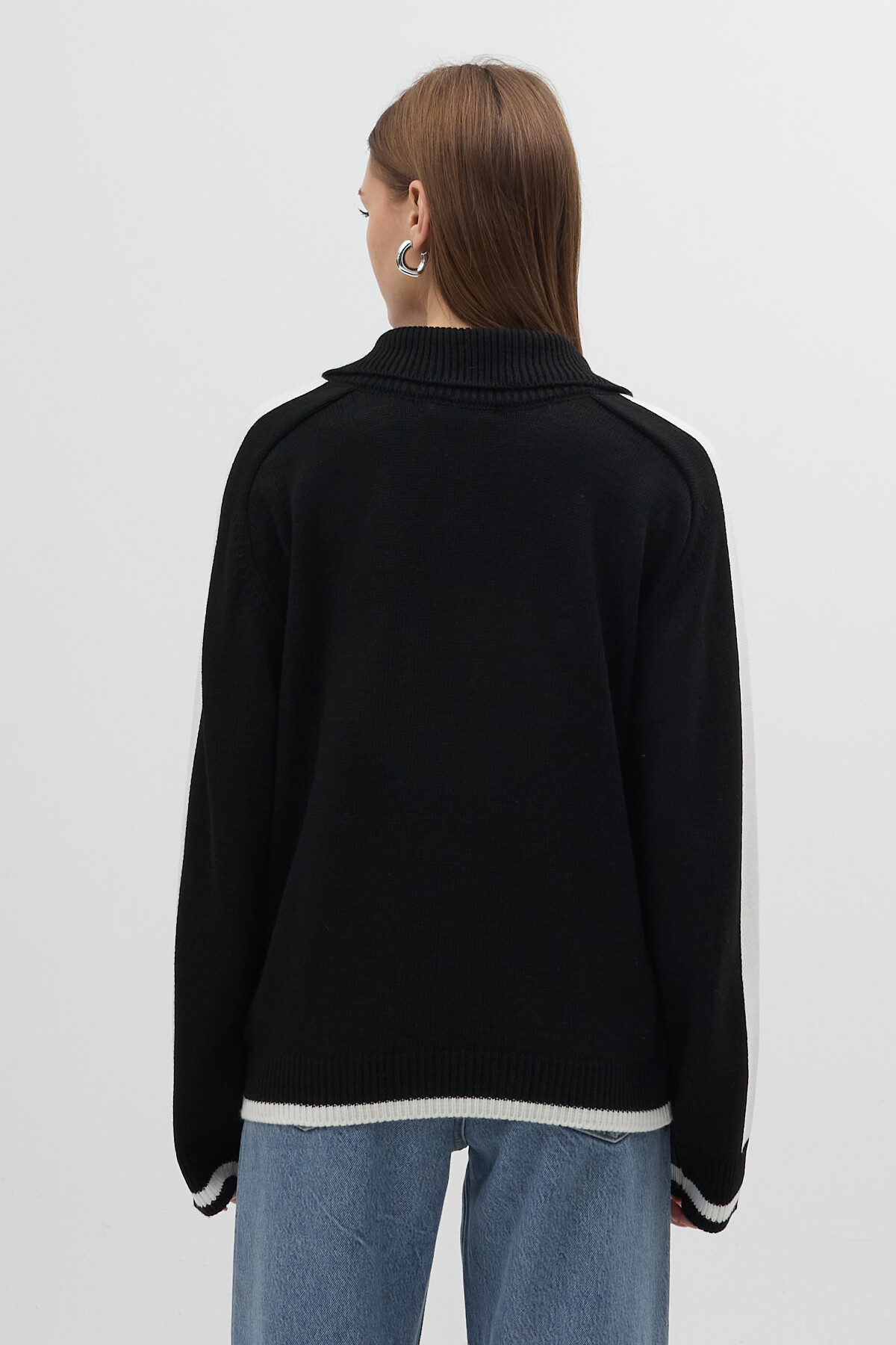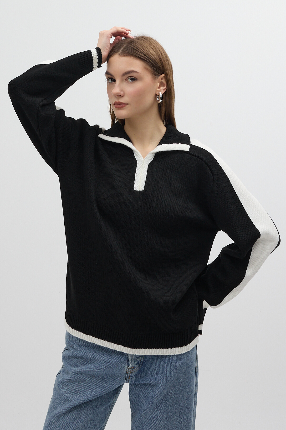 Siyah Omuz Detaylı Fermuar Yaka Kadın Kazak 2233