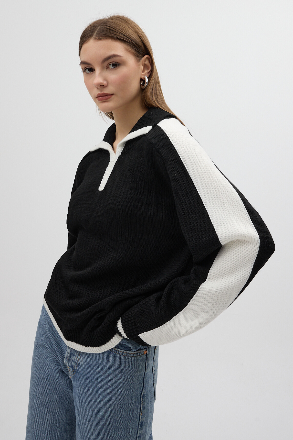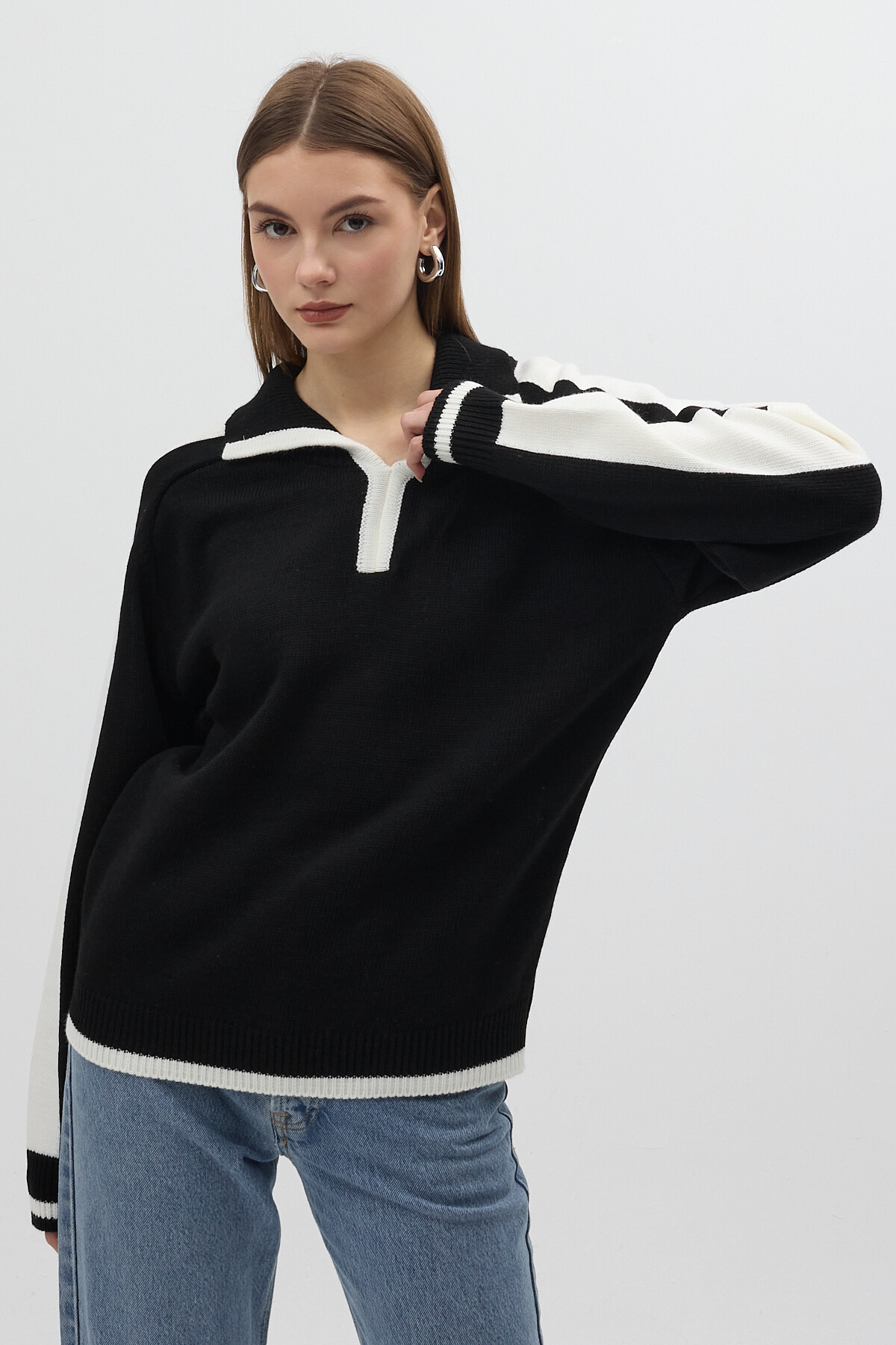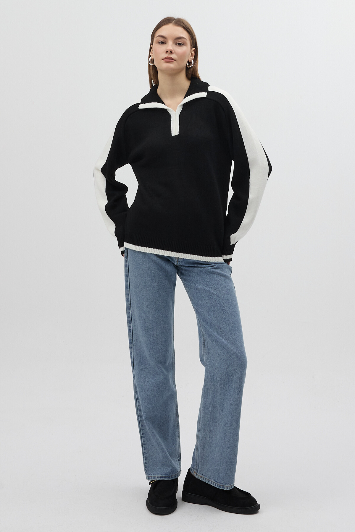 Siyah Omuz Detaylı Fermuar Yaka Kadın Kazak 2233