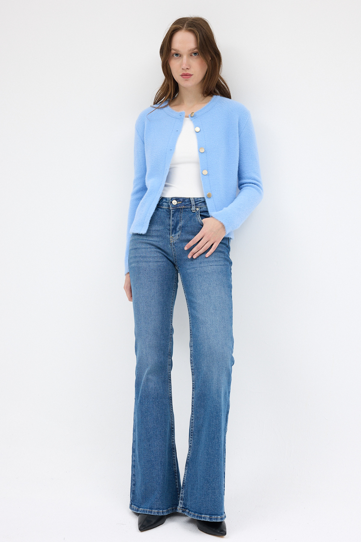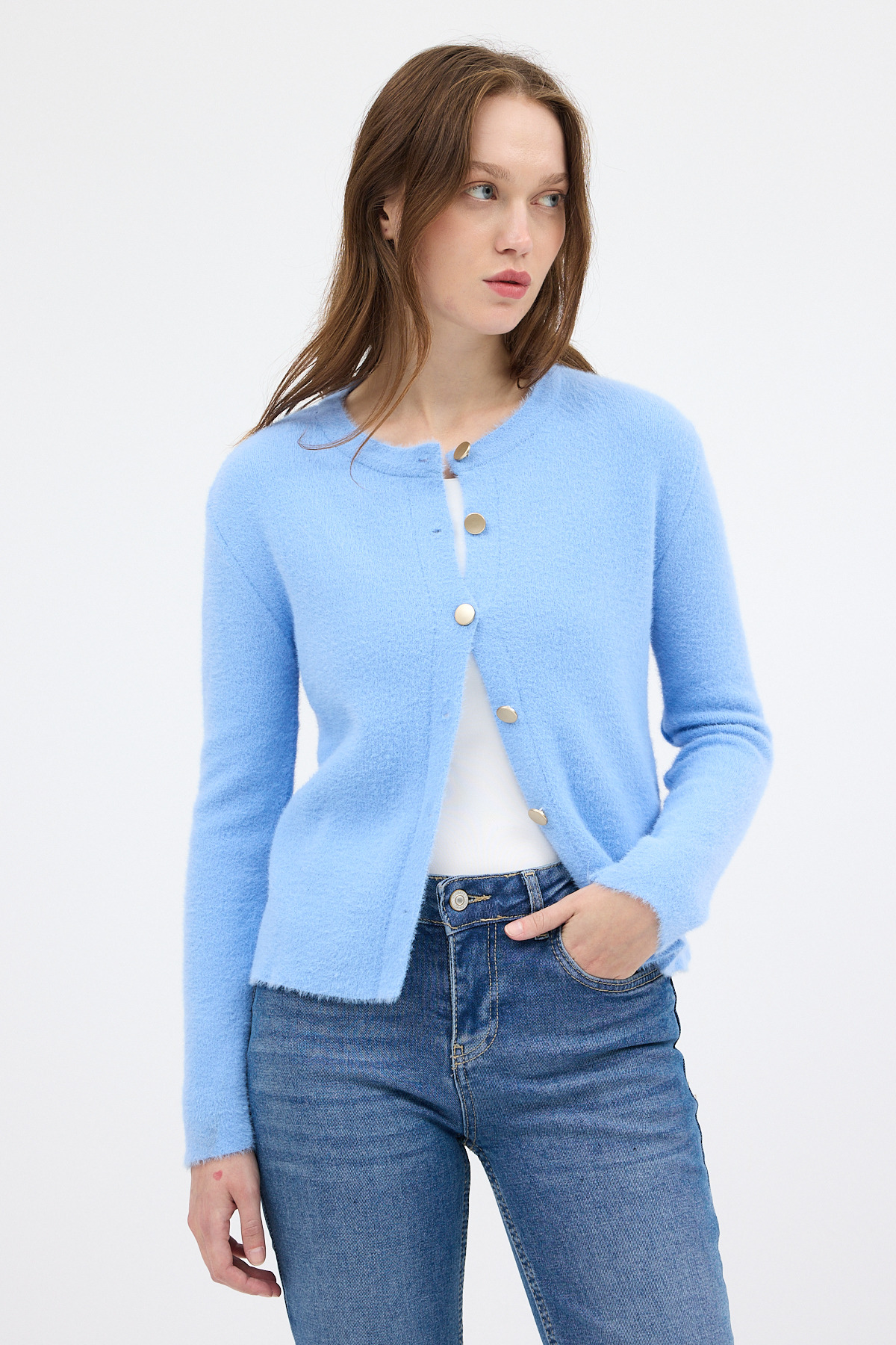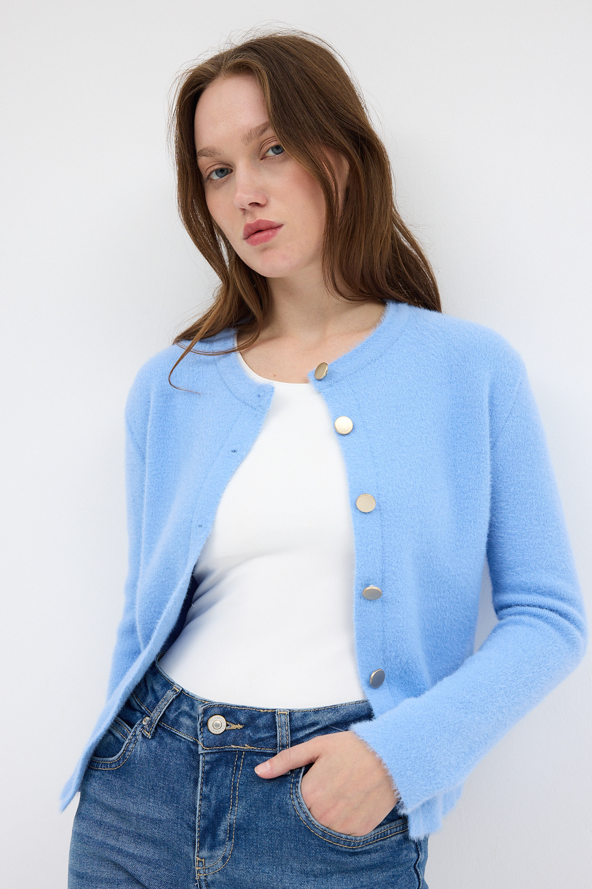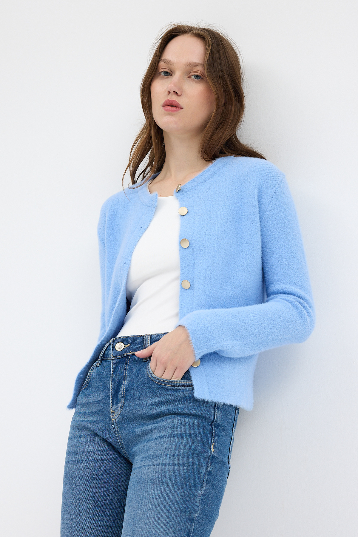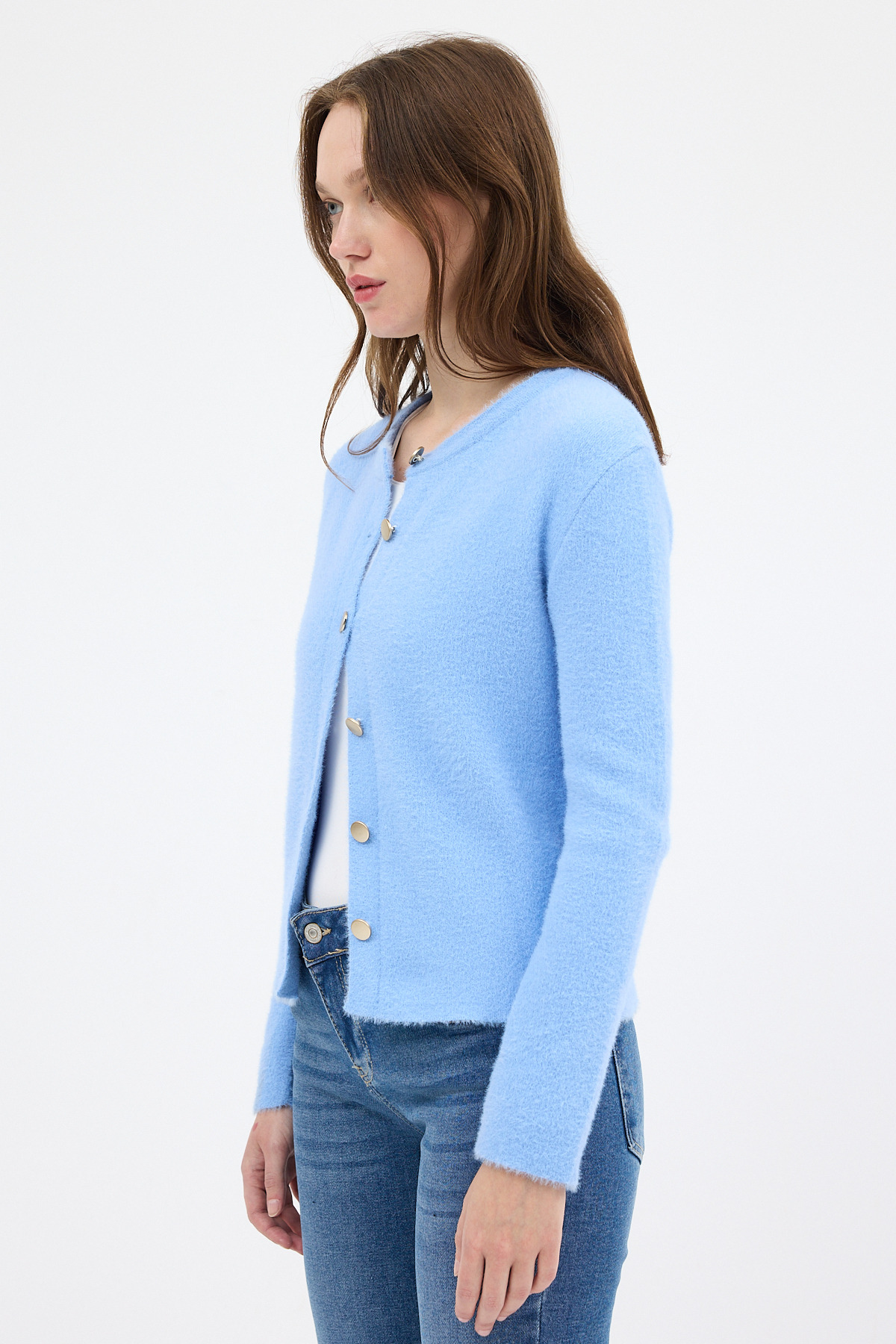 Bebe Mavi Kadın Yumoş Dokulu Düğmeli Triko Hırka 2241