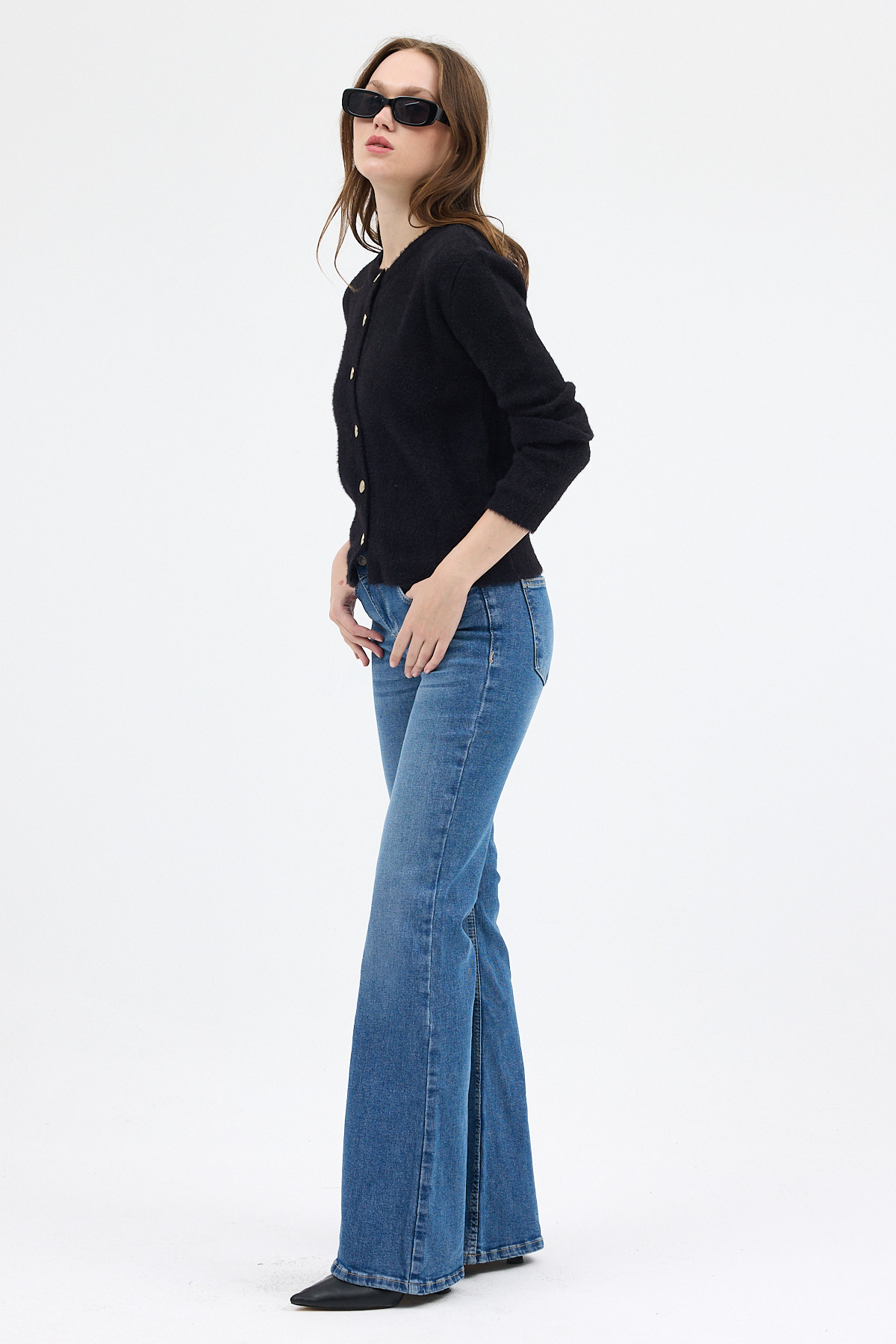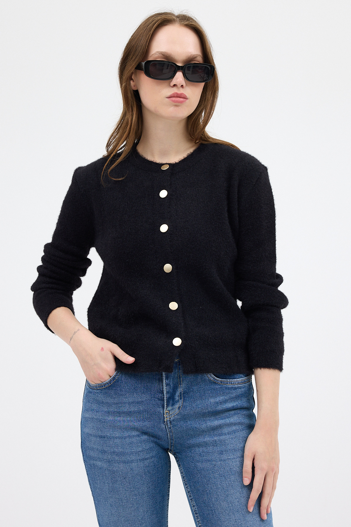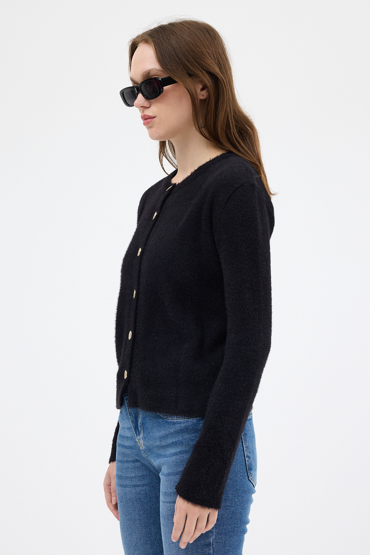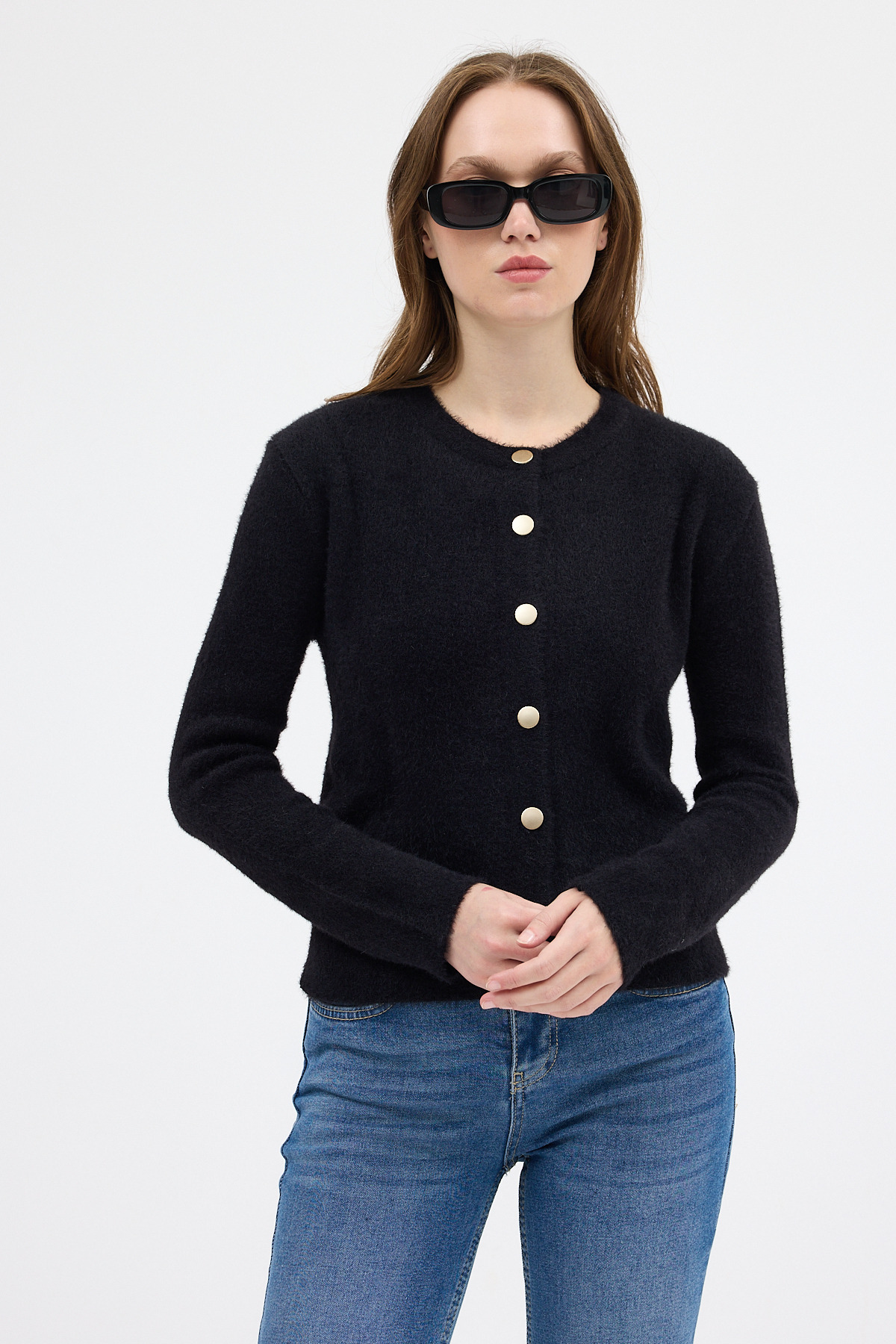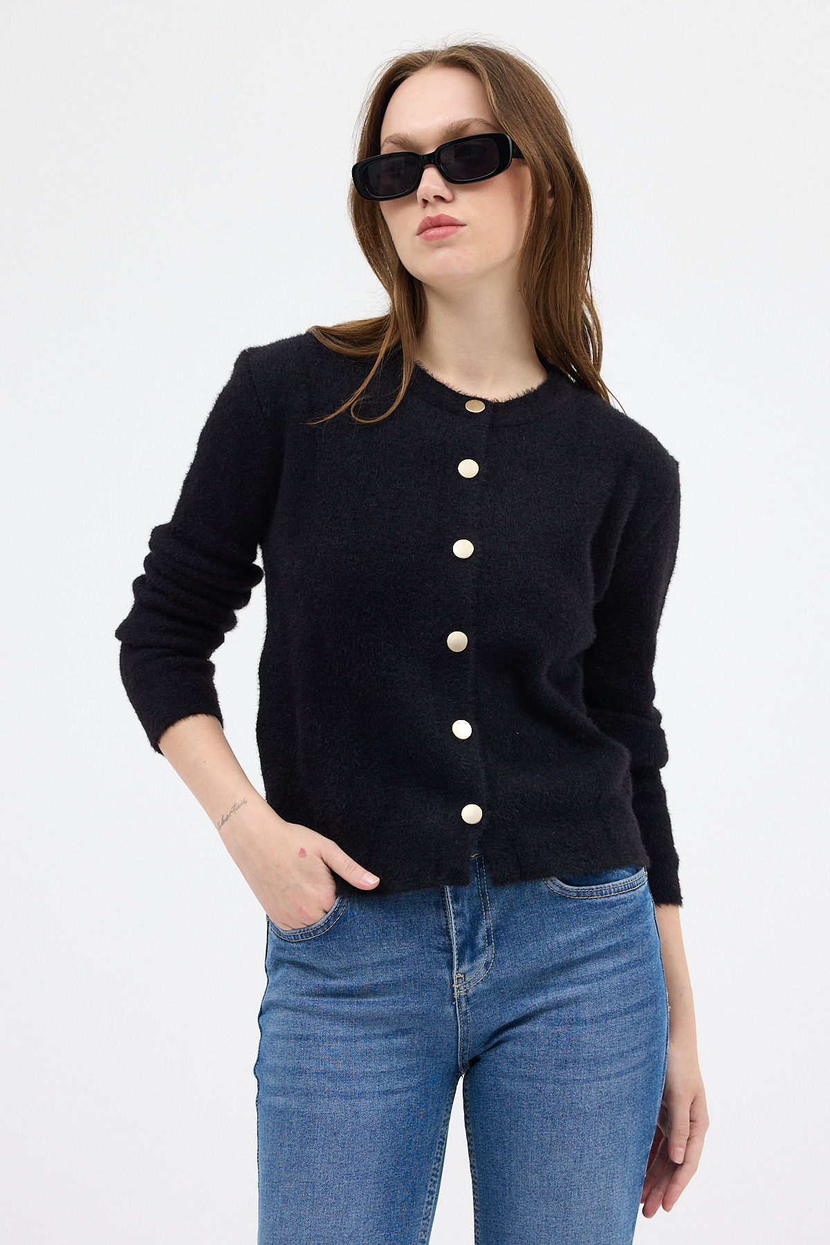 Siyah Kadın Yumoş Dokulu Düğmeli Triko Hırka 2241
