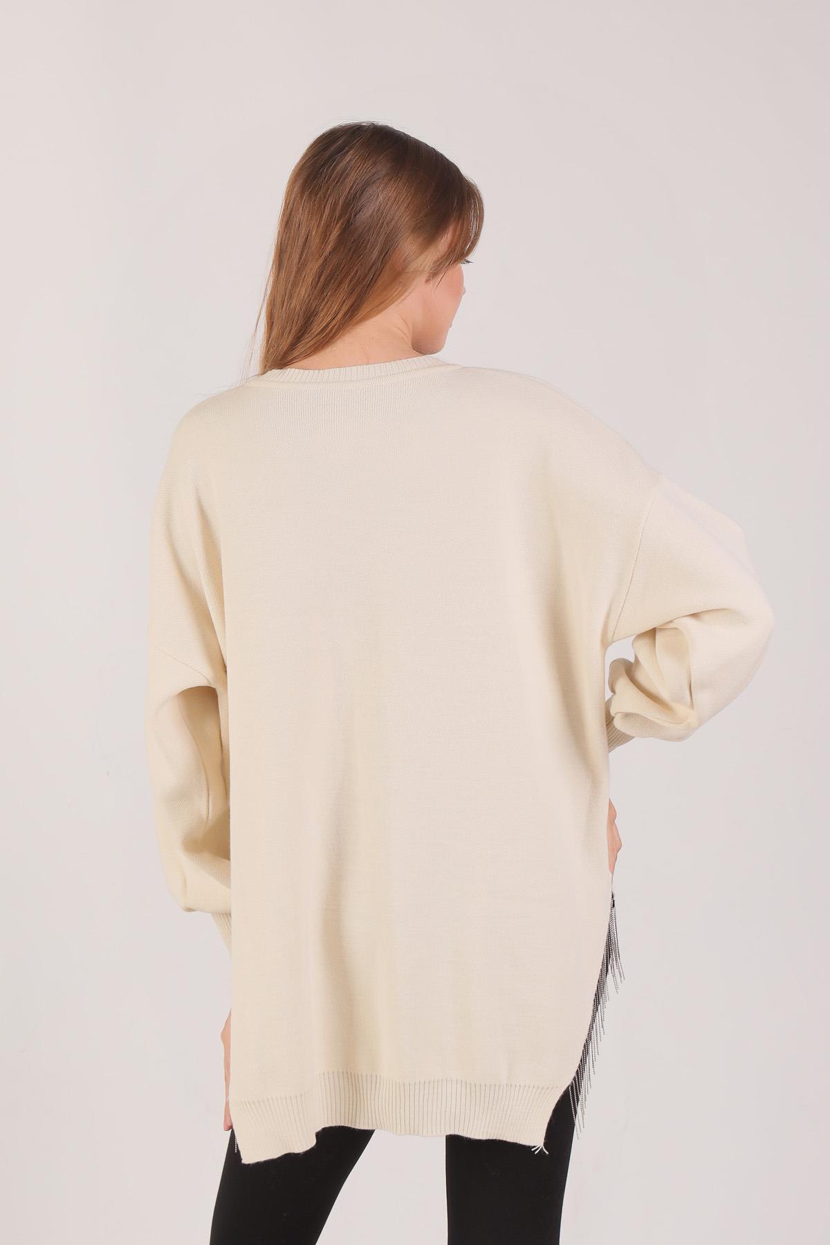 Gri - Ekru Yıldız Baskılı Oversize Kazak 2474 - RAYS Gri - Ekru Yıldız Baskılı Oversize Kazak 2474 - RAYS (1)