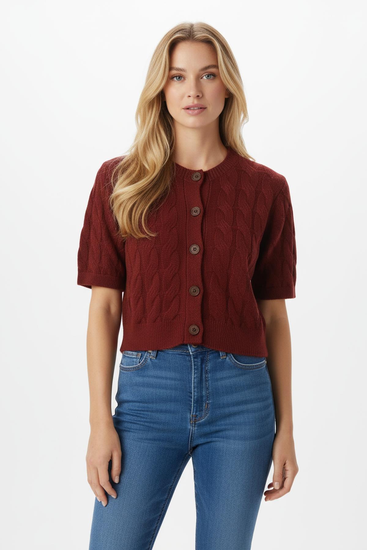 2262 Düğmeli Crop Hırka Bordo