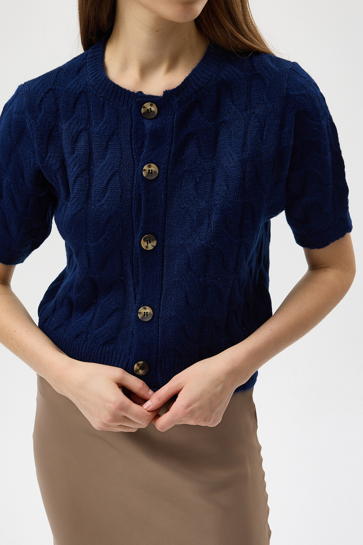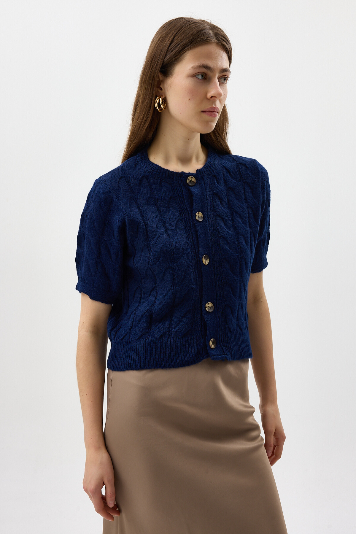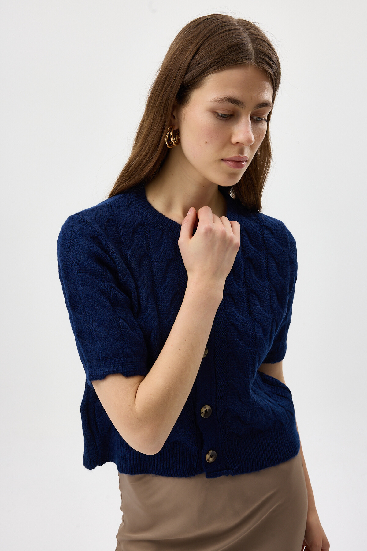 Lacivert Örgü Kısa Kollu Düğmeli Crop Kadın Hırka 2262