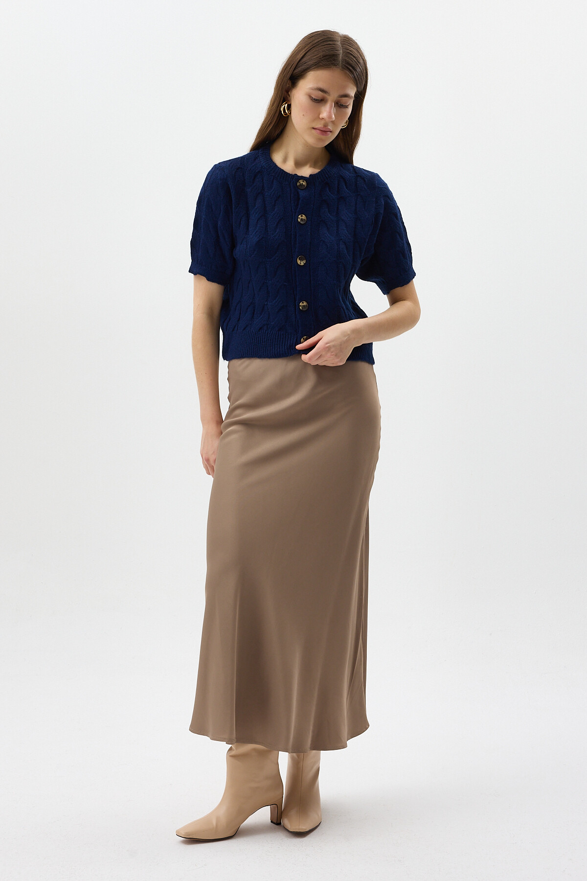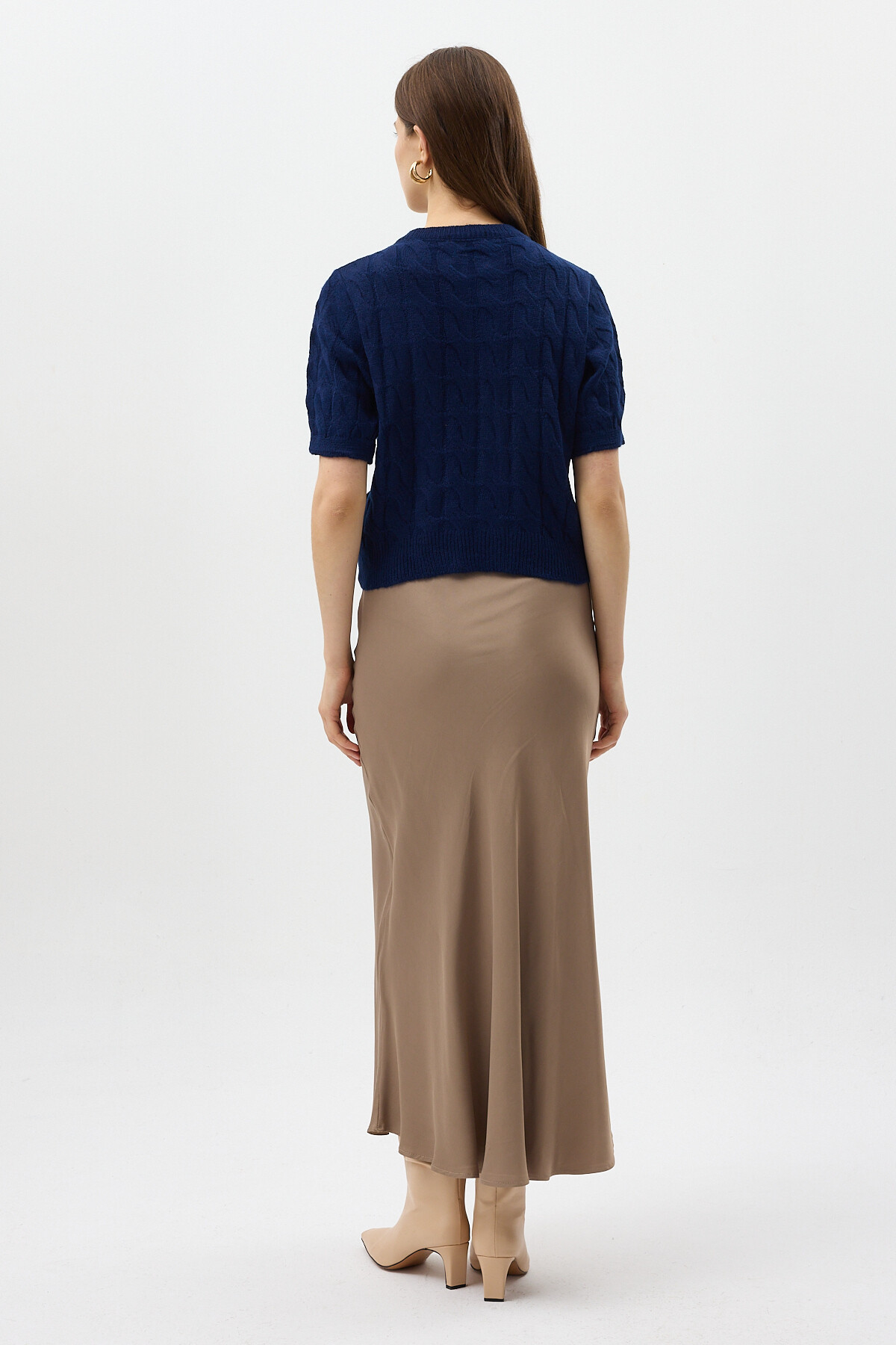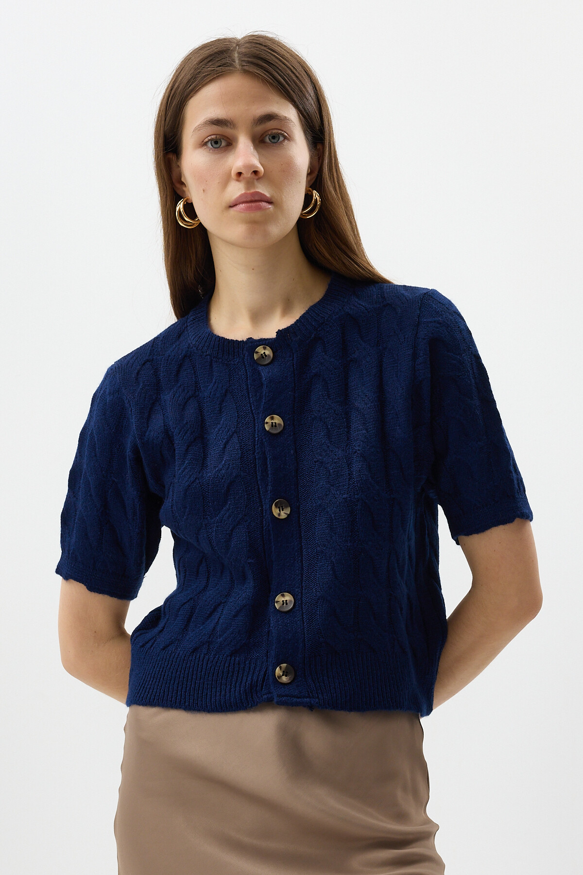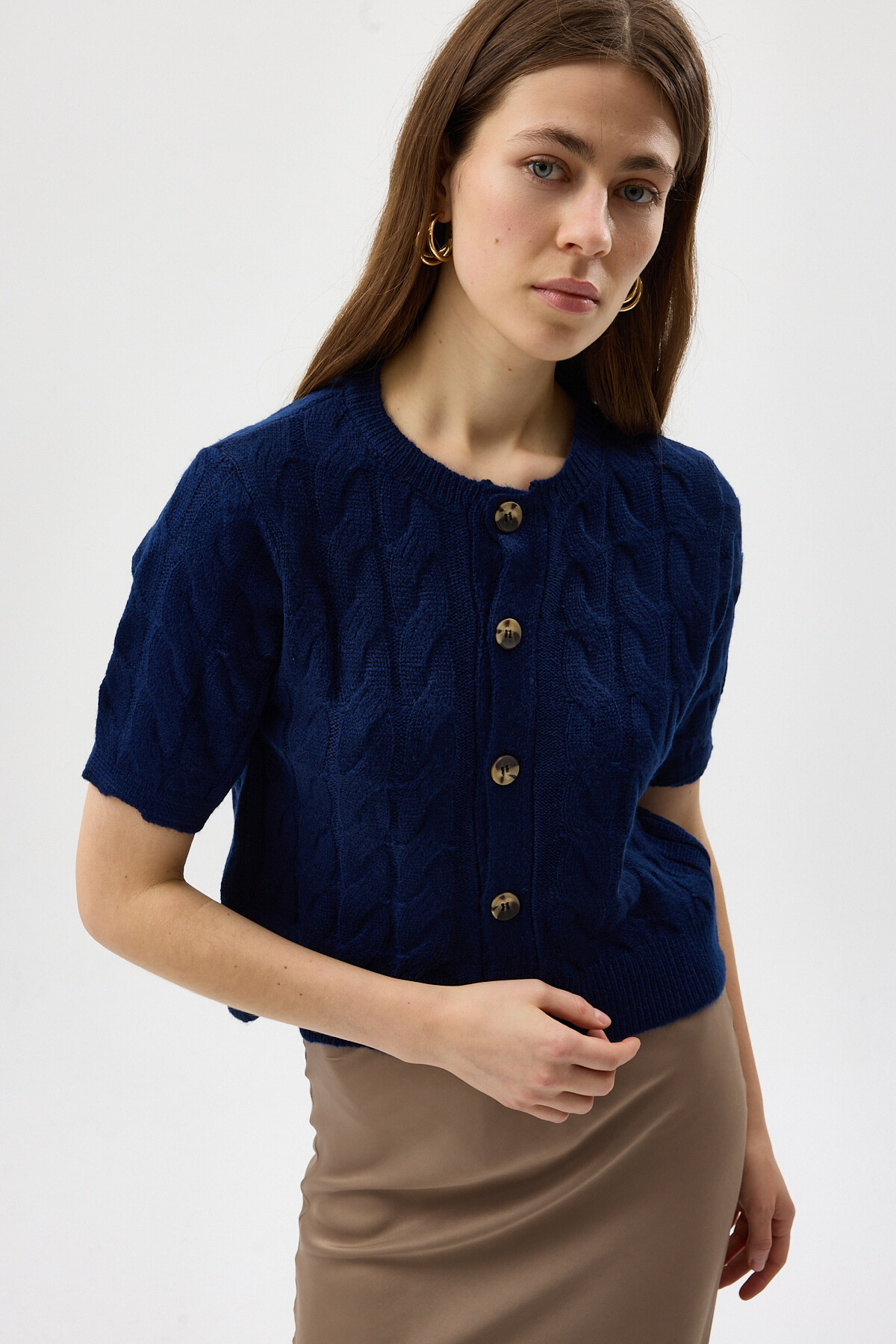 Lacivert Örgü Kısa Kollu Düğmeli Crop Kadın Hırka 2262