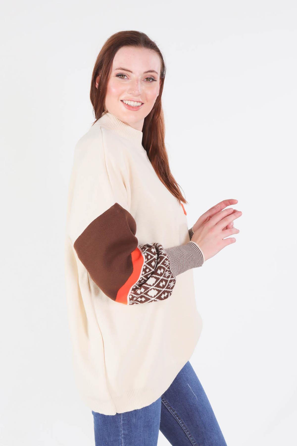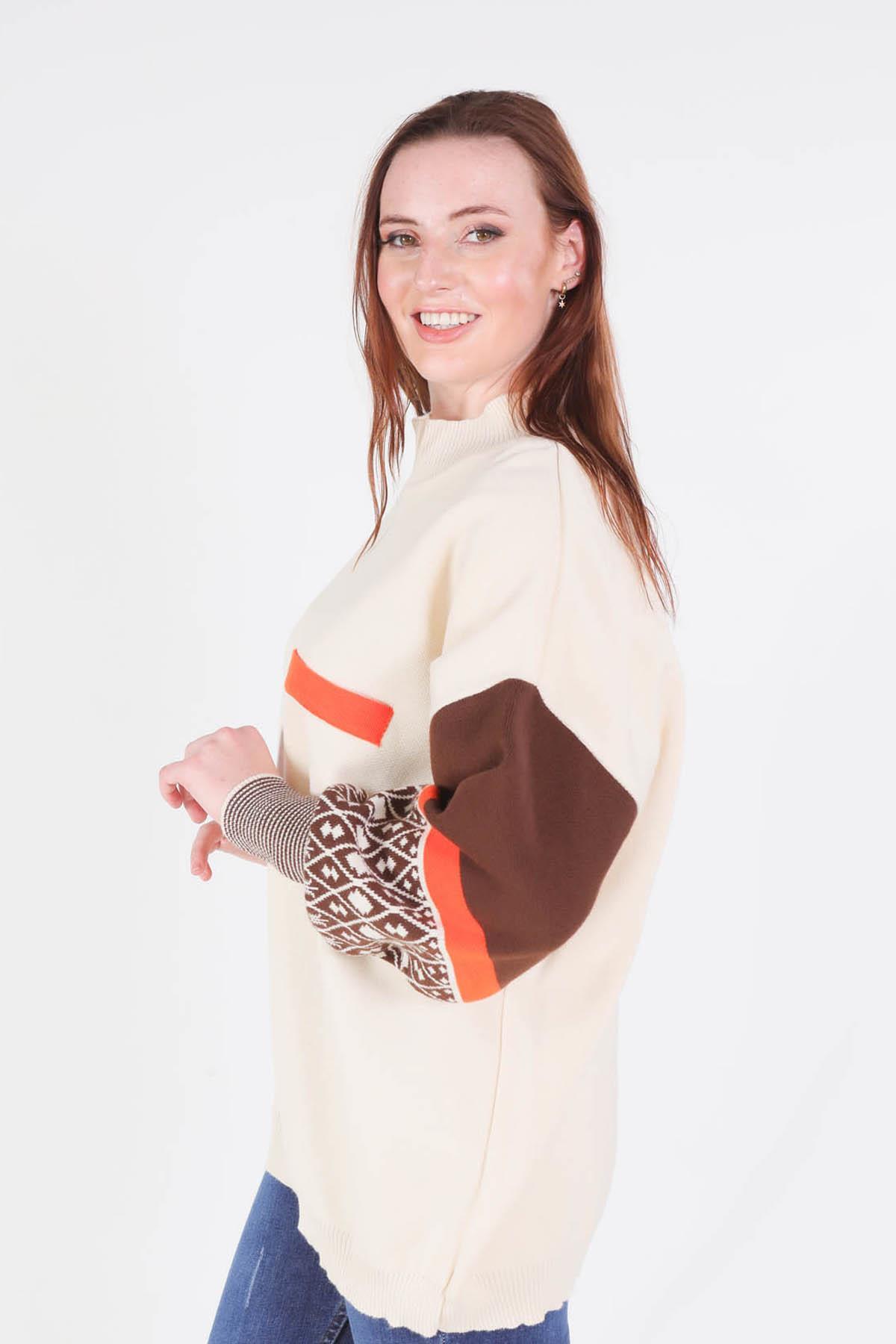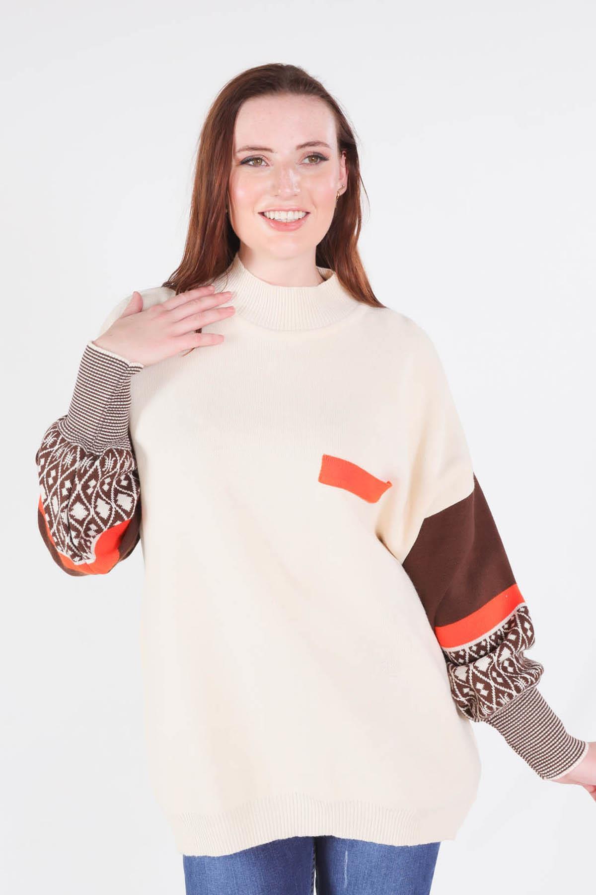 Kahve - Ekru Yıldız Baskılı Oversize Kazak 2474 - RAYS Kahve - Ekru Yıldız Baskılı Oversize Kazak 2474 - RAYS (1)