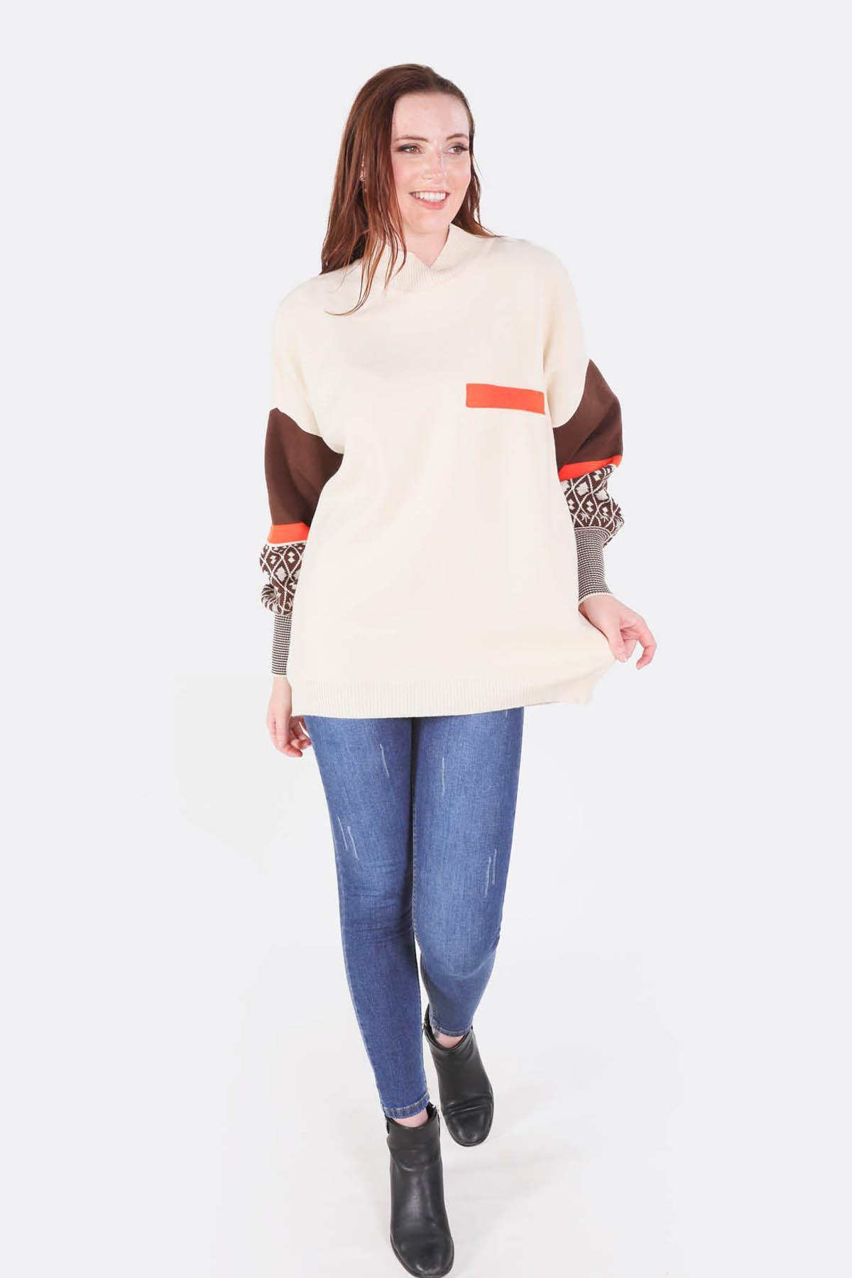 Gri - Ekru Yıldız Baskılı Oversize Kazak 2474 - RAYS Gri - Ekru Yıldız Baskılı Oversize Kazak 2474 - RAYS (1)