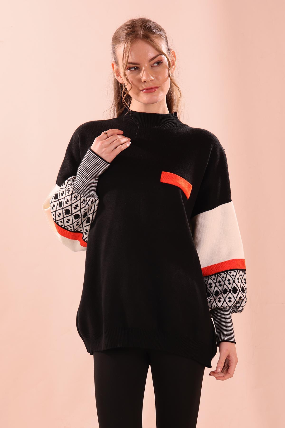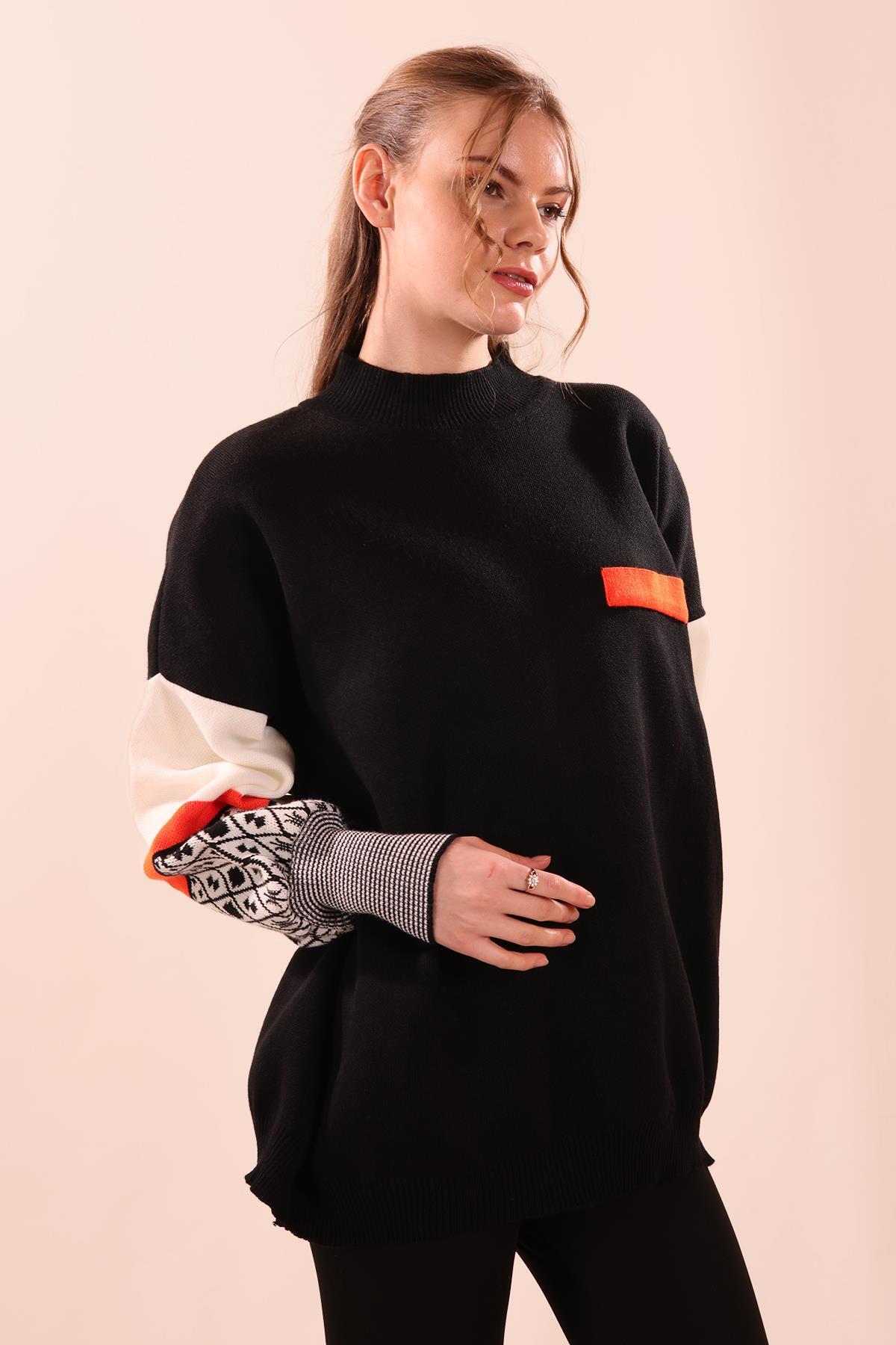 Siyah-Kırmızı Yıldız Baskılı Oversize Kazak 2474 - RAYS Siyah-Kırmızı Yıldız Baskılı Oversize Kazak 2474 - RAYS (1)