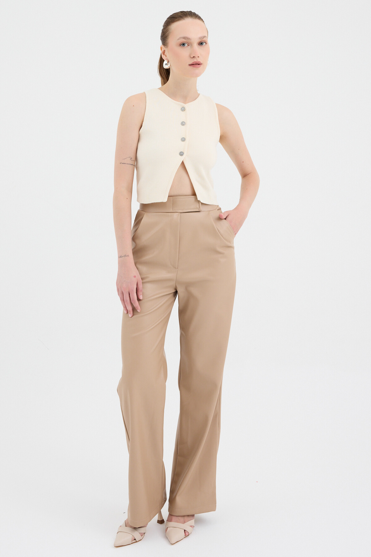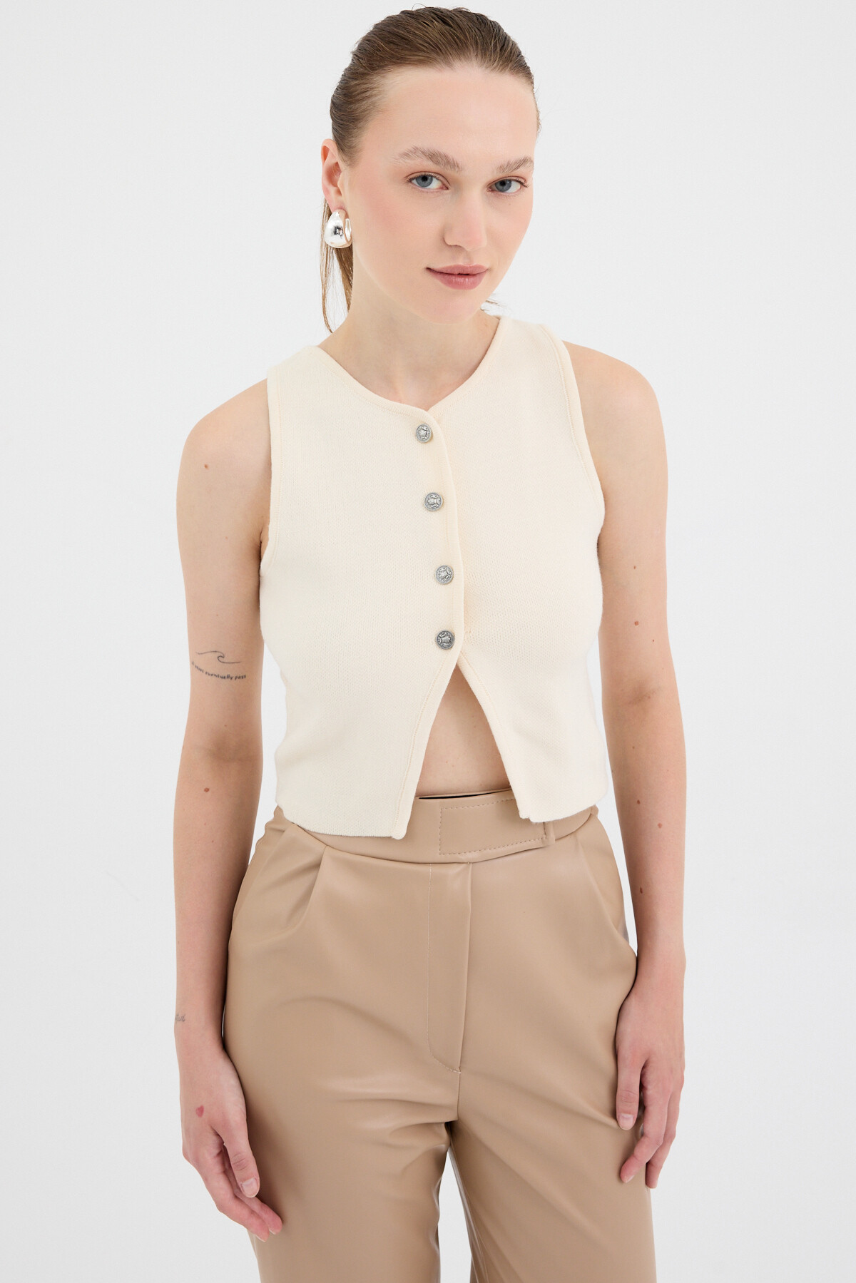 Natural Düğmeli Triko Kadın Yelek 2275