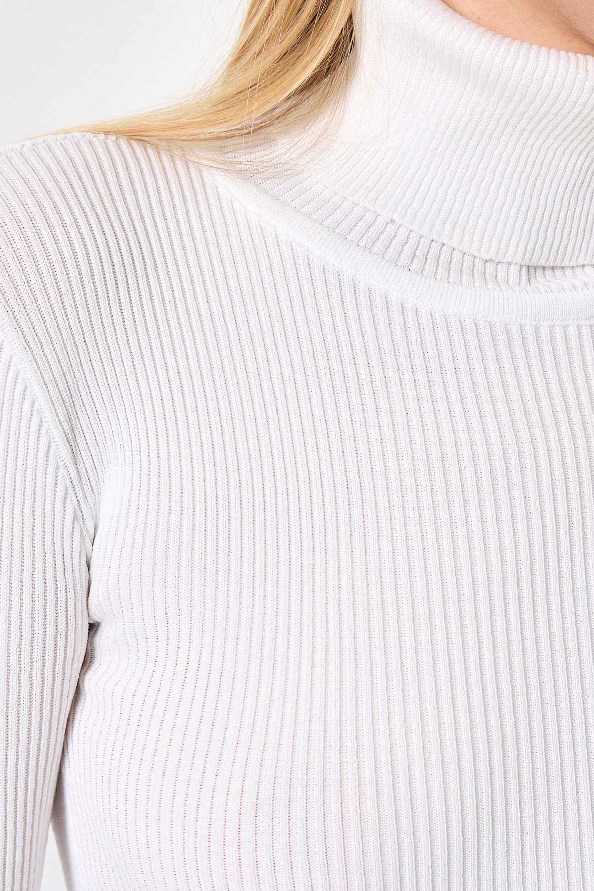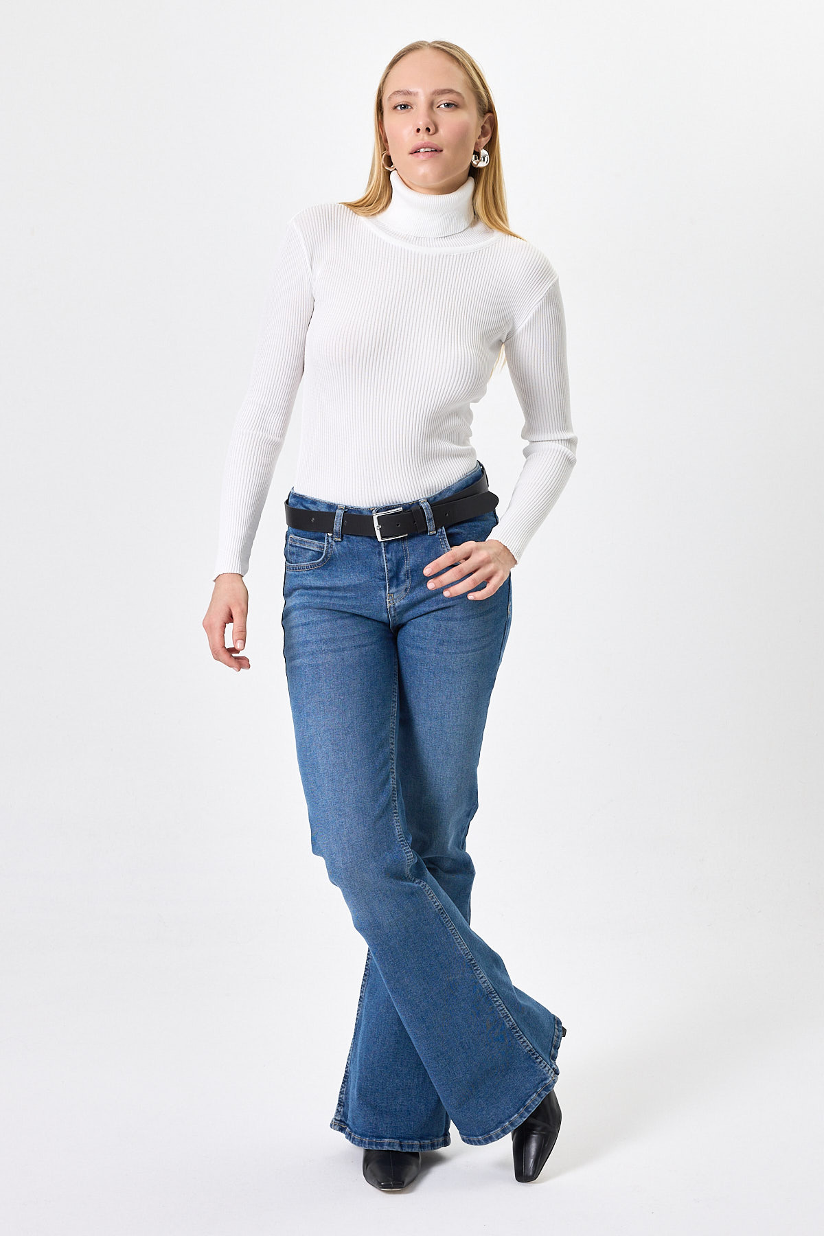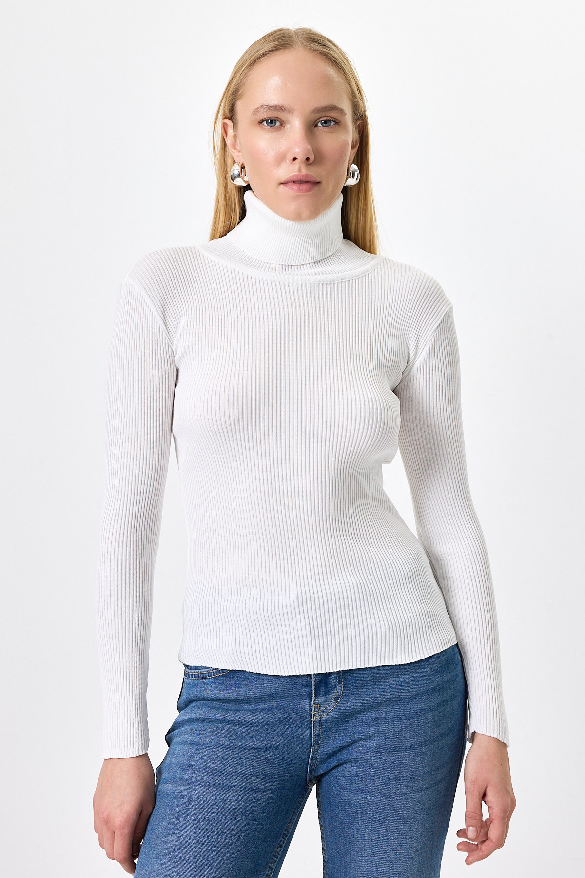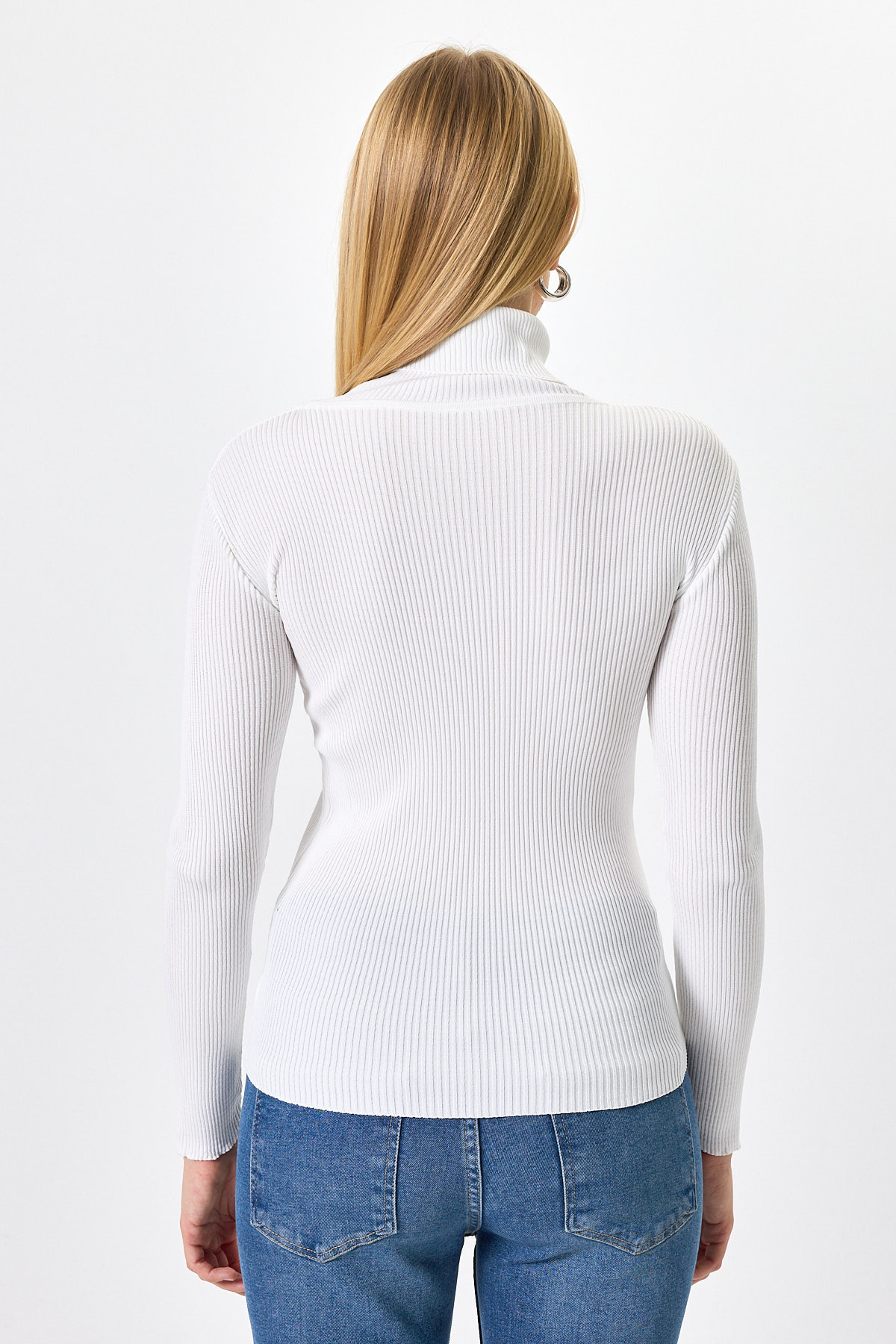 Beyaz Fitilli Balıkçı Yaka Uzun Kollu Bluz 2302