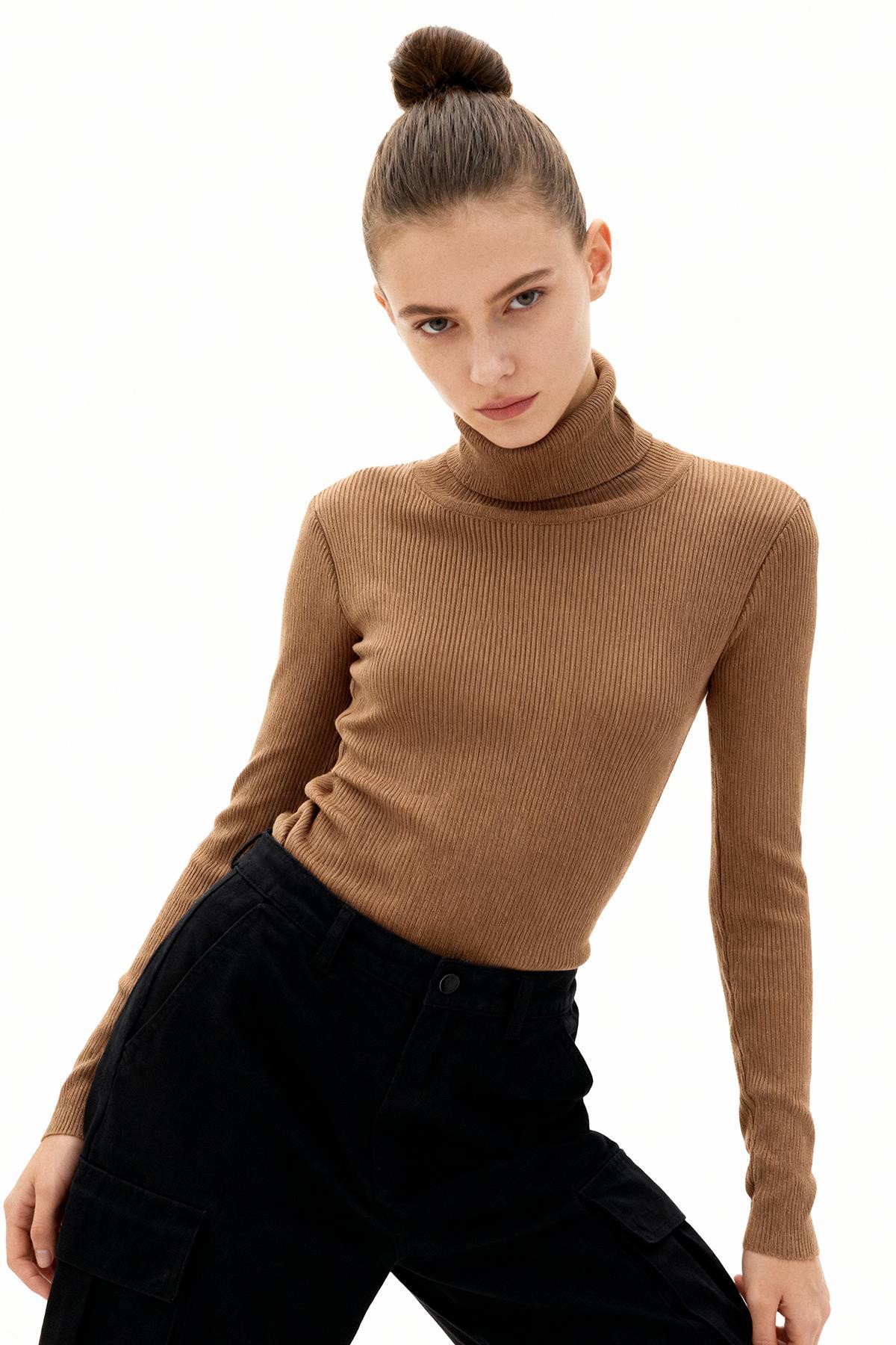 2447 Fermuarlı Uzun Kol Bluz Acı Kahve