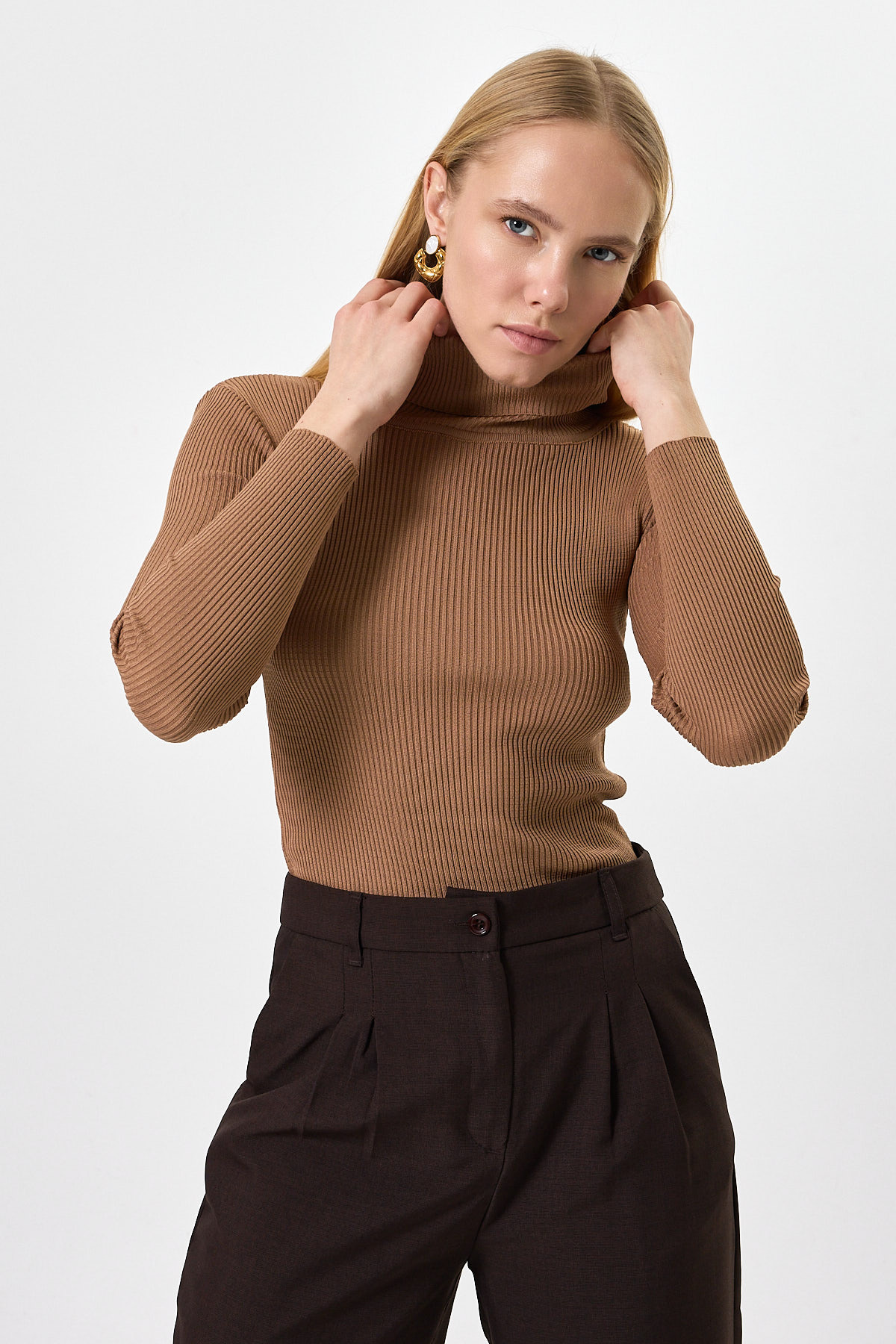 Camel Fitilli Balıkçı Yaka Uzun Kollu Bluz 2302