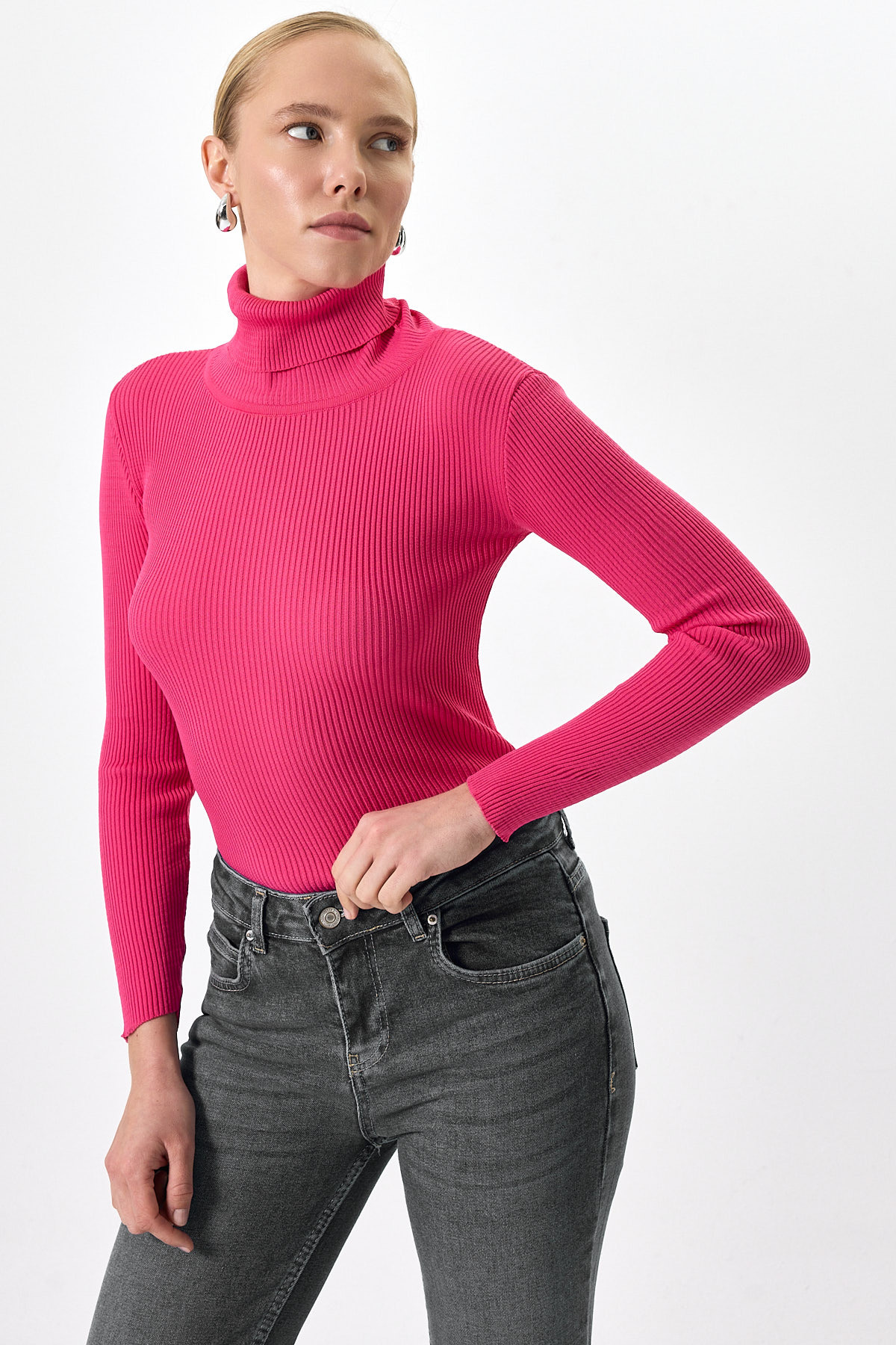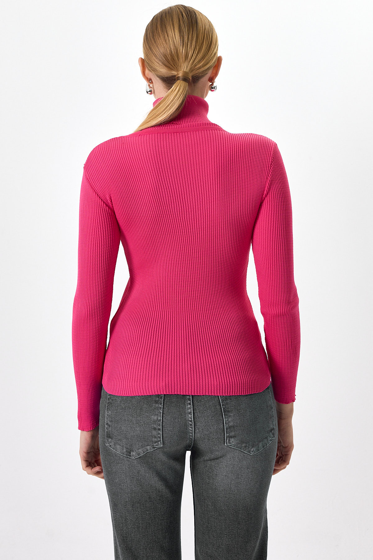 Fuşya Fitilli Balıkçı Yaka Uzun Kollu Bluz 2302