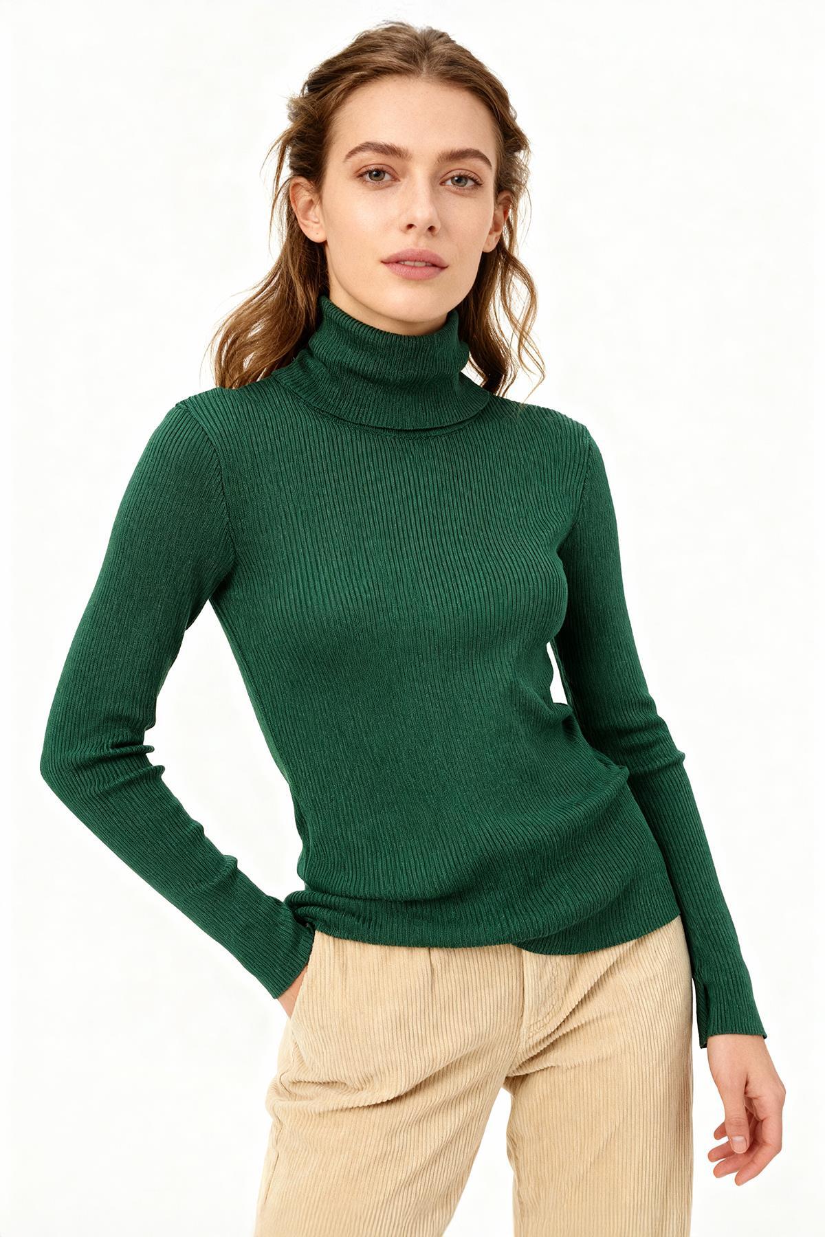 2302 Balıkçı Yaka Bluz Koyu Yeşil
