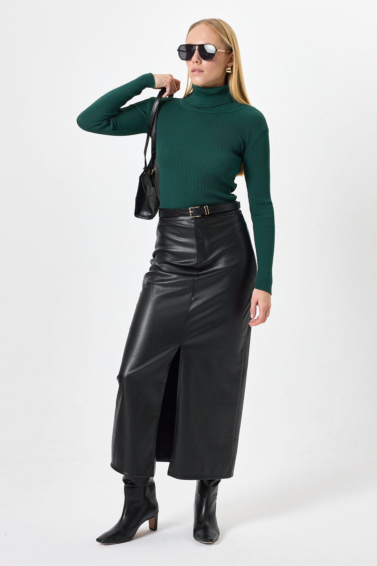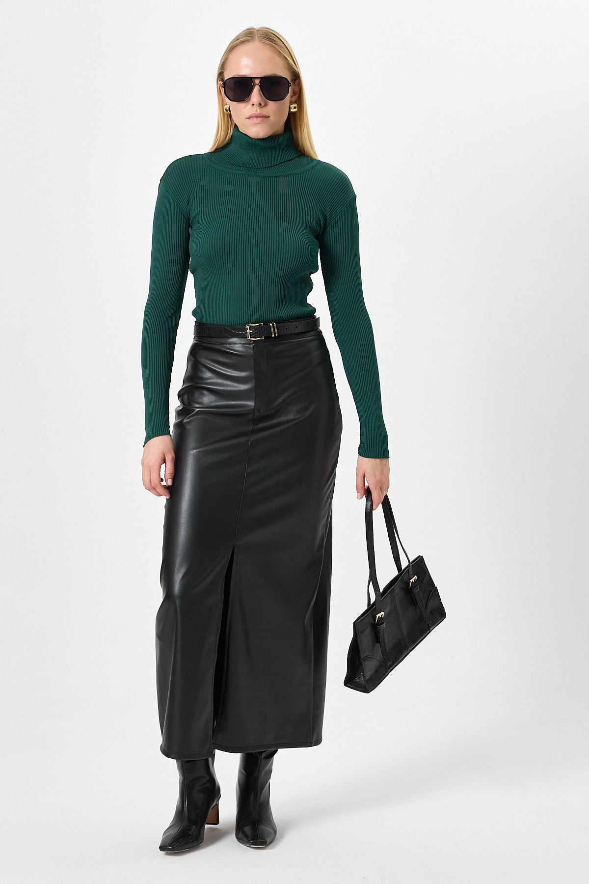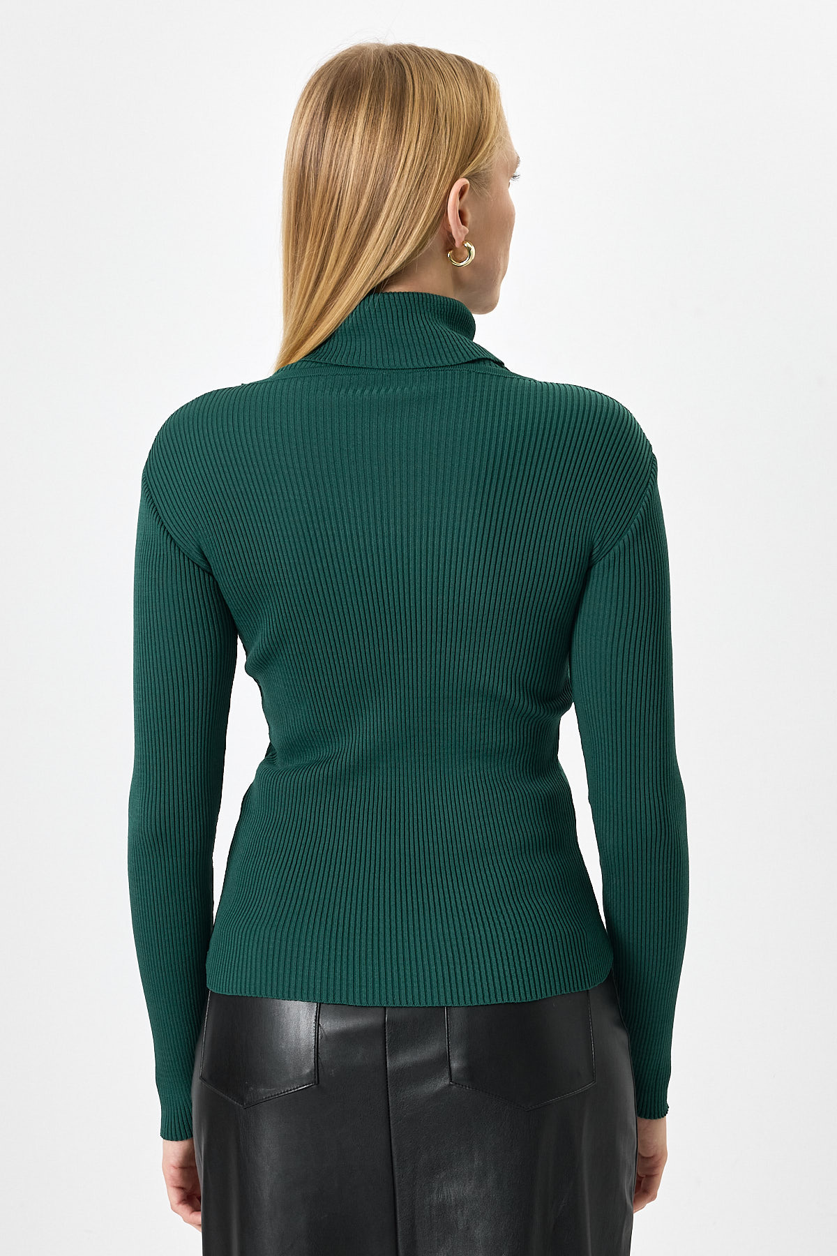 Koyu Yeşil Fitilli Balıkçı Yaka Uzun Kollu Bluz 2302