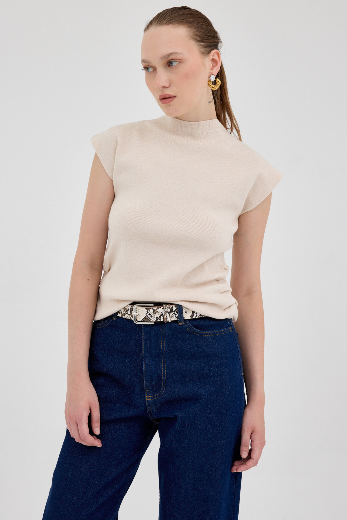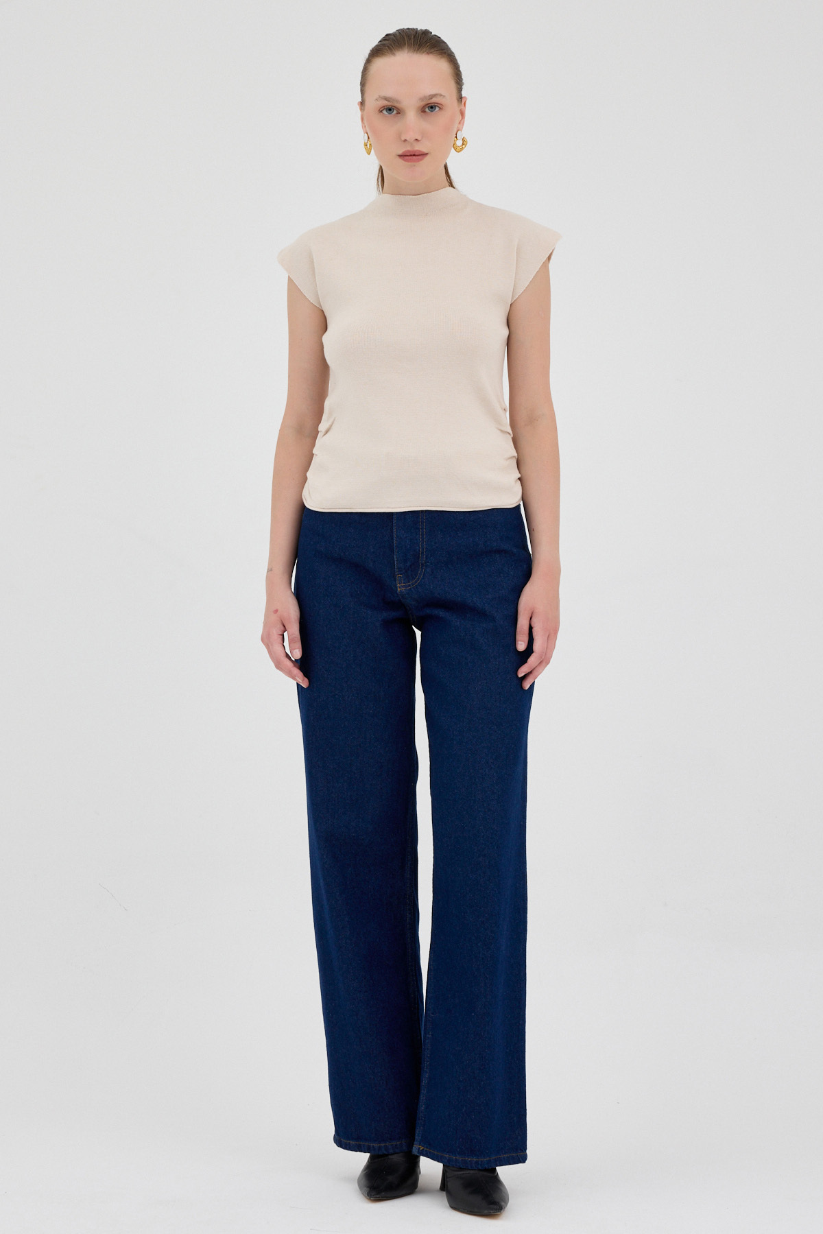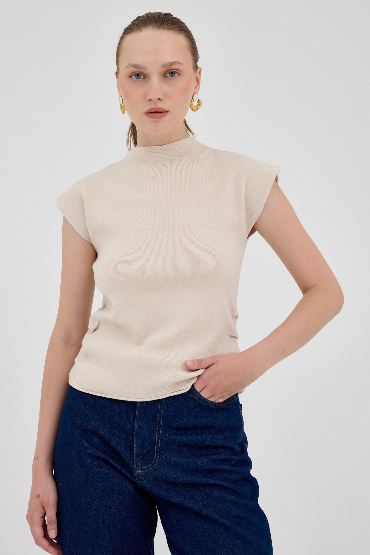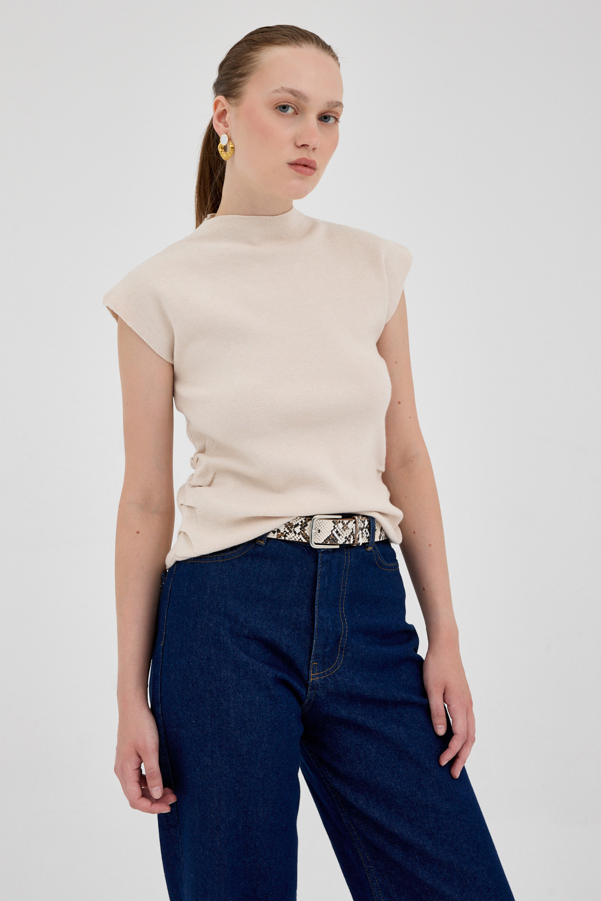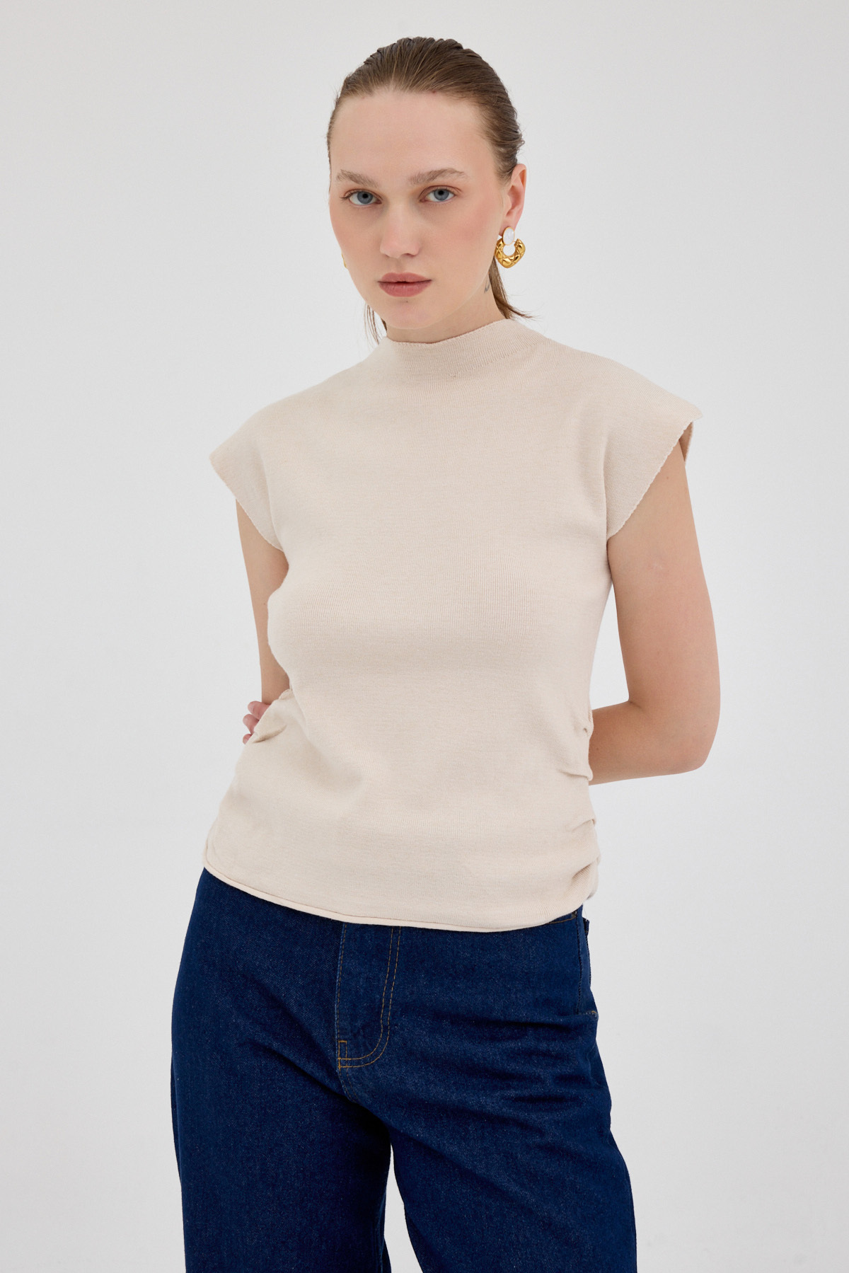 Taş Yanları Büzgülü Triko Bluz 2306