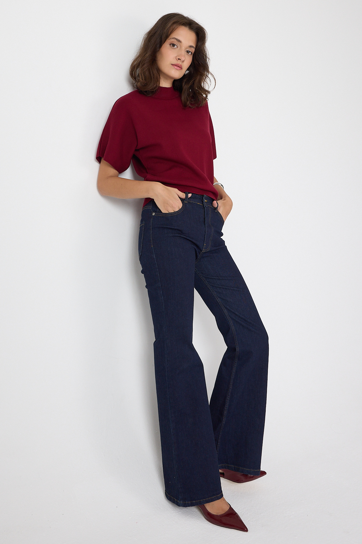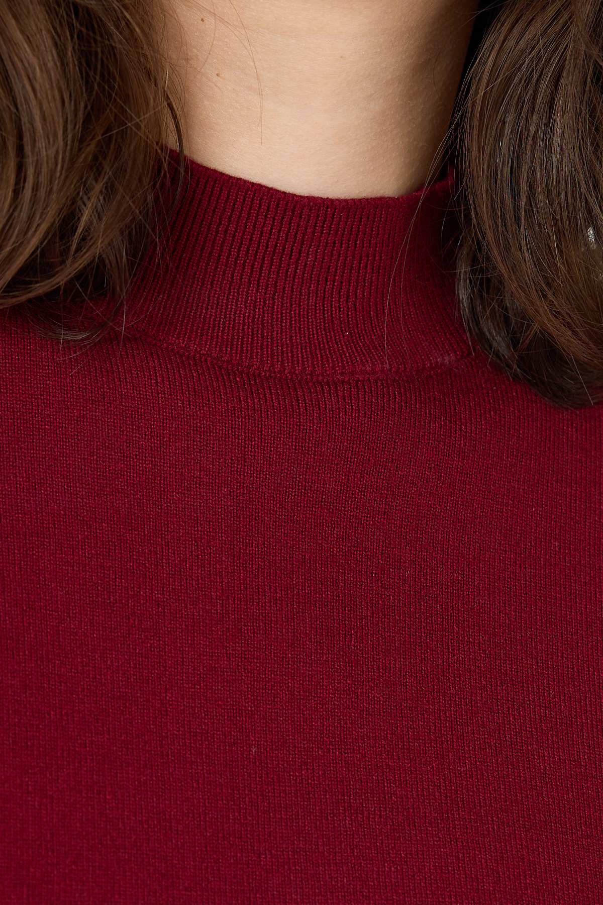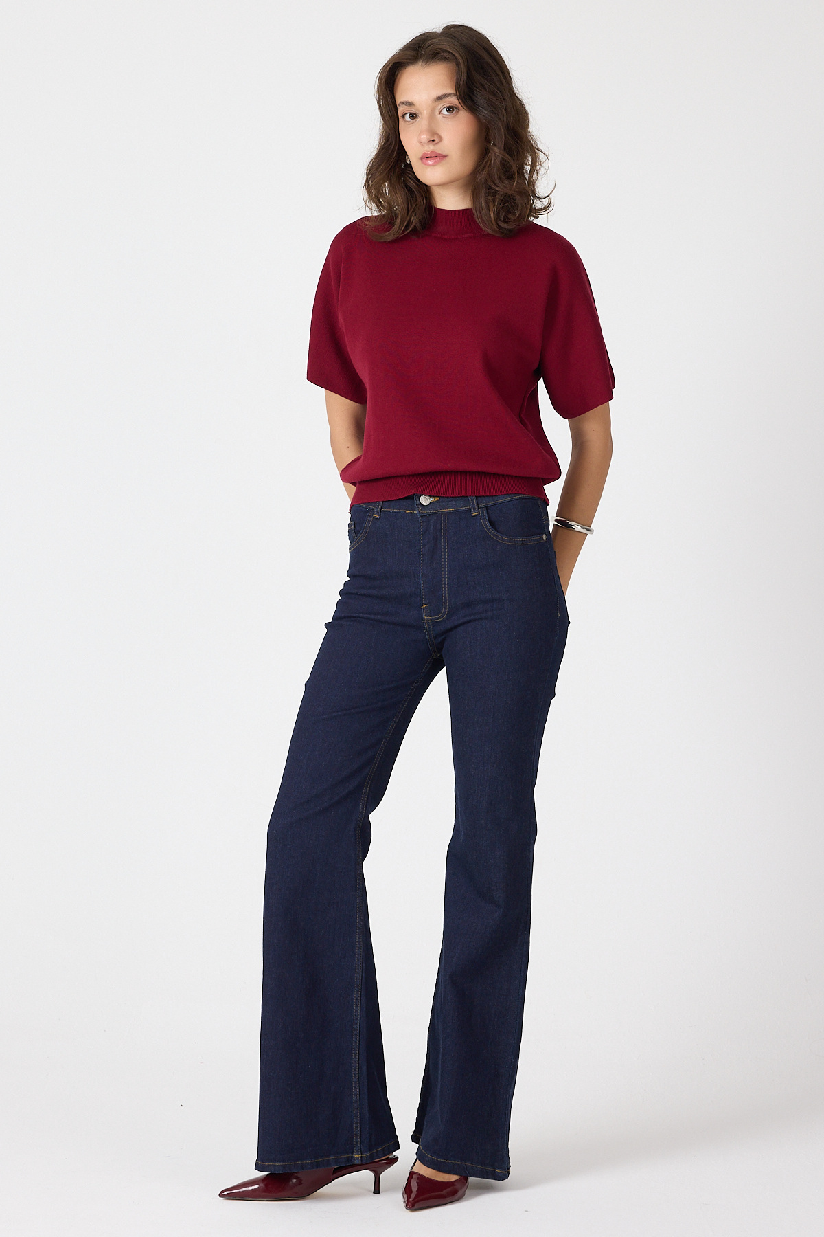 Bordo Yarım Balıkçı Yaka Kısa Kollu Kadın Triko Bluz 2308