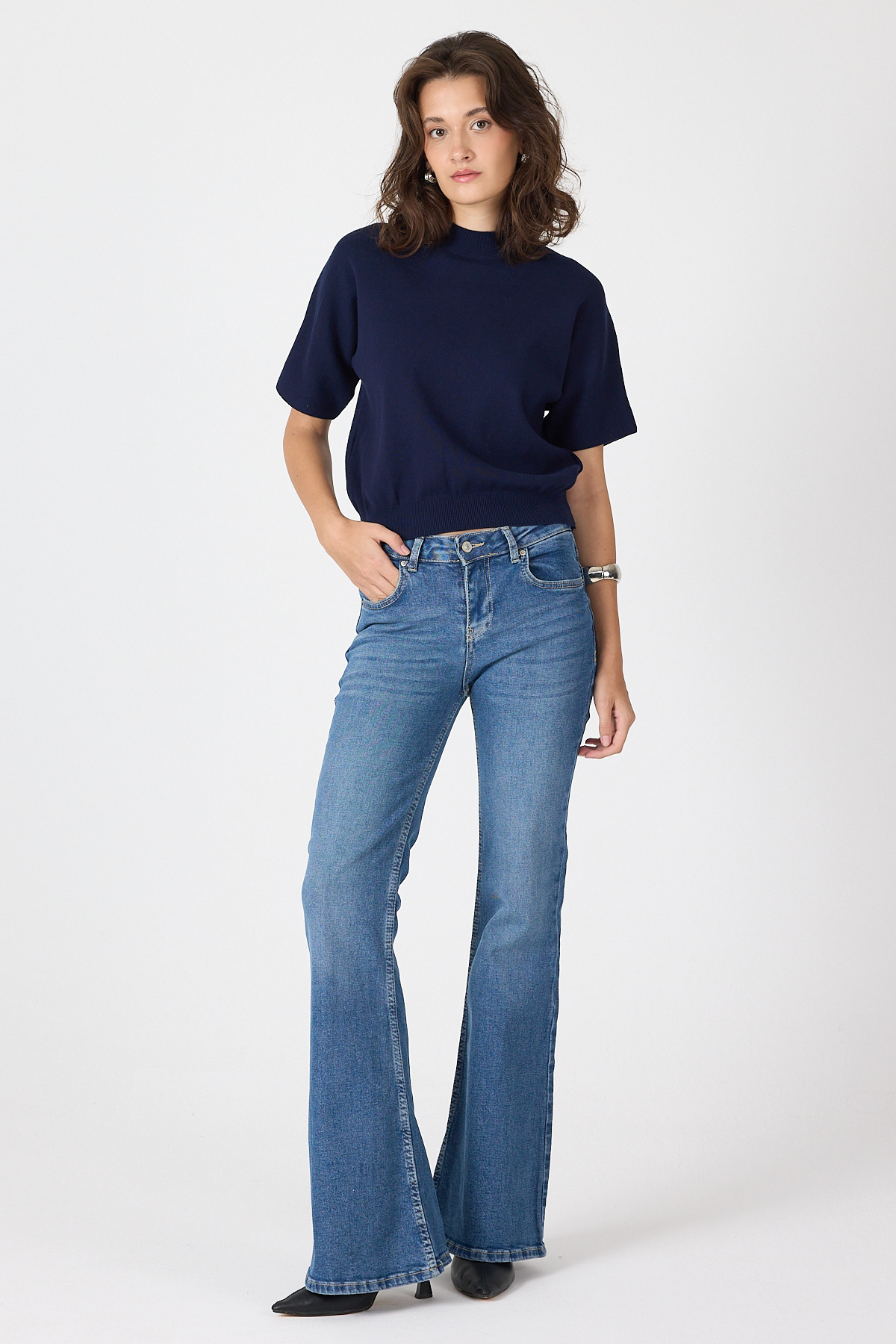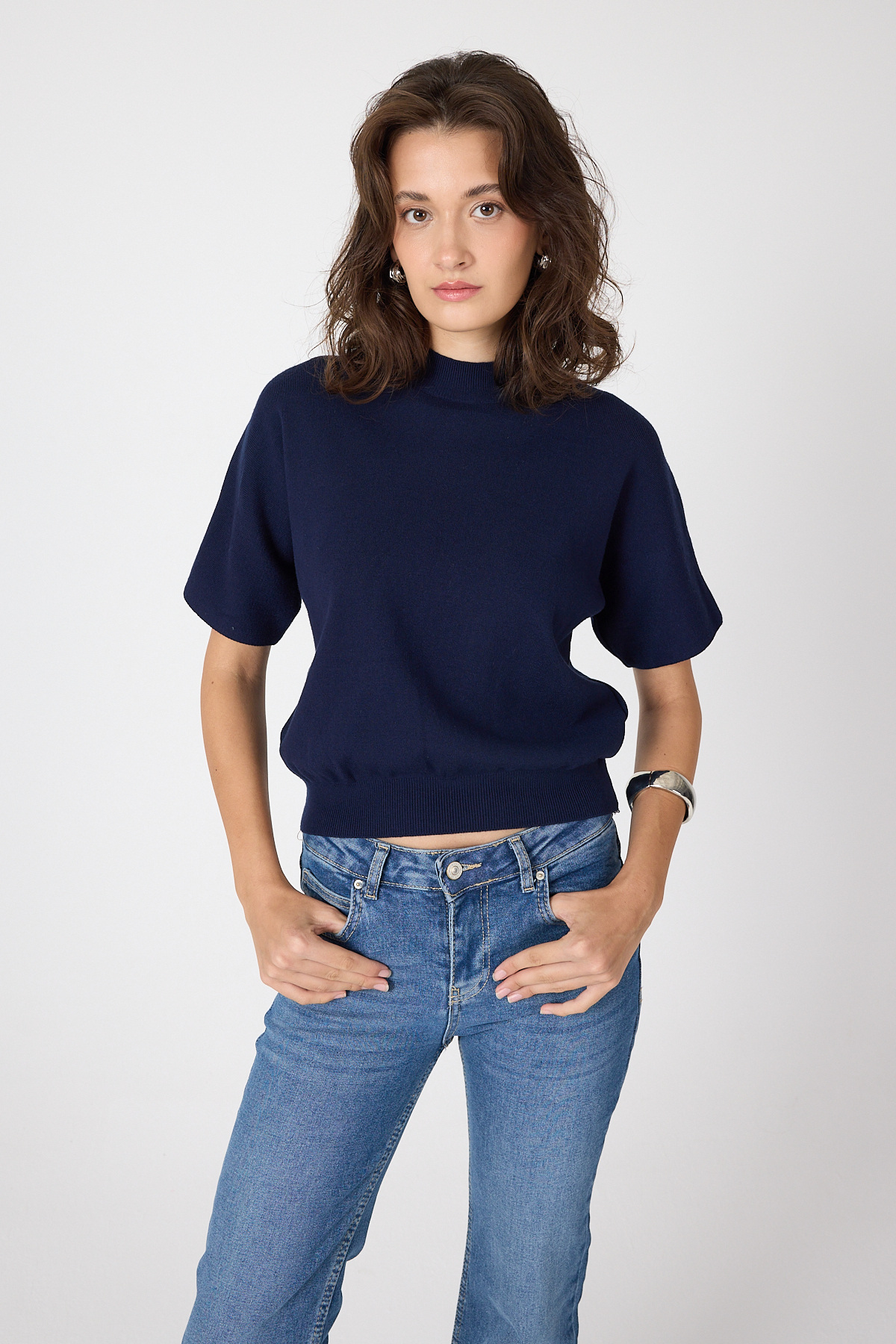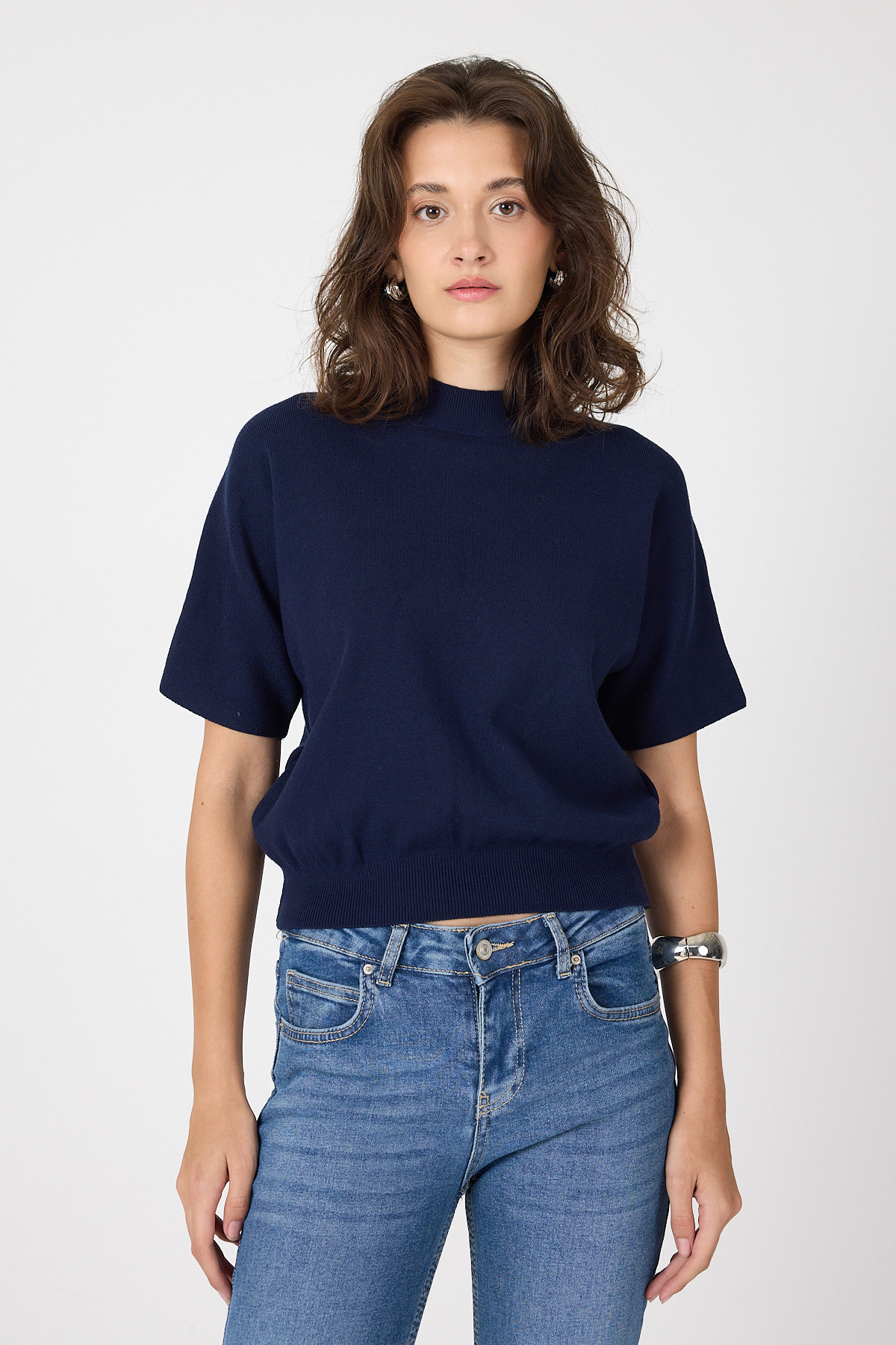 Laci Yarım Balıkçı Yaka Kısa Kollu Kadın Triko Bluz 2308