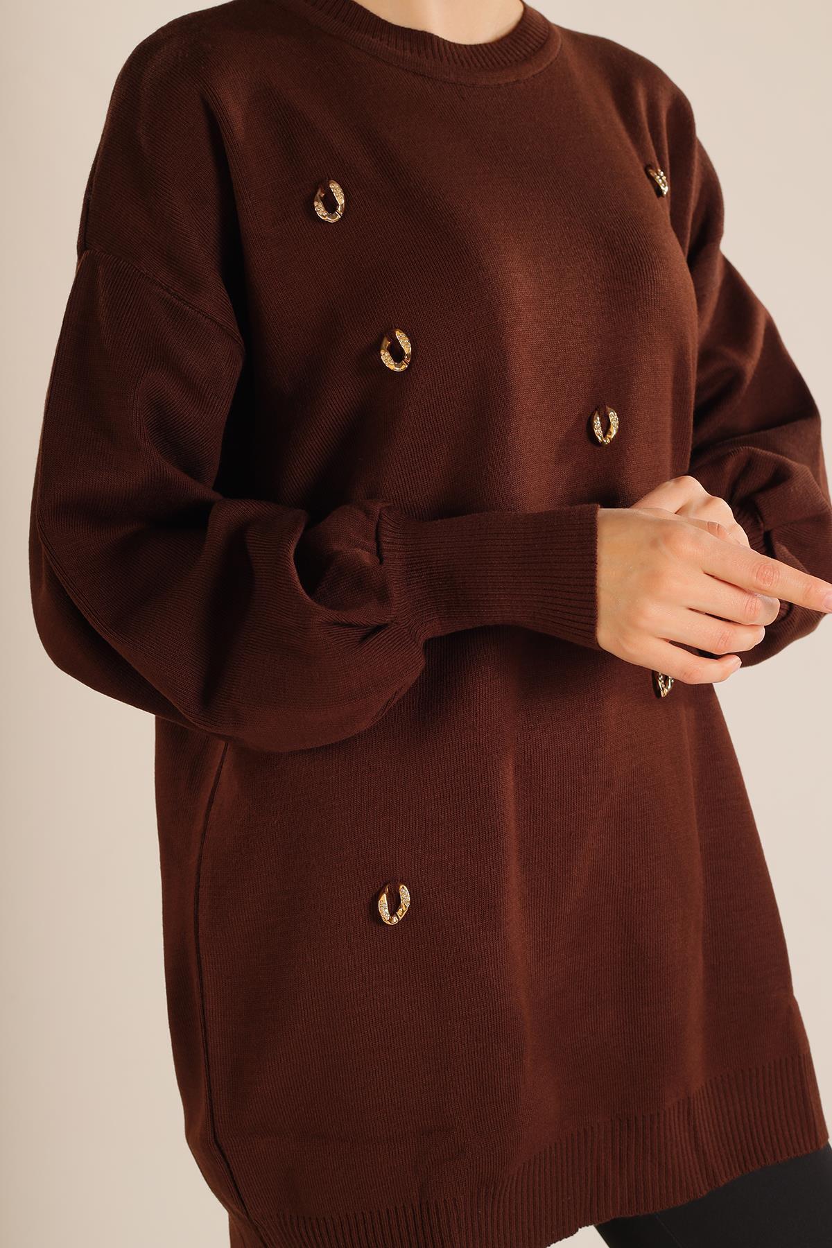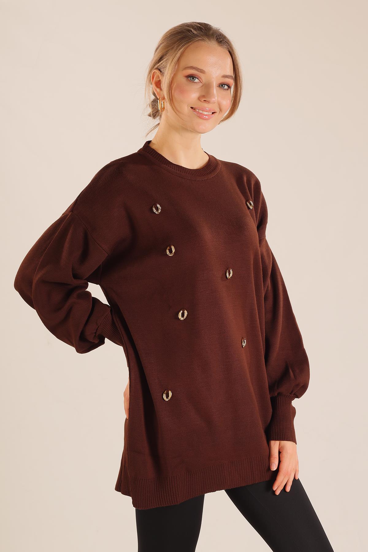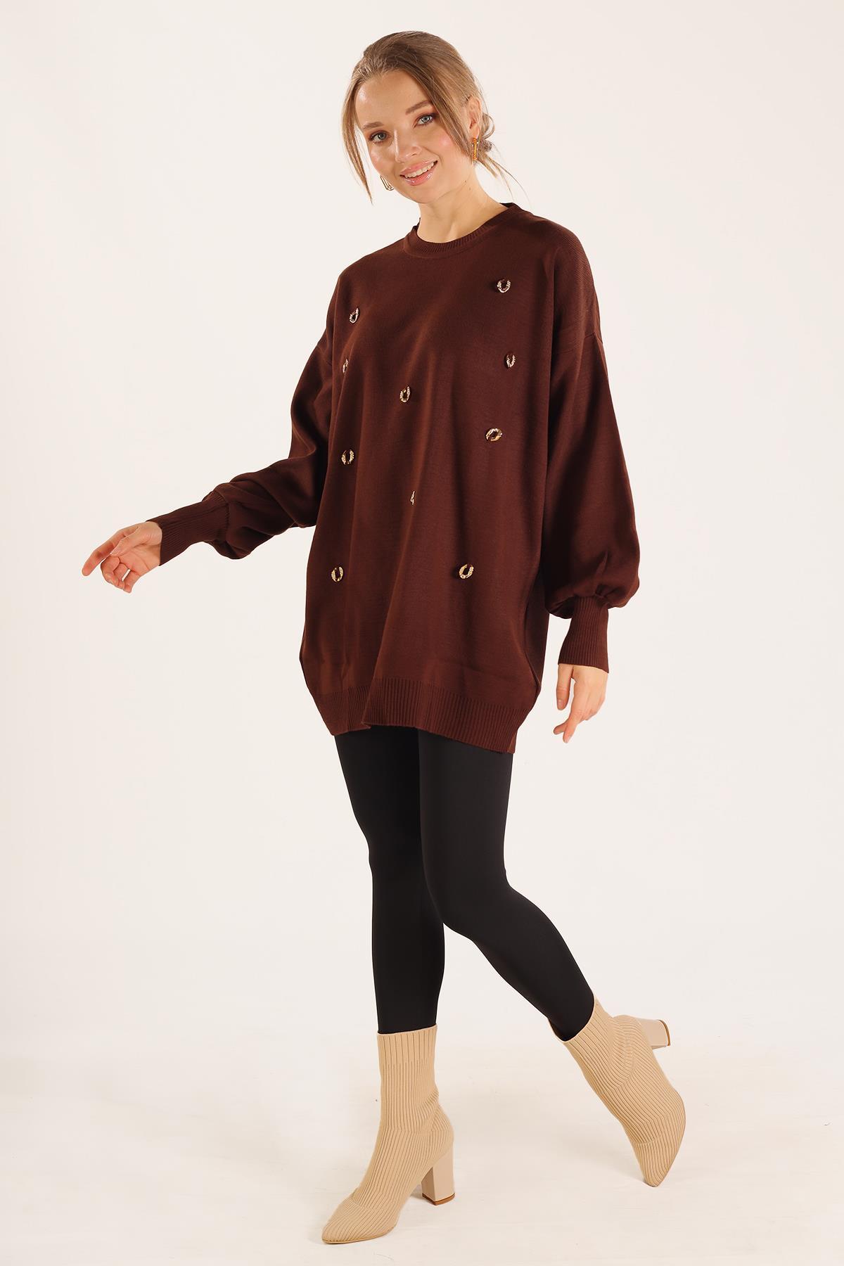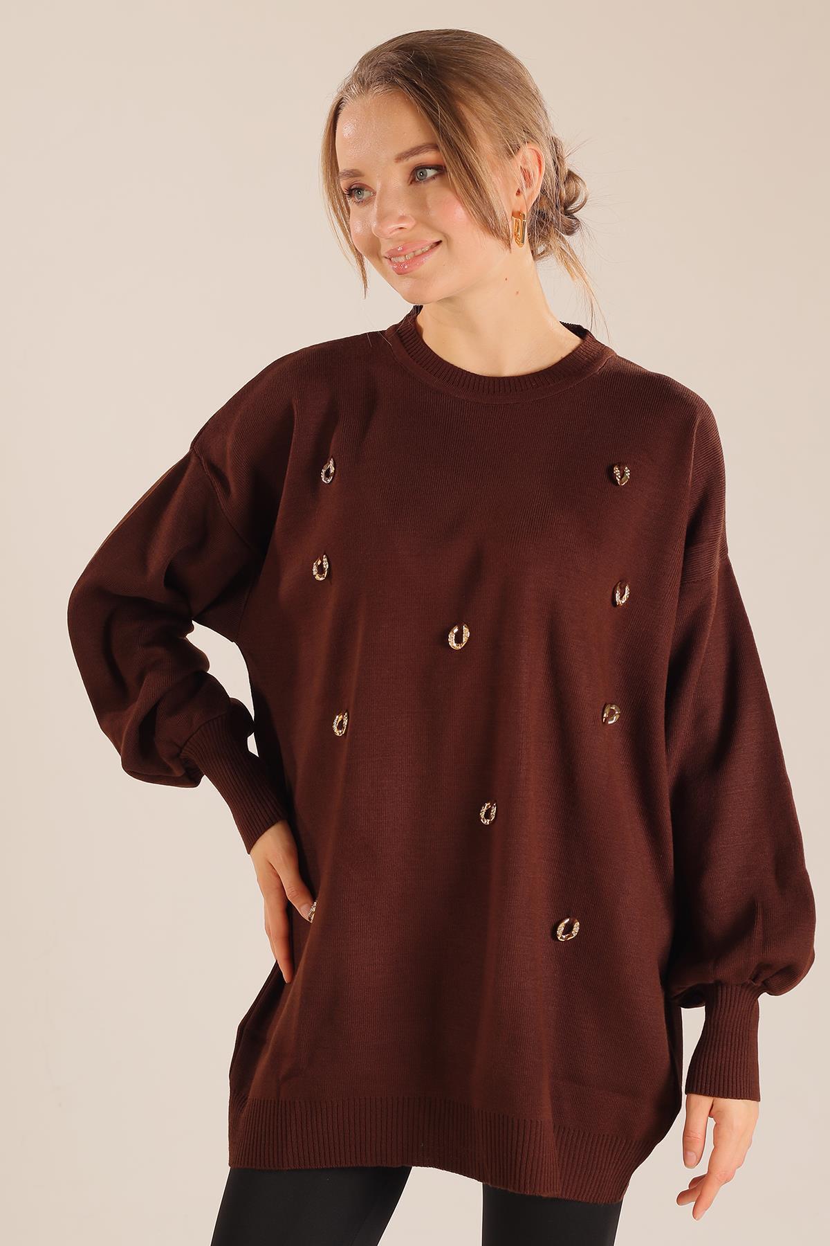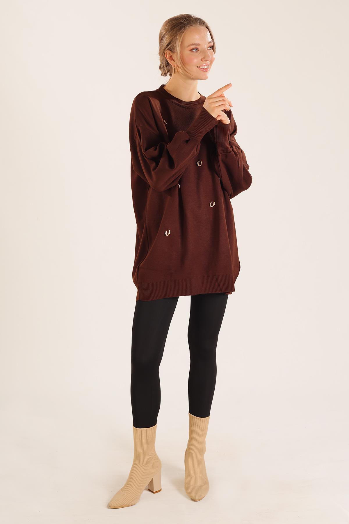 Kahve - Ekru Yıldız Baskılı Oversize Kazak 2474 - RAYS Kahve - Ekru Yıldız Baskılı Oversize Kazak 2474 - RAYS (1)