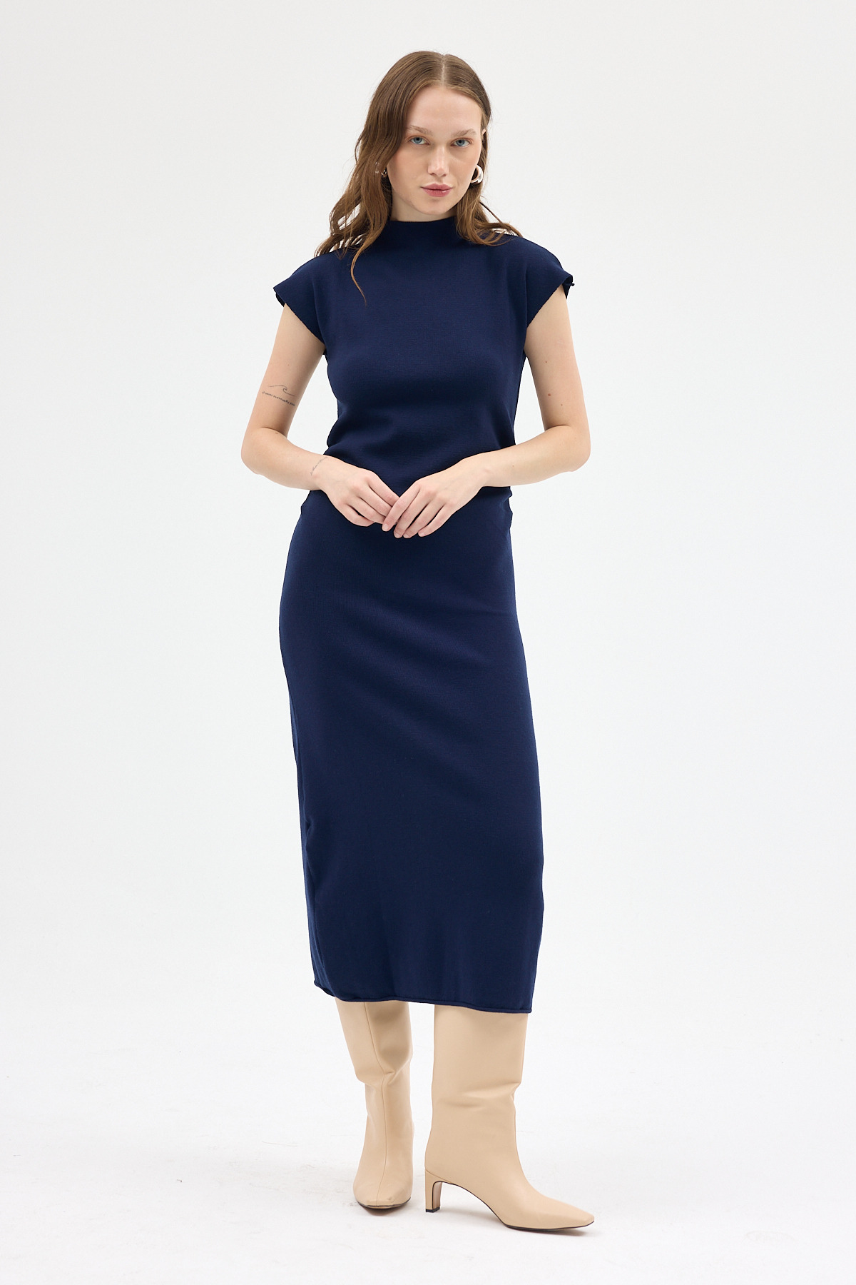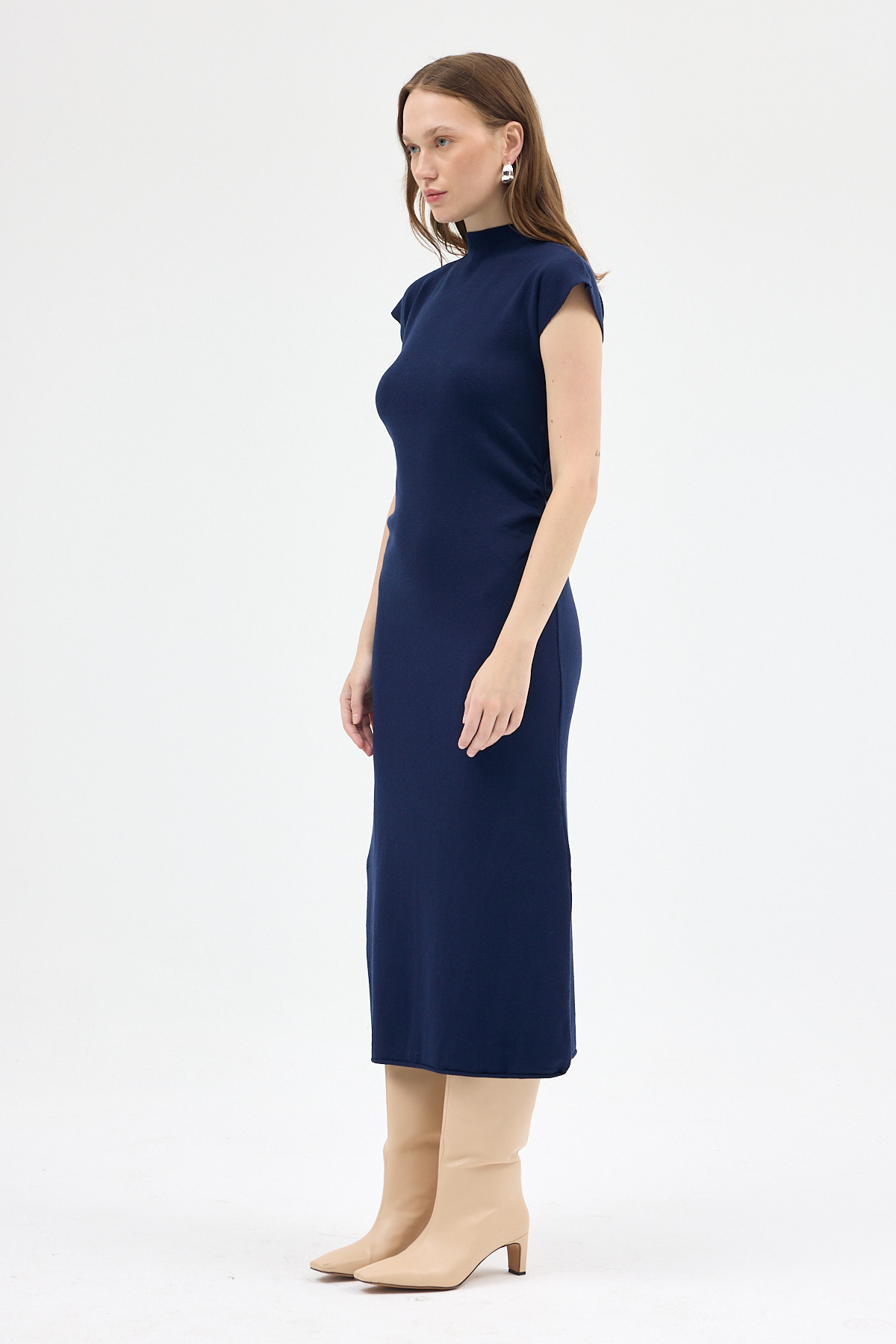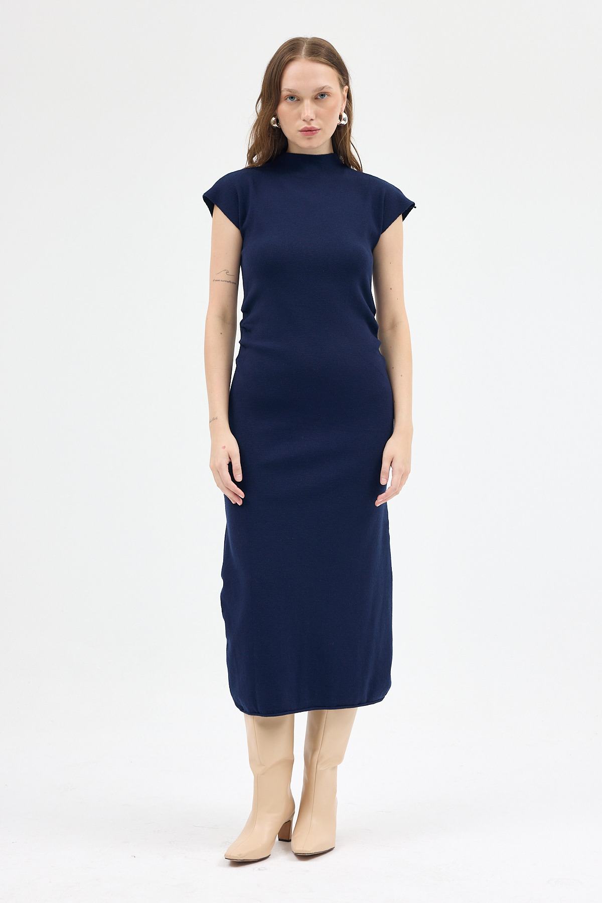 24171 U Yaka Kısa Kol Triko Elbise Laci - RAYS