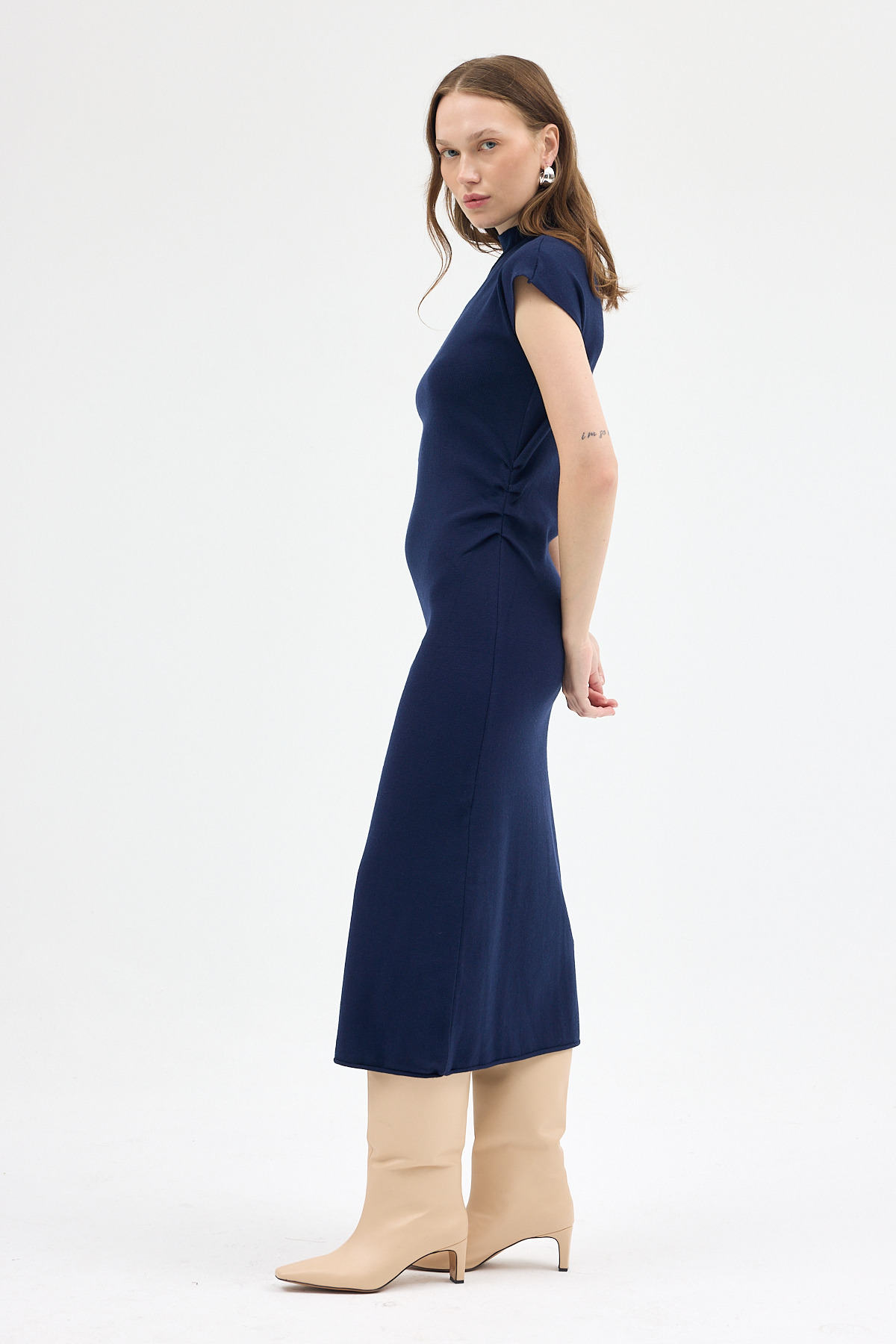 Laci Büzgü Detaylı Triko Midi Elbise 2317