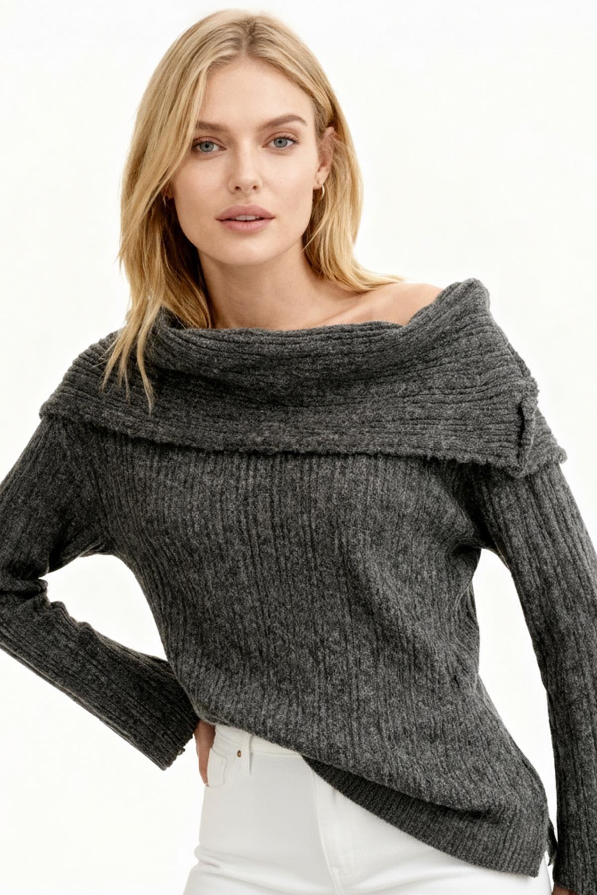 2324 Kayık Yaka Uzun Kol Kazak Antrasit